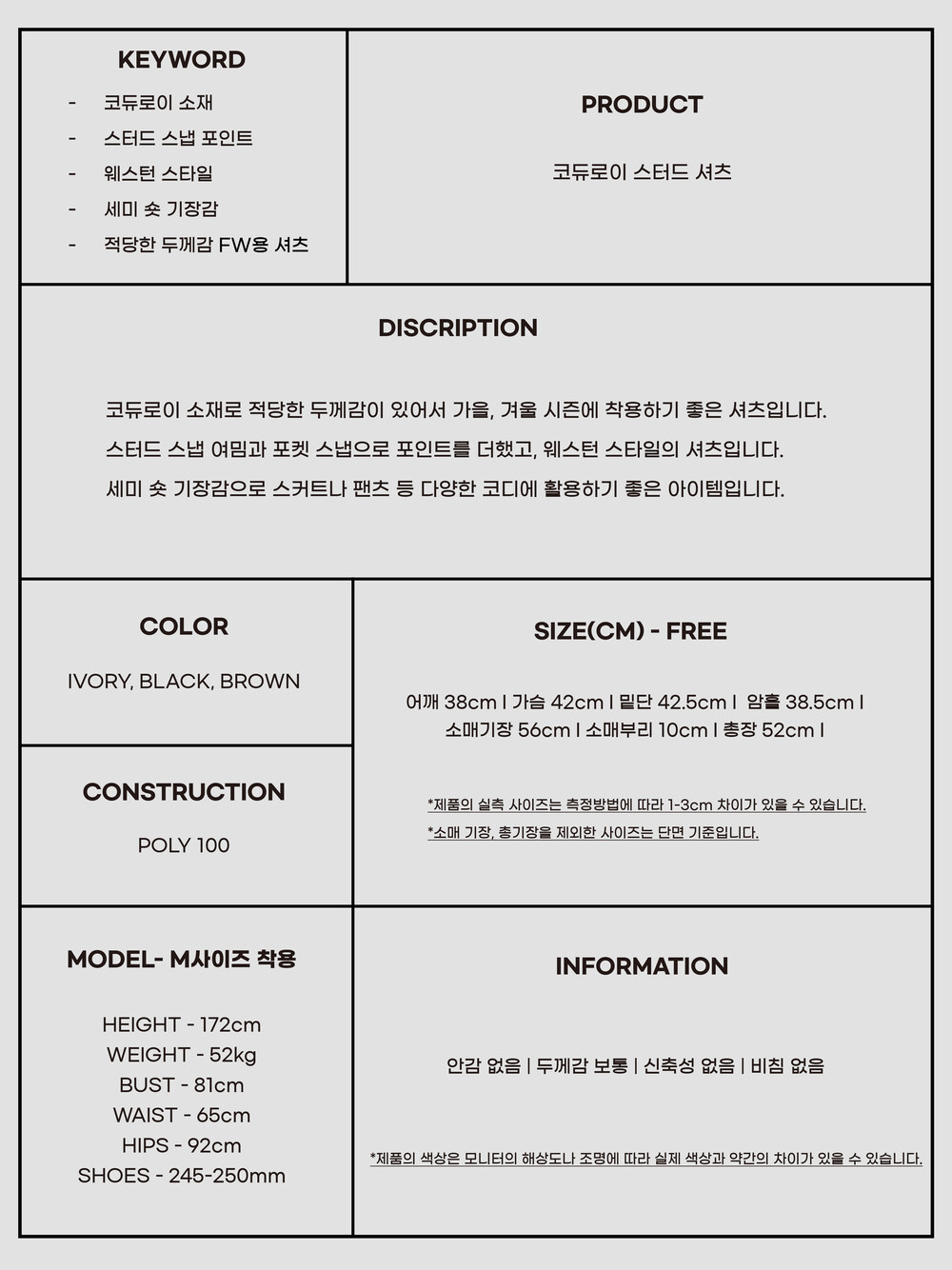 CORDUROY STUD SH(3 COLOR) 코듀로이 스터드 셔츠