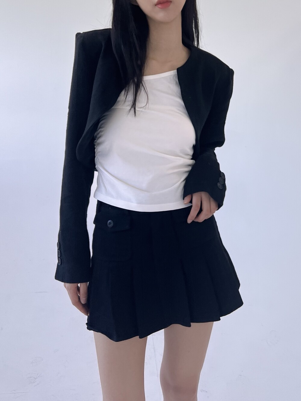 가벼운 린넨소재의 크롭볼레로 자켓입니다.