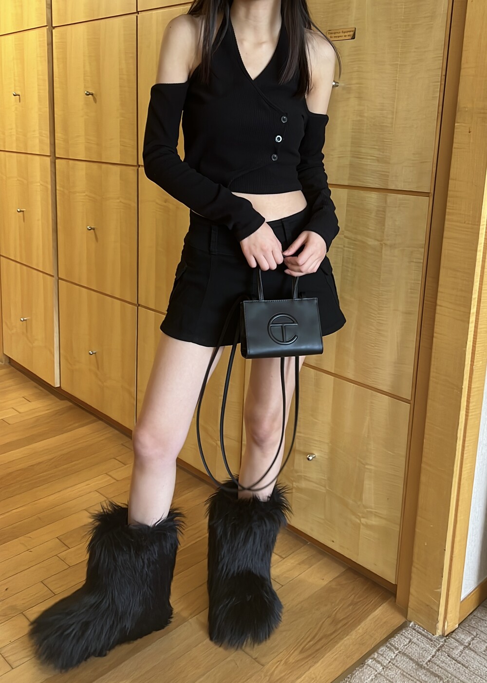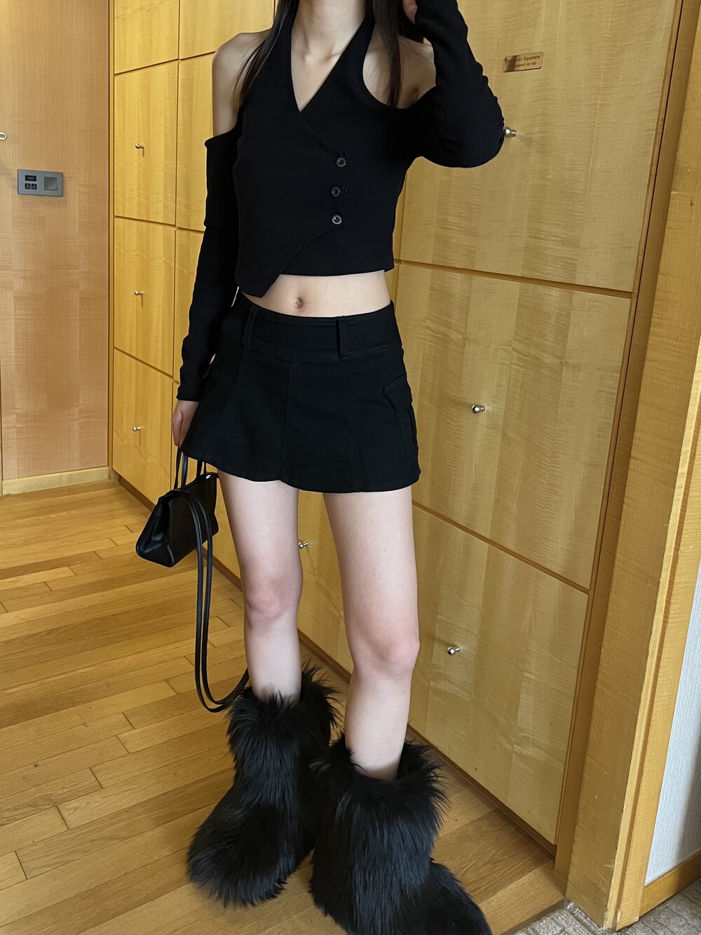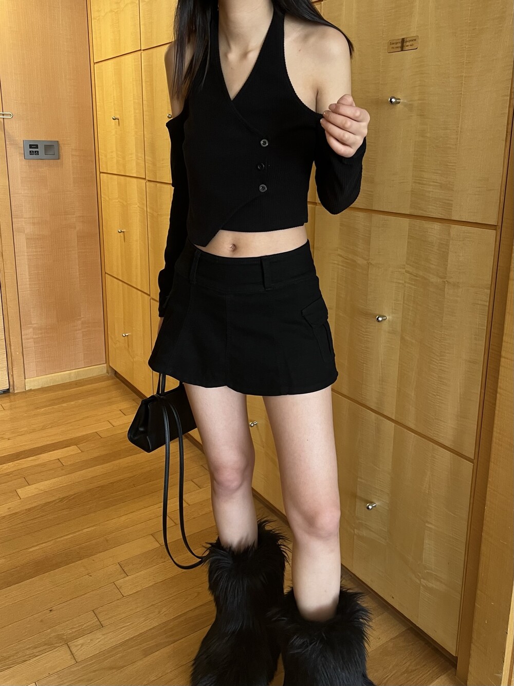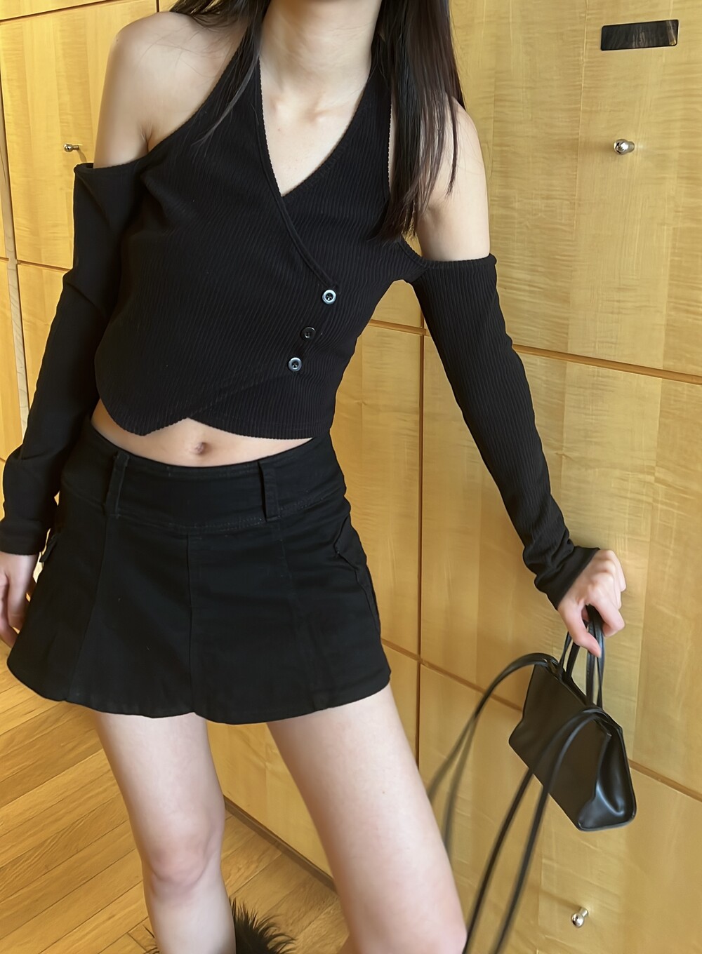 홀터넥과 오프 숄더 디테일로 페미닌하면서 유니크함을 더해