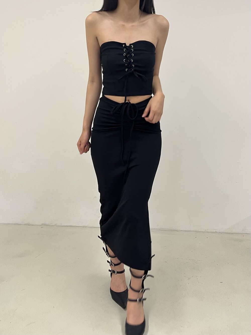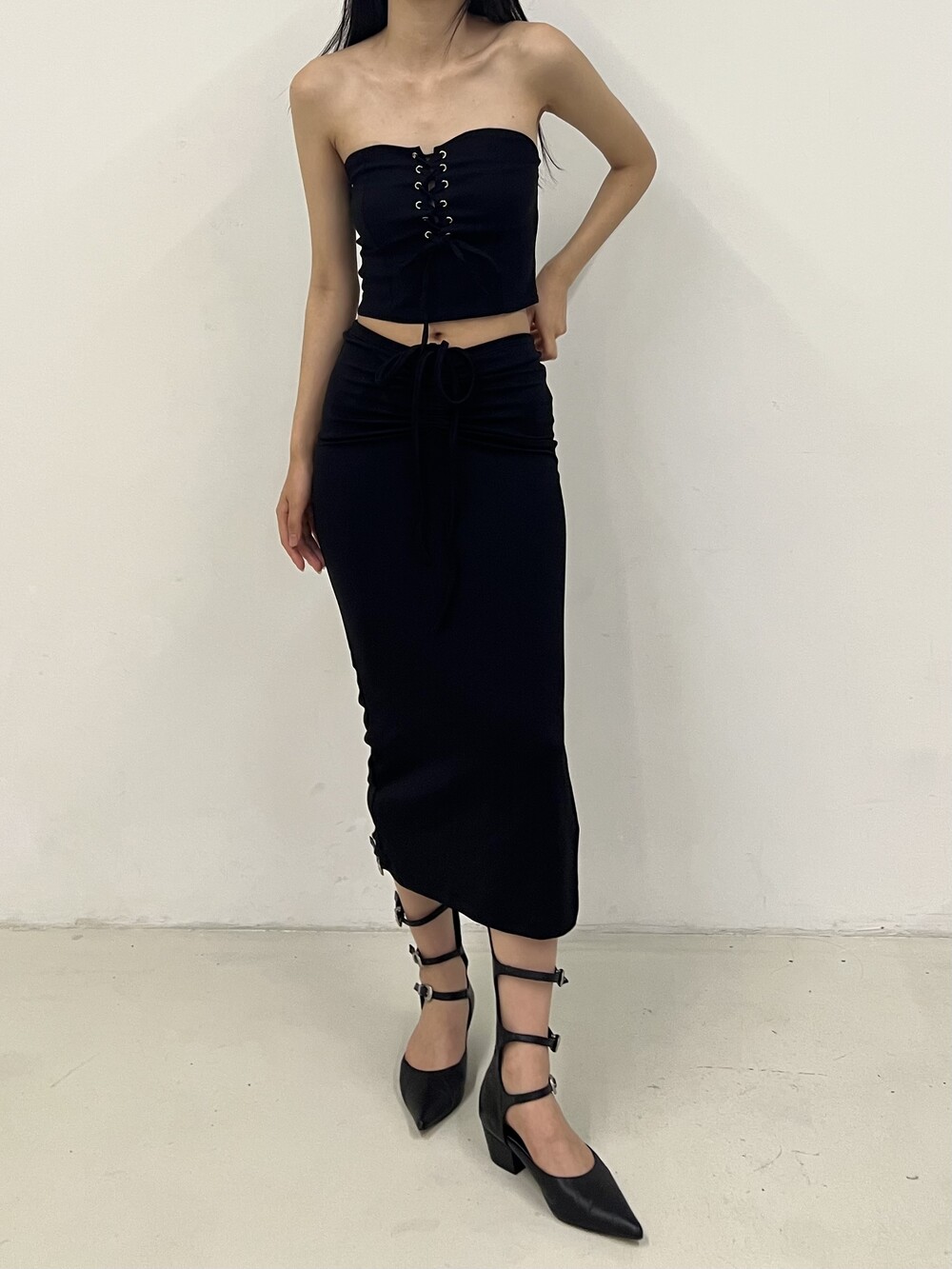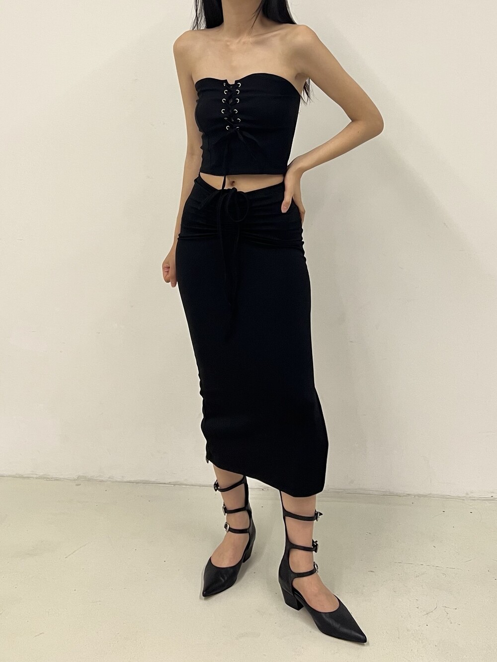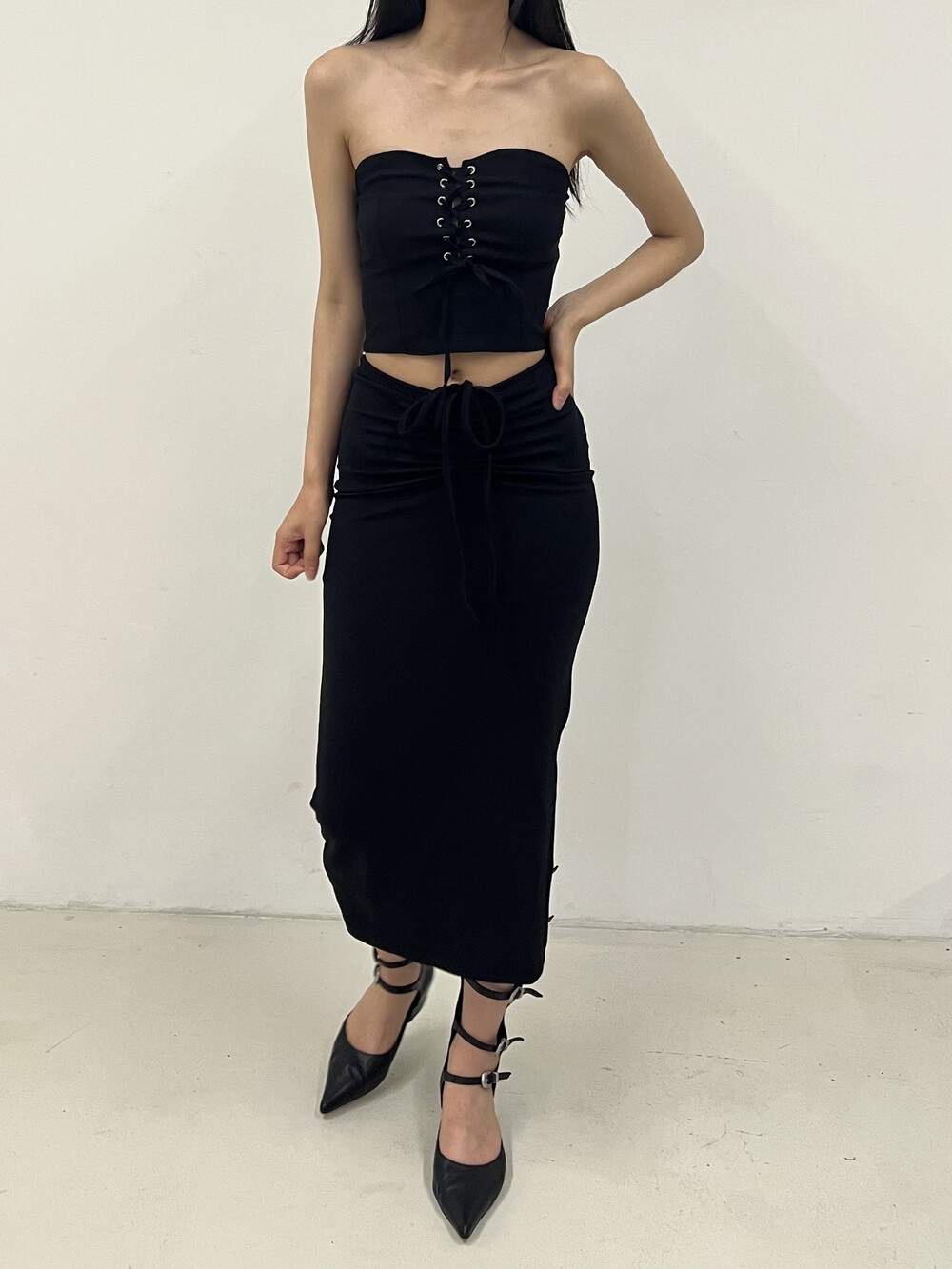 Strap shirring long sk