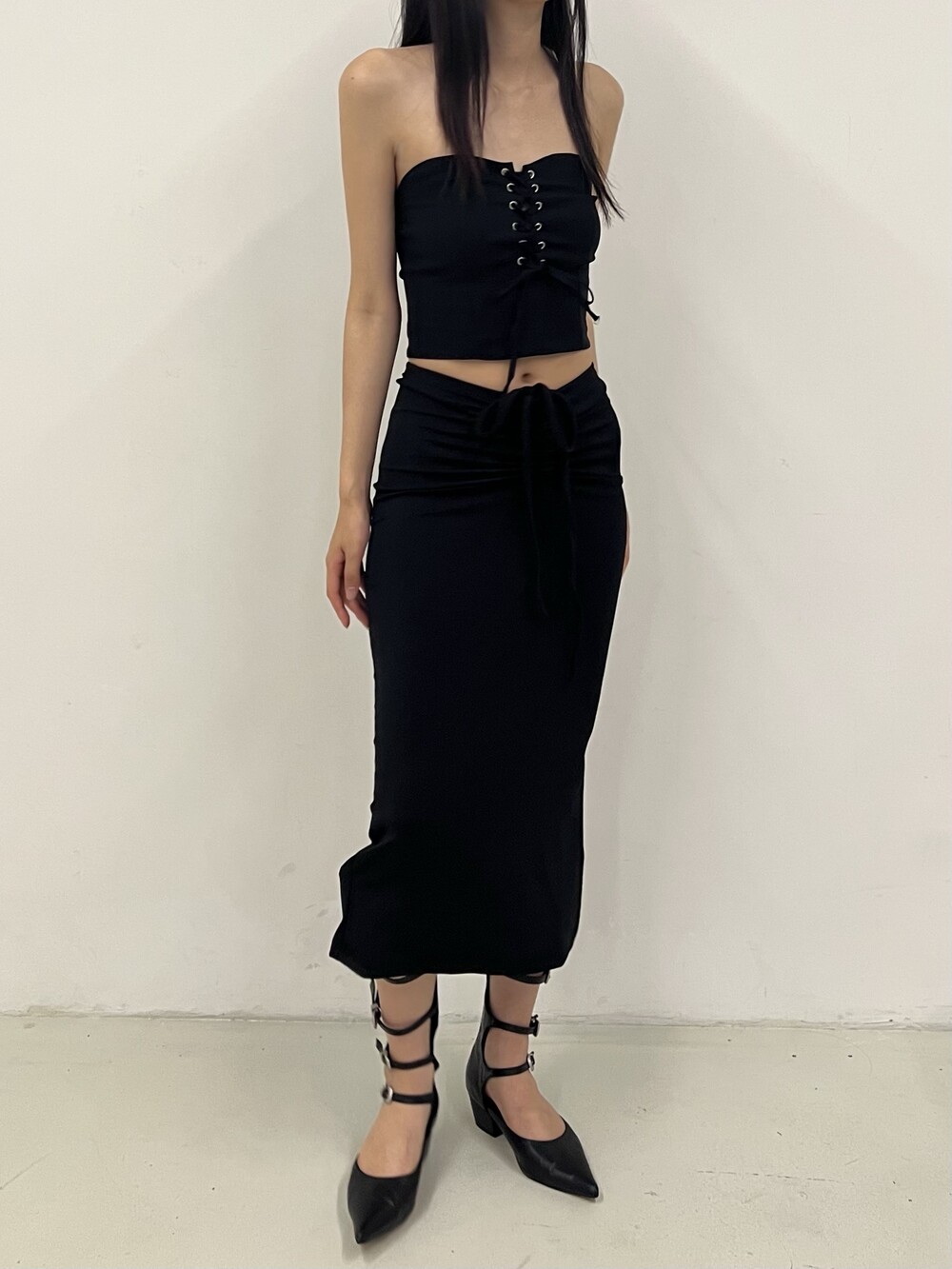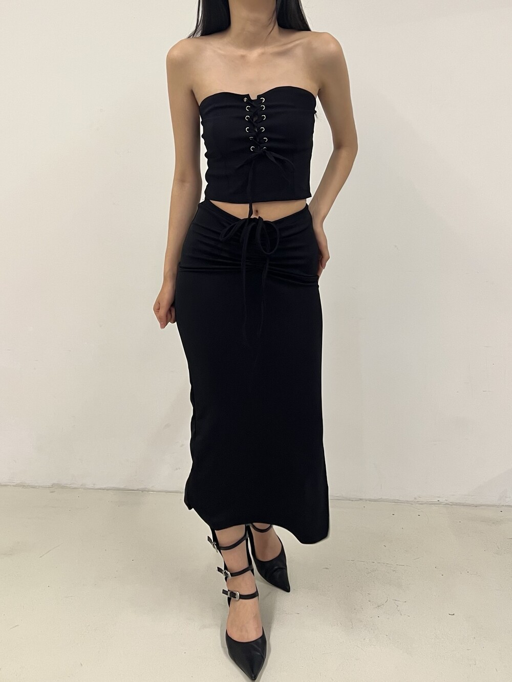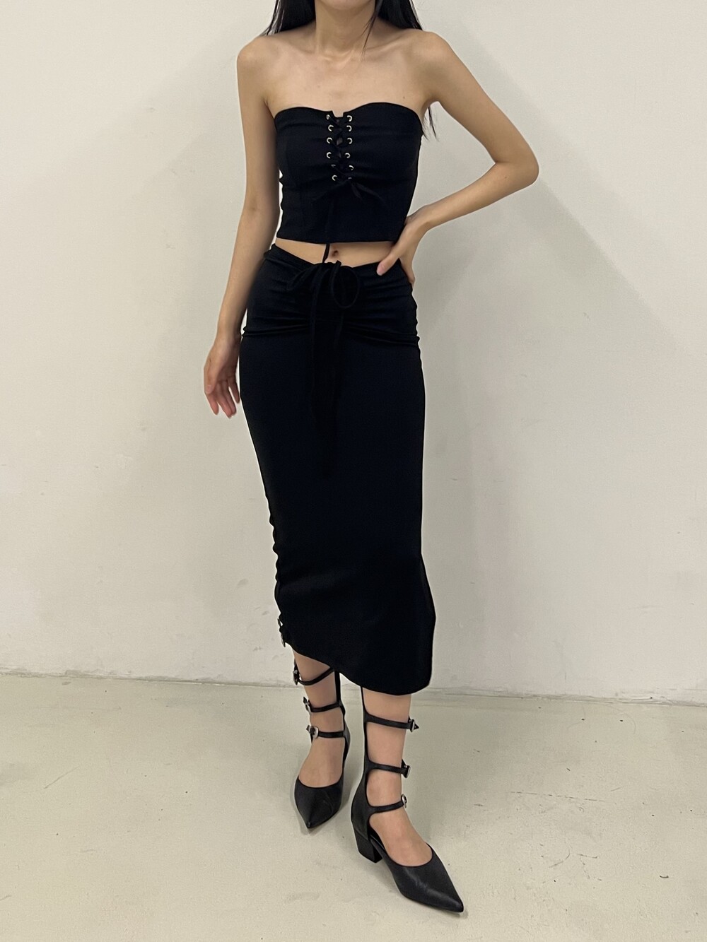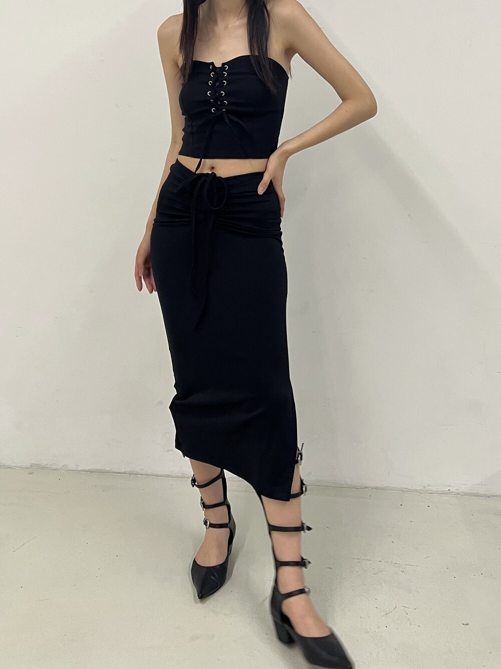 Strap shirring long sk