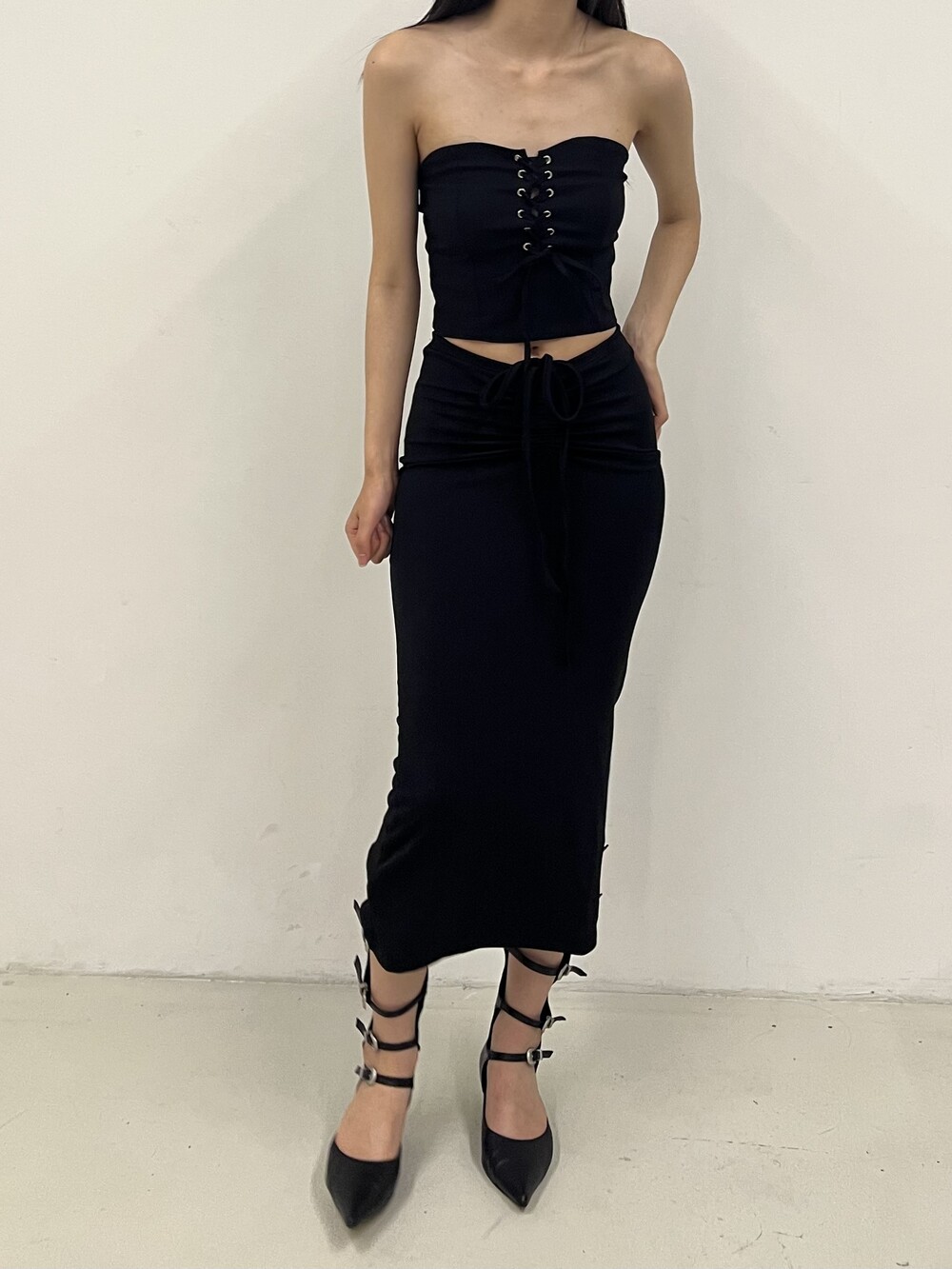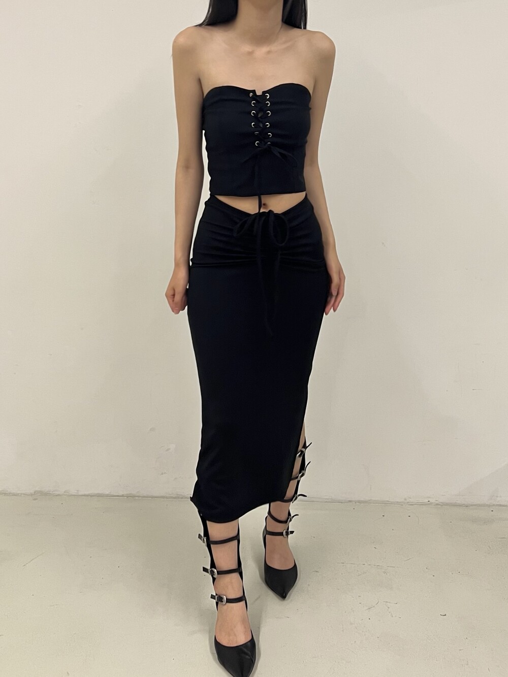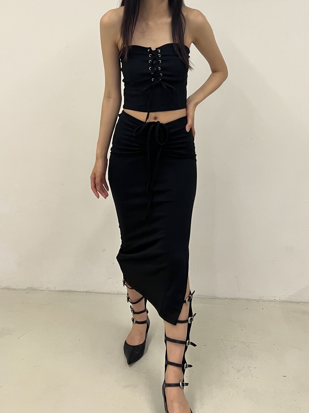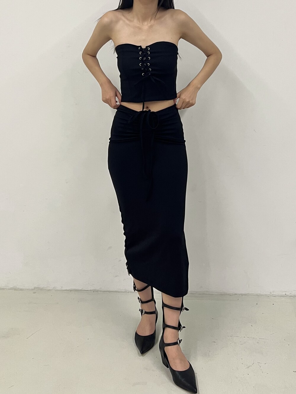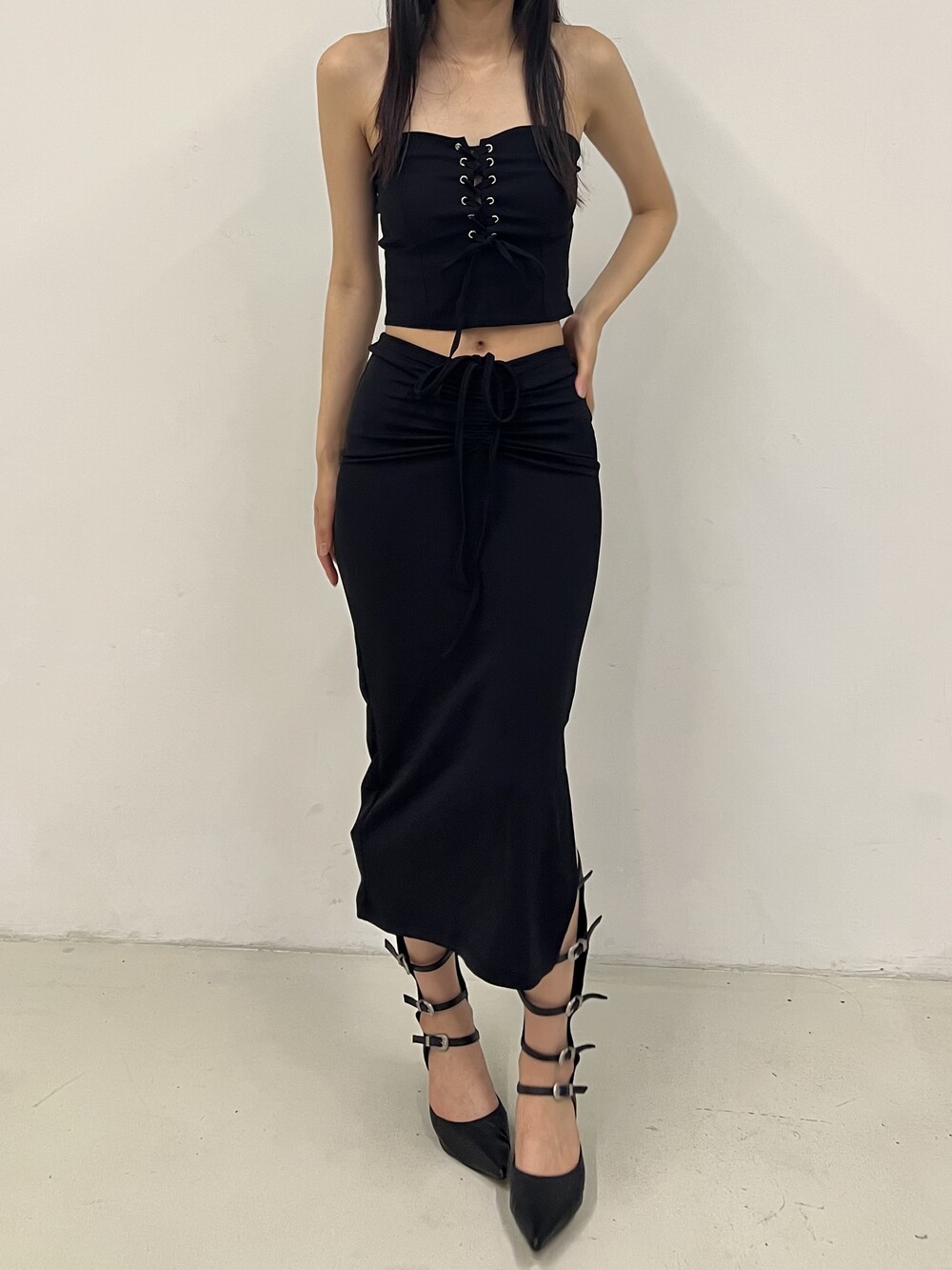 Strap shirring long sk