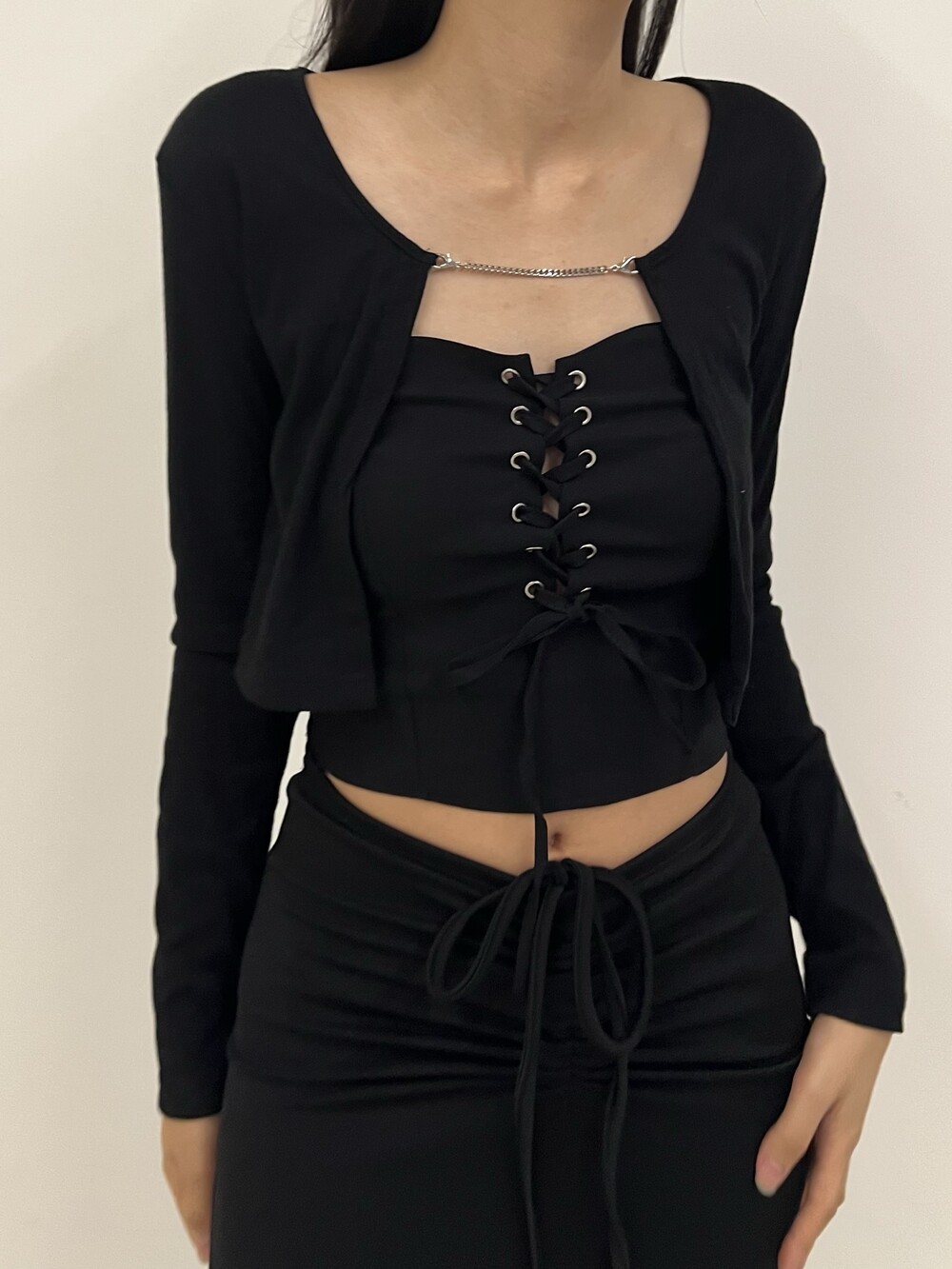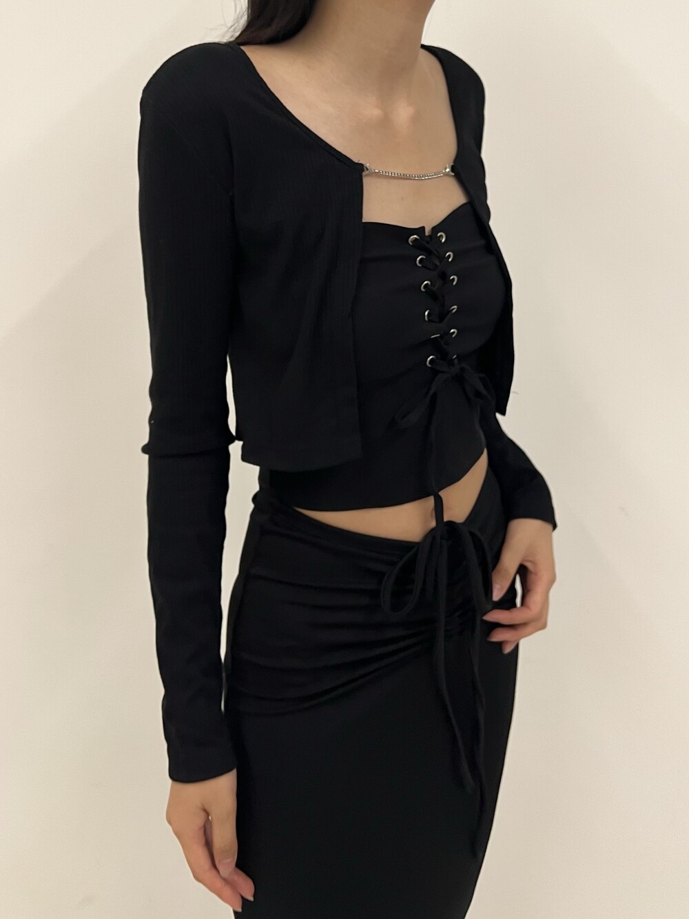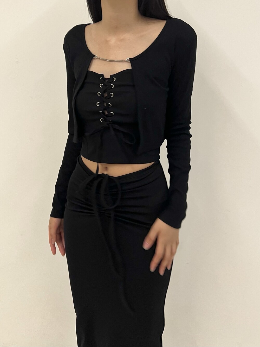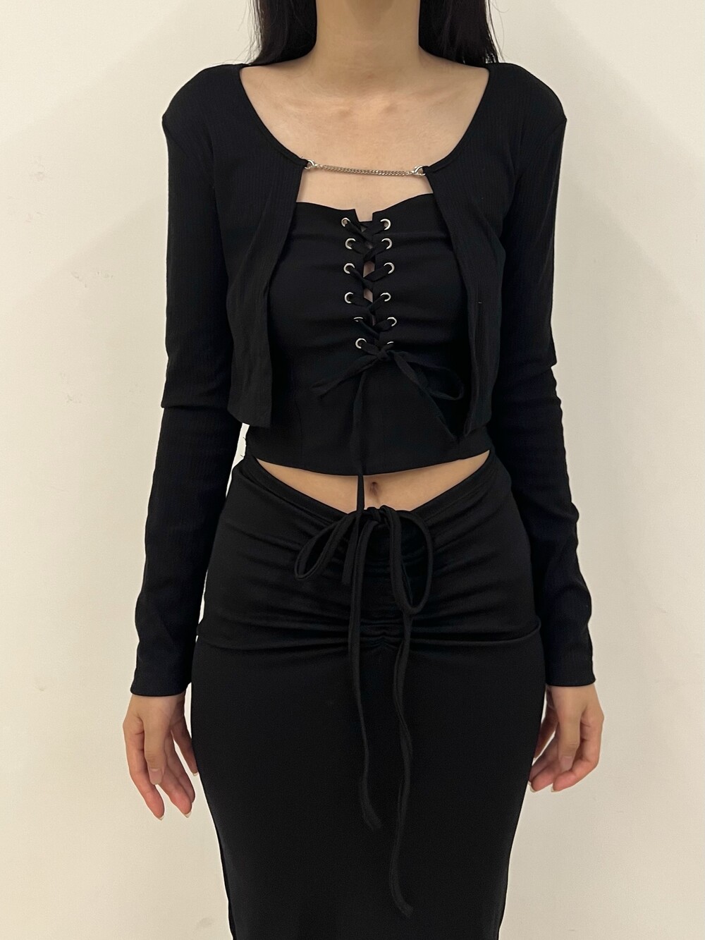 Strap shirring long sk