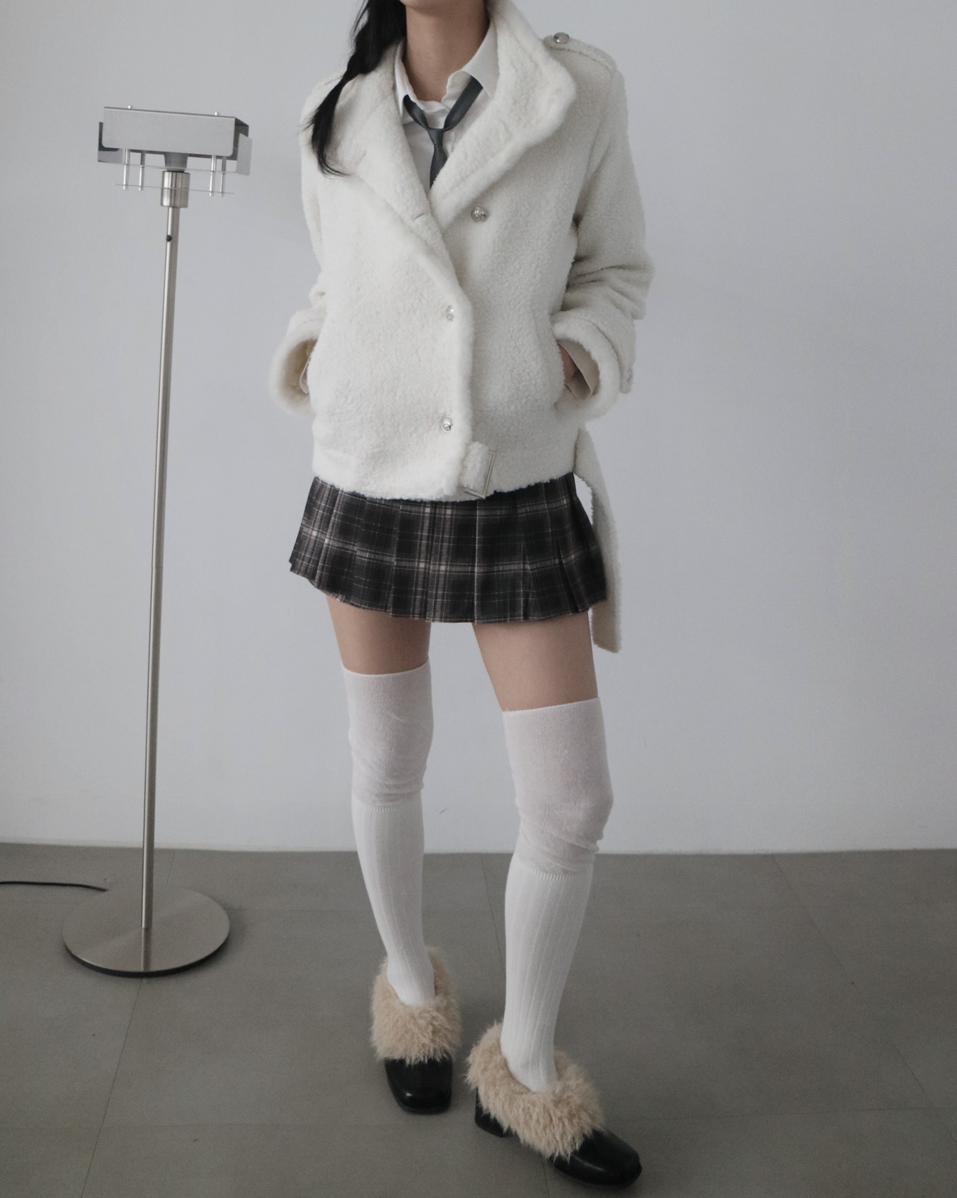 fur high neck jacket