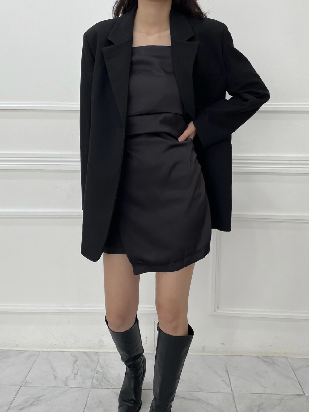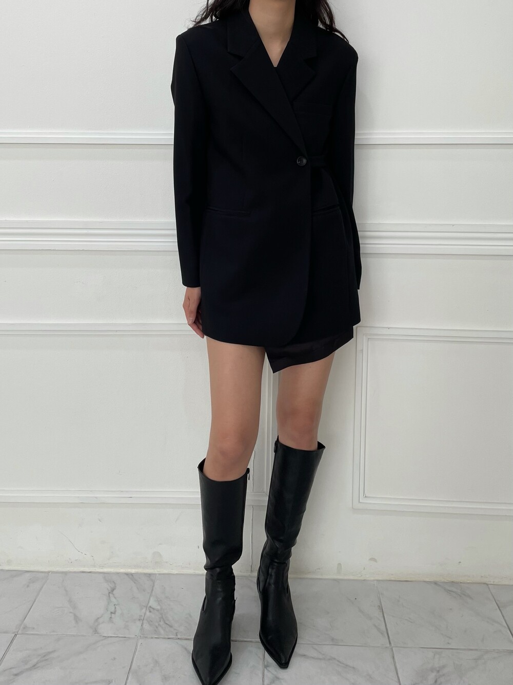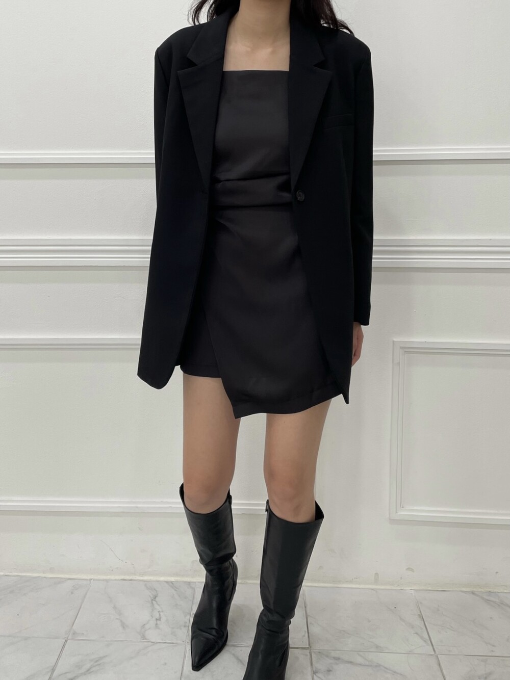 슬립 원피스와 코디하기 위해 기장이 긴 자켓을 찾던 중 누구나 하나쯤은 가지고 있을 포멀한 블레이져 말고 포인트 있는 자켓을 데려왔습니다! 기장도 너무 길지도, 그렇다고 짧지도 않은 기장으로 원피스 코디나 미니스커트 코디에 함께 착용하면 딱인 자켓입니다! 또한, 자켓 허리 사이드에 버튼고리가 부착되어있어 허리 라인을 잡아주는 스타일로도 코디가 가능한 투웨이 스타일입니다!