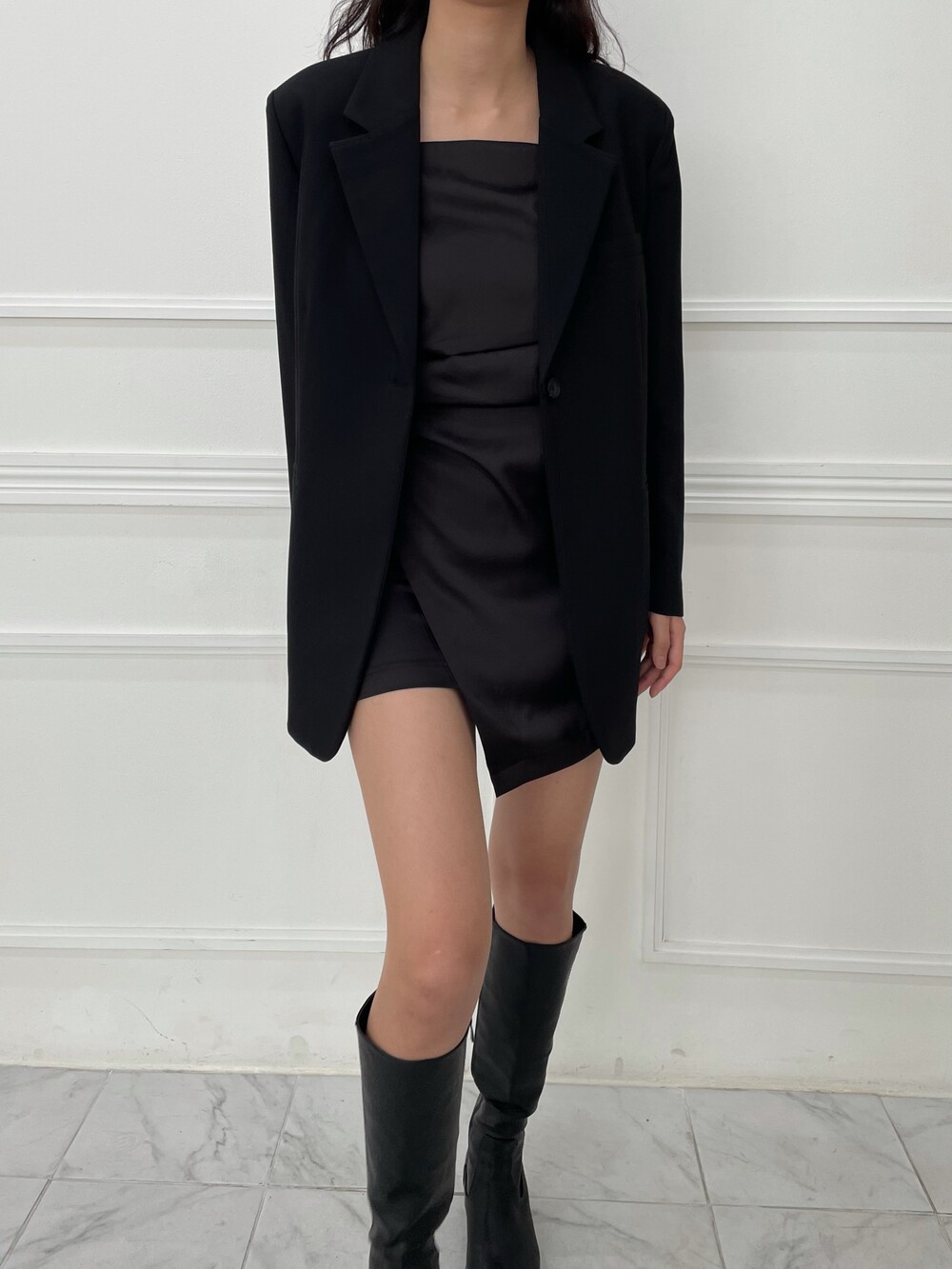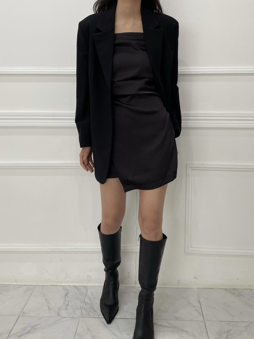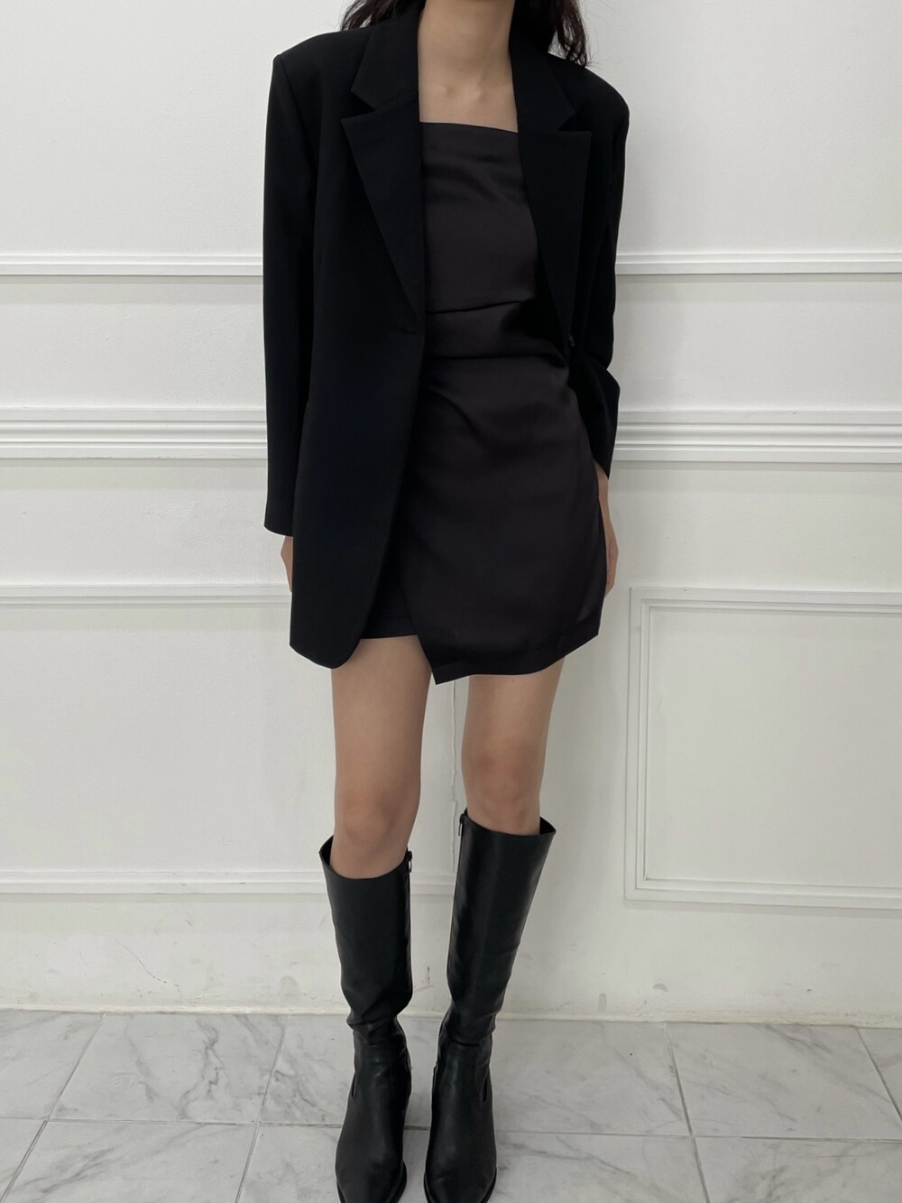슬립 원피스와 코디하기 위해 기장이 긴 자켓을 찾던 중 누구나 하나쯤은 가지고 있을 포멀한 블레이져 말고 포인트 있는 자켓을 데려왔습니다! 기장도 너무 길지도, 그렇다고 짧지도 않은 기장으로 원피스 코디나 미니스커트 코디에 함께 착용하면 딱인 자켓입니다! 또한, 자켓 허리 사이드에 버튼고리가 부착되어있어 허리 라인을 잡아주는 스타일로도 코디가 가능한 투웨이 스타일입니다!