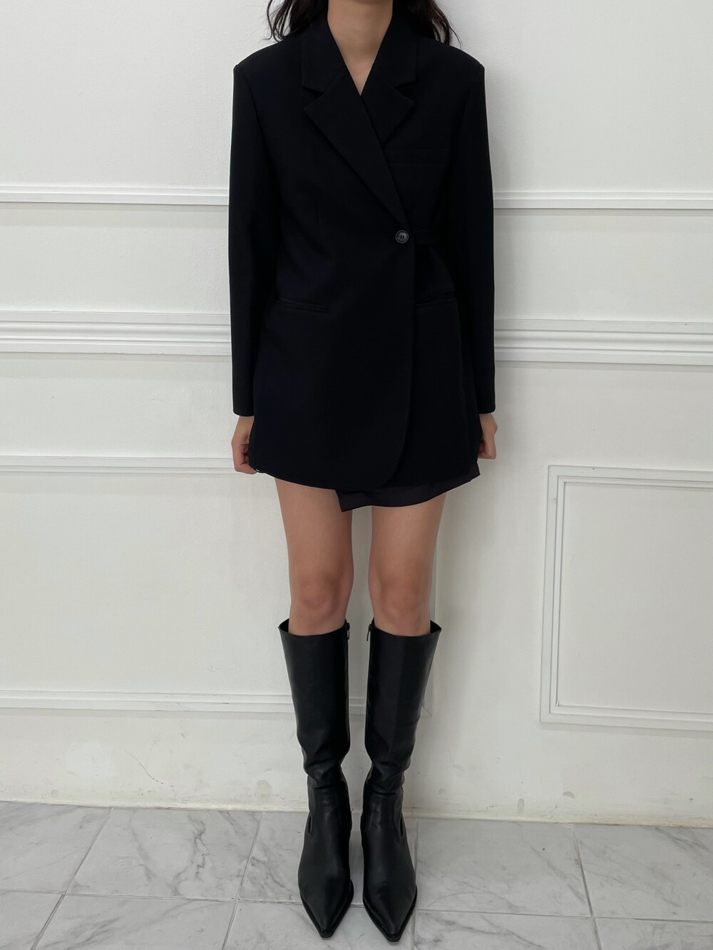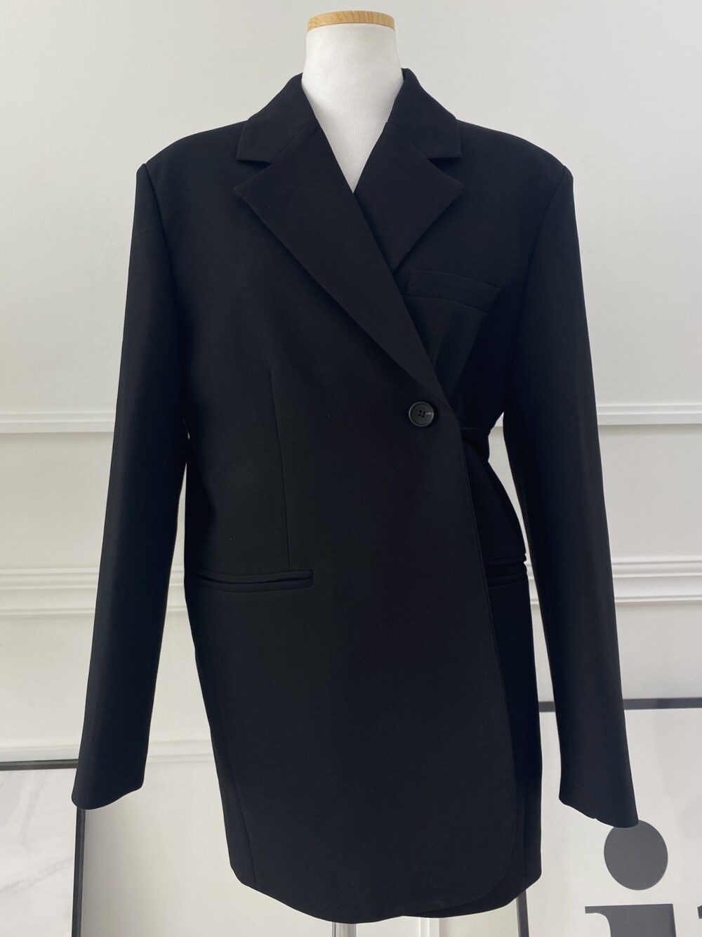 포멀한 오버 블레이져 실루엣과 기장이 길면서 투웨이로 착용이 가능하여 활용도 좋은 자켓입니다!