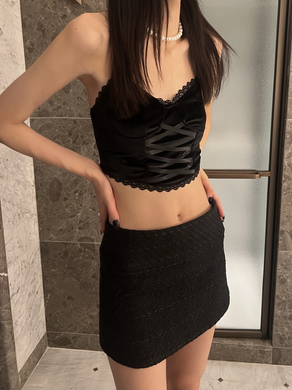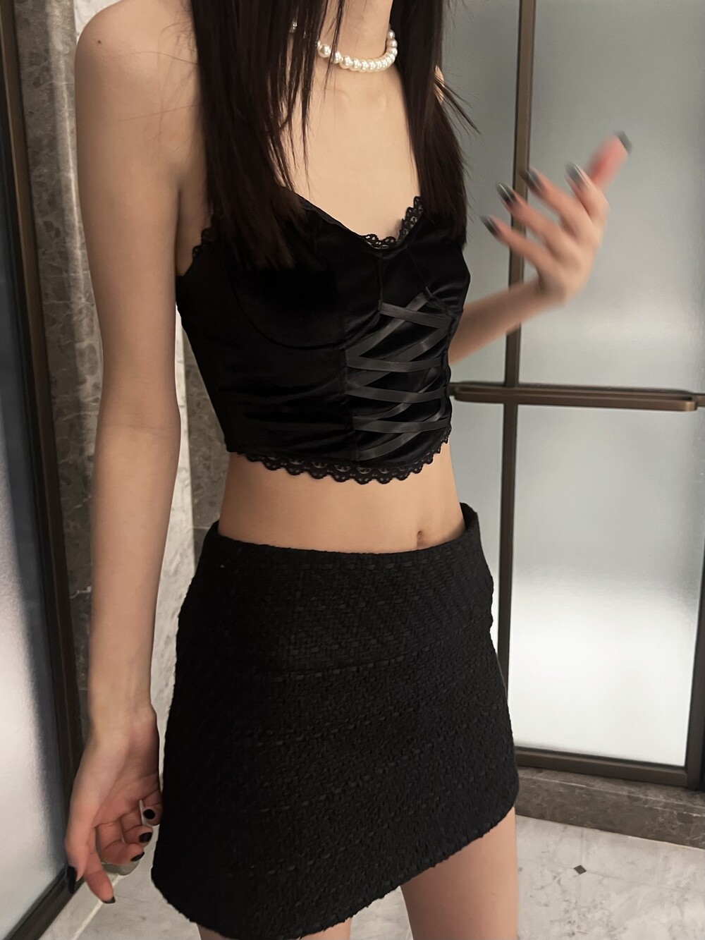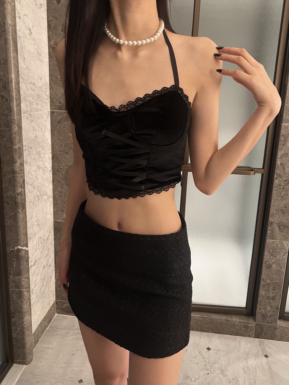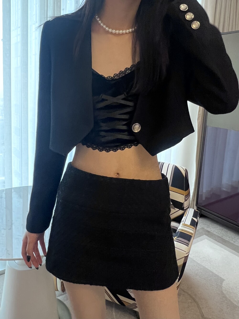 페미닌하면서 시크한 무드를 더했습니다.