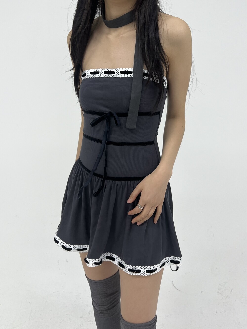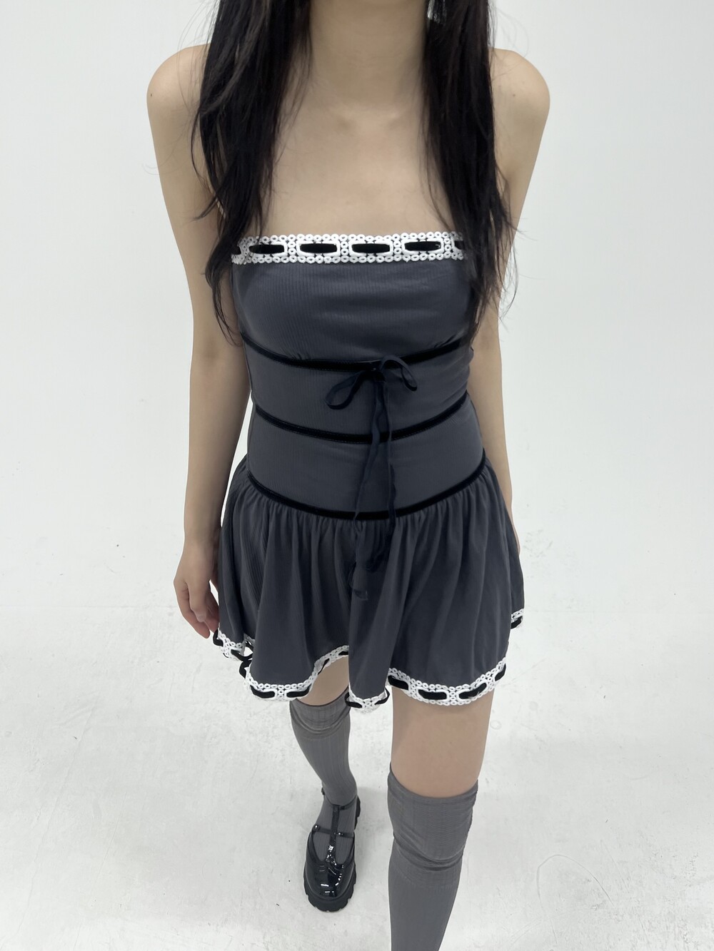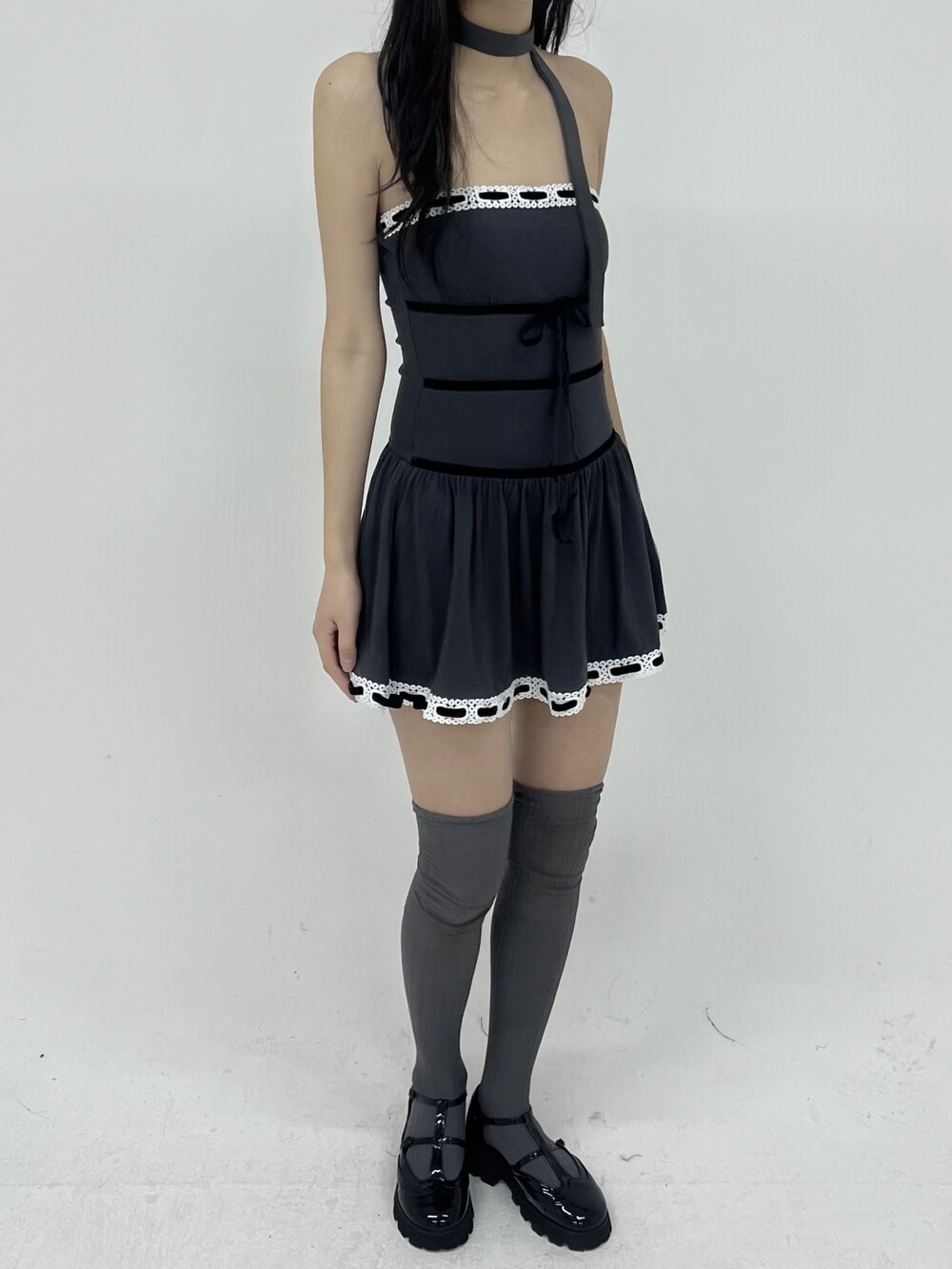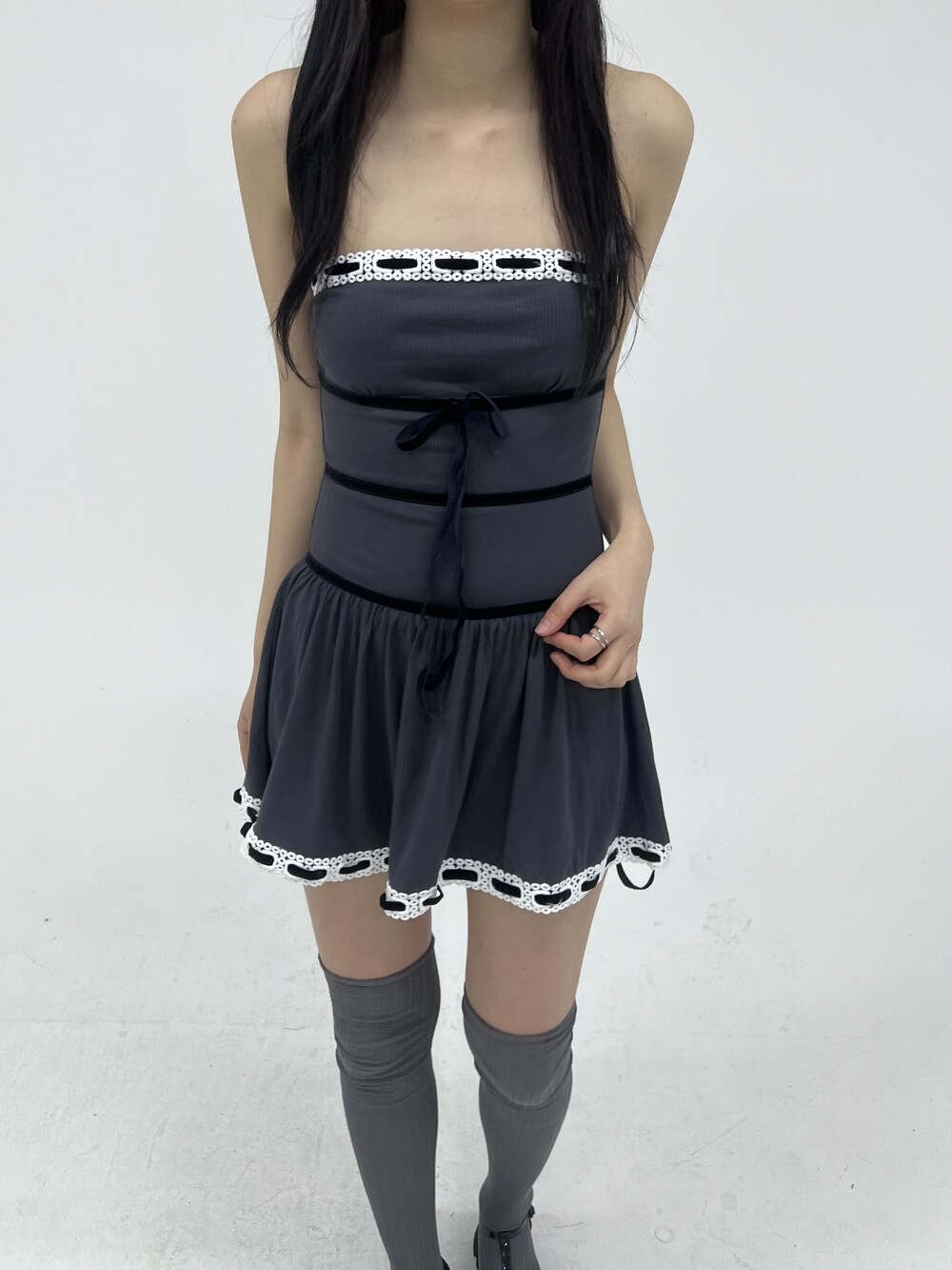010. VELVET STRAP KNIT TOP DRESS