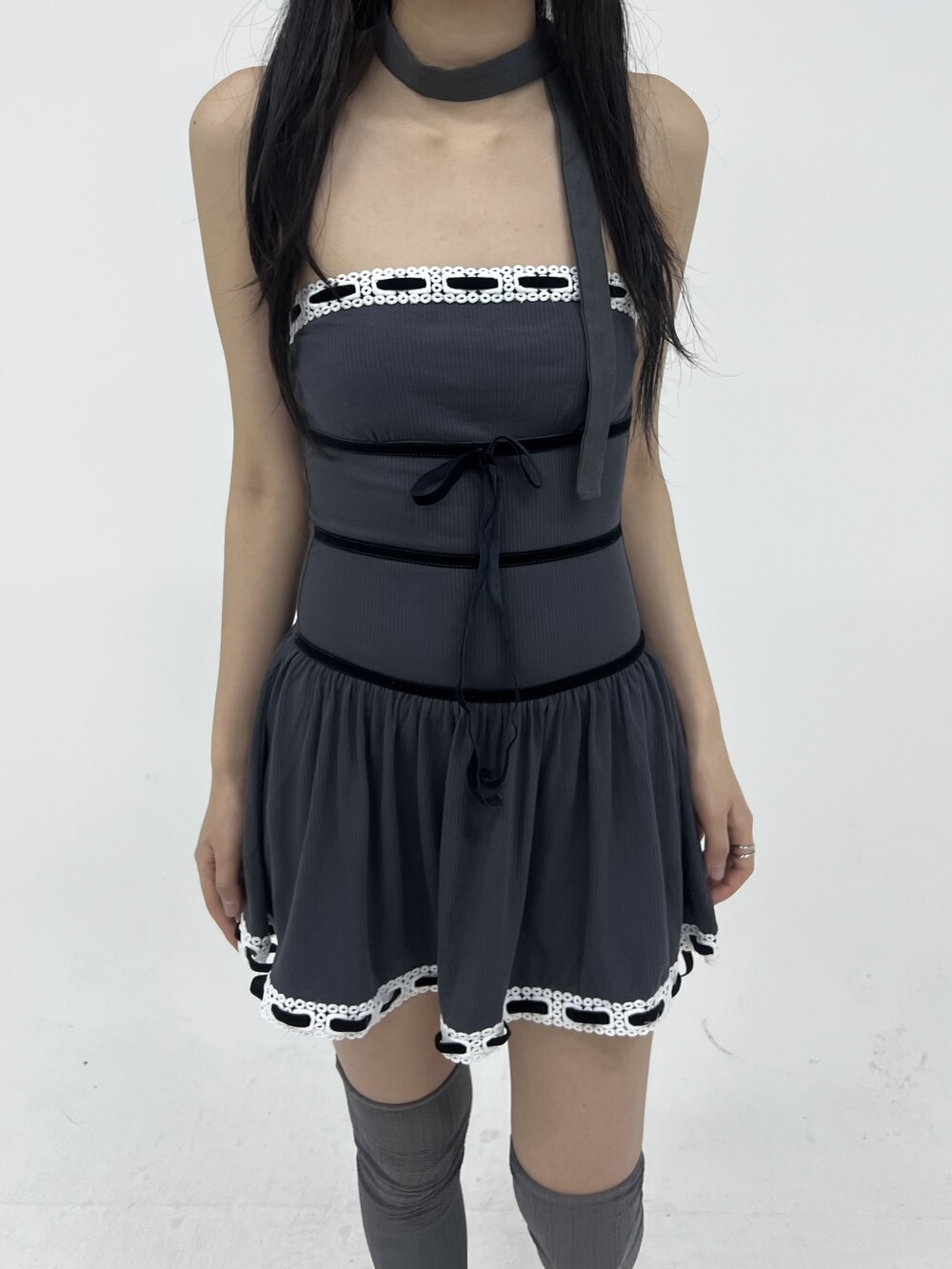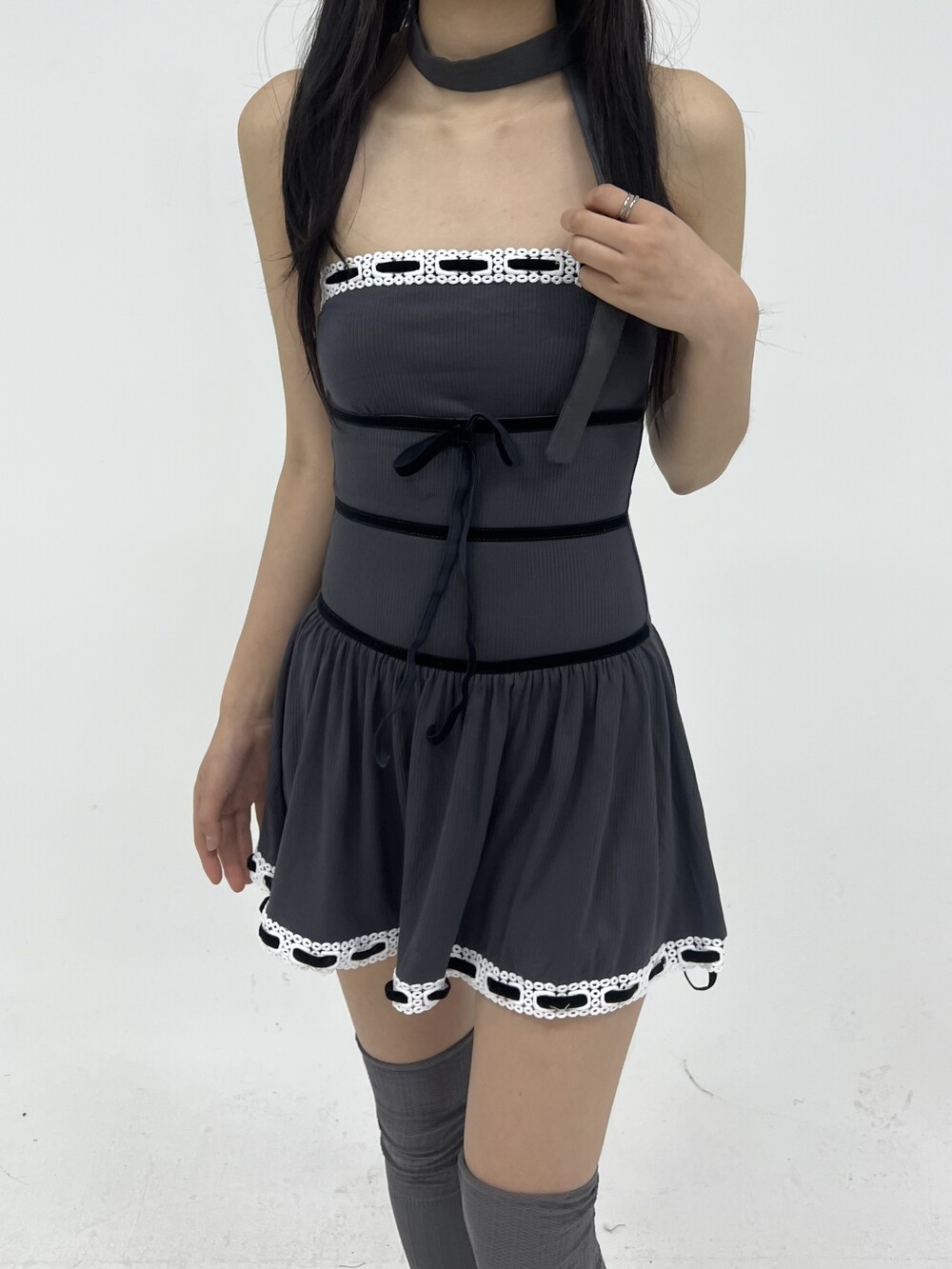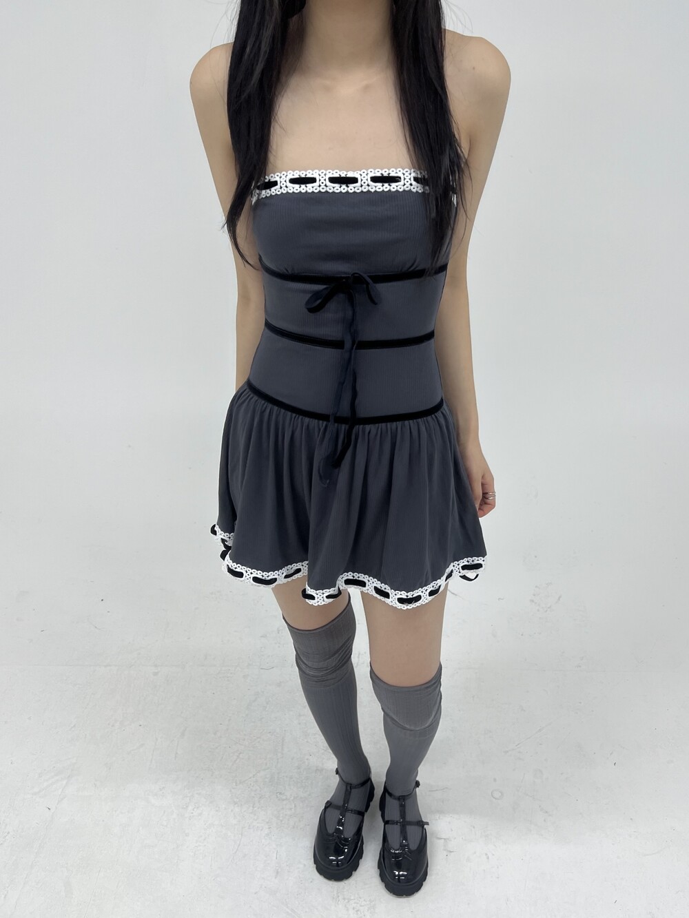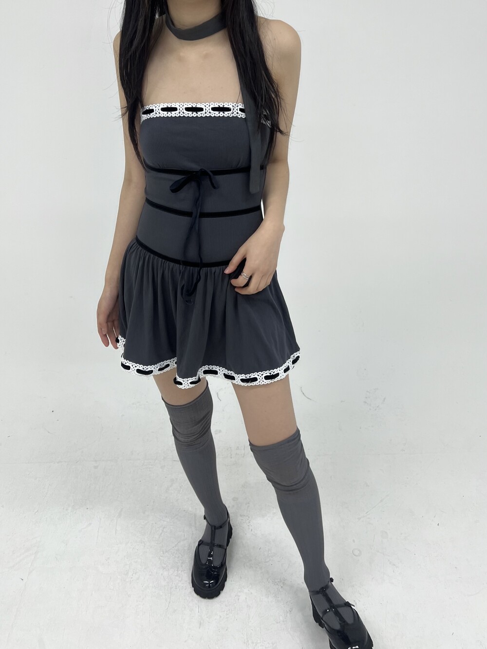 010. VELVET STRAP KNIT TOP DRESS
