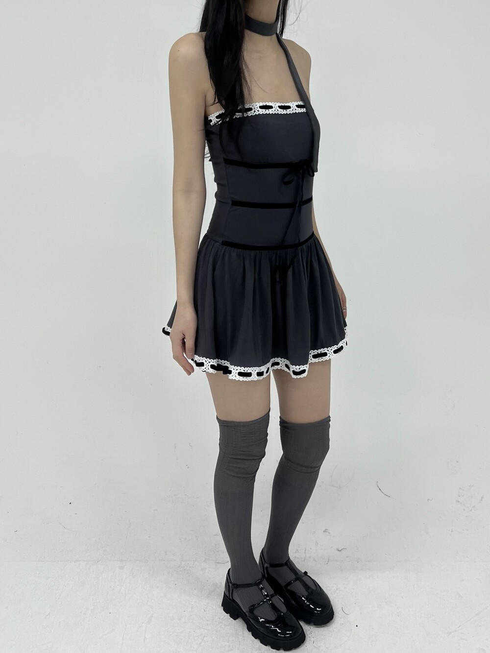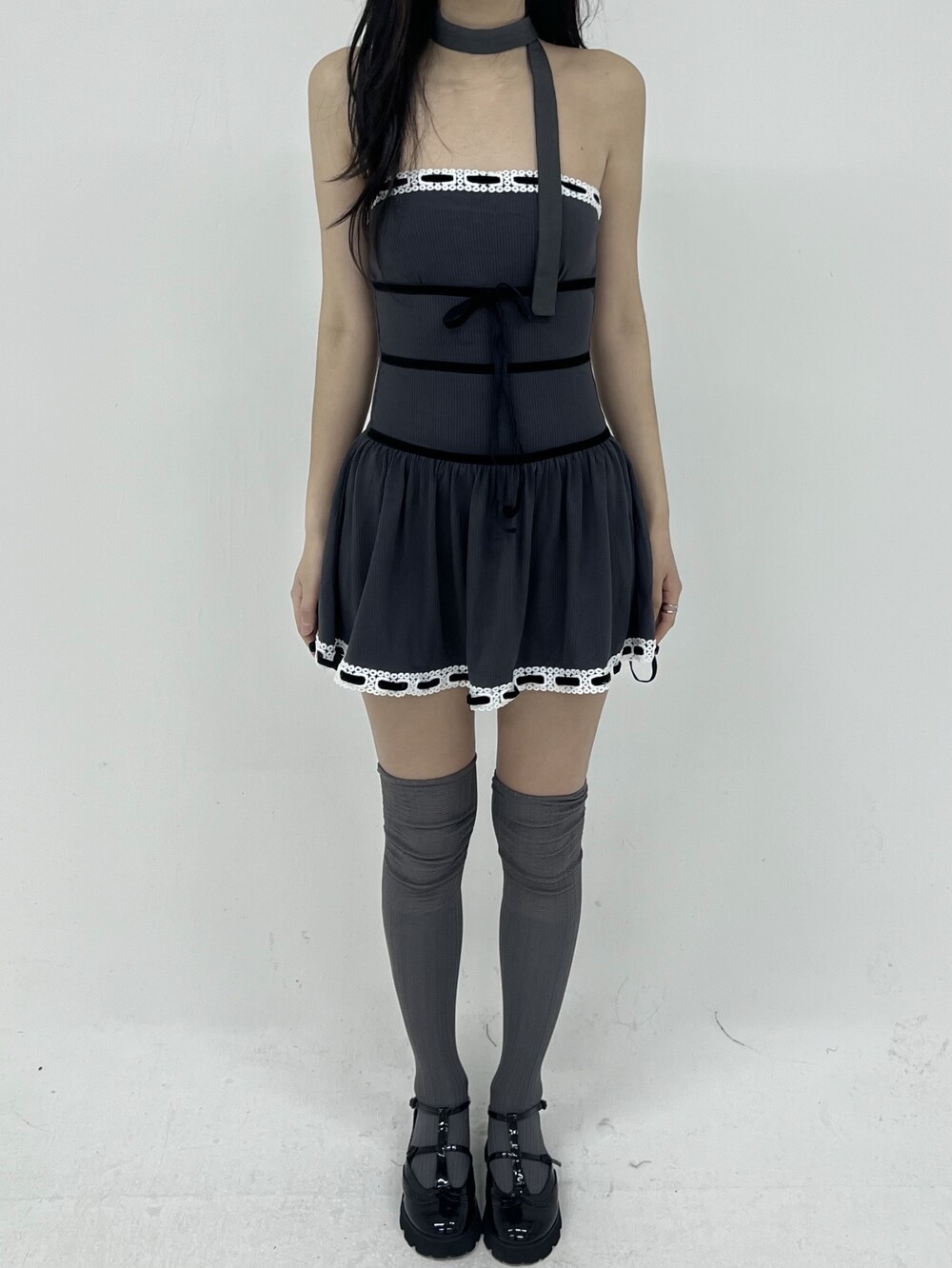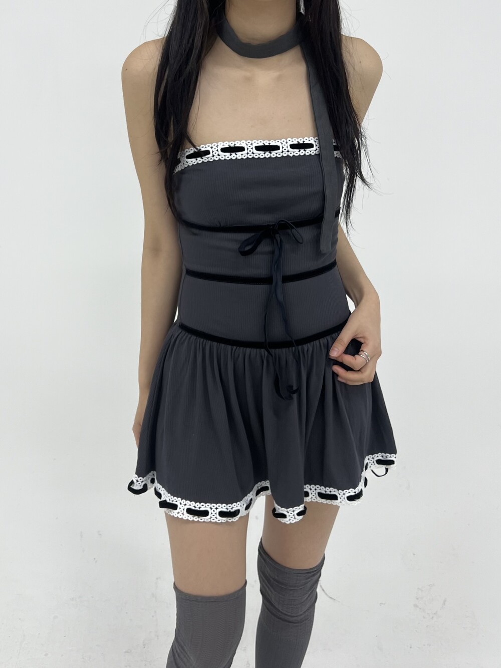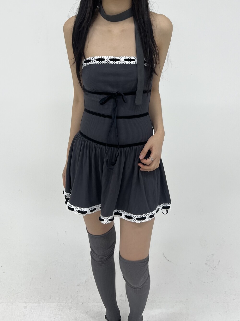 010. VELVET STRAP KNIT TOP DRESS