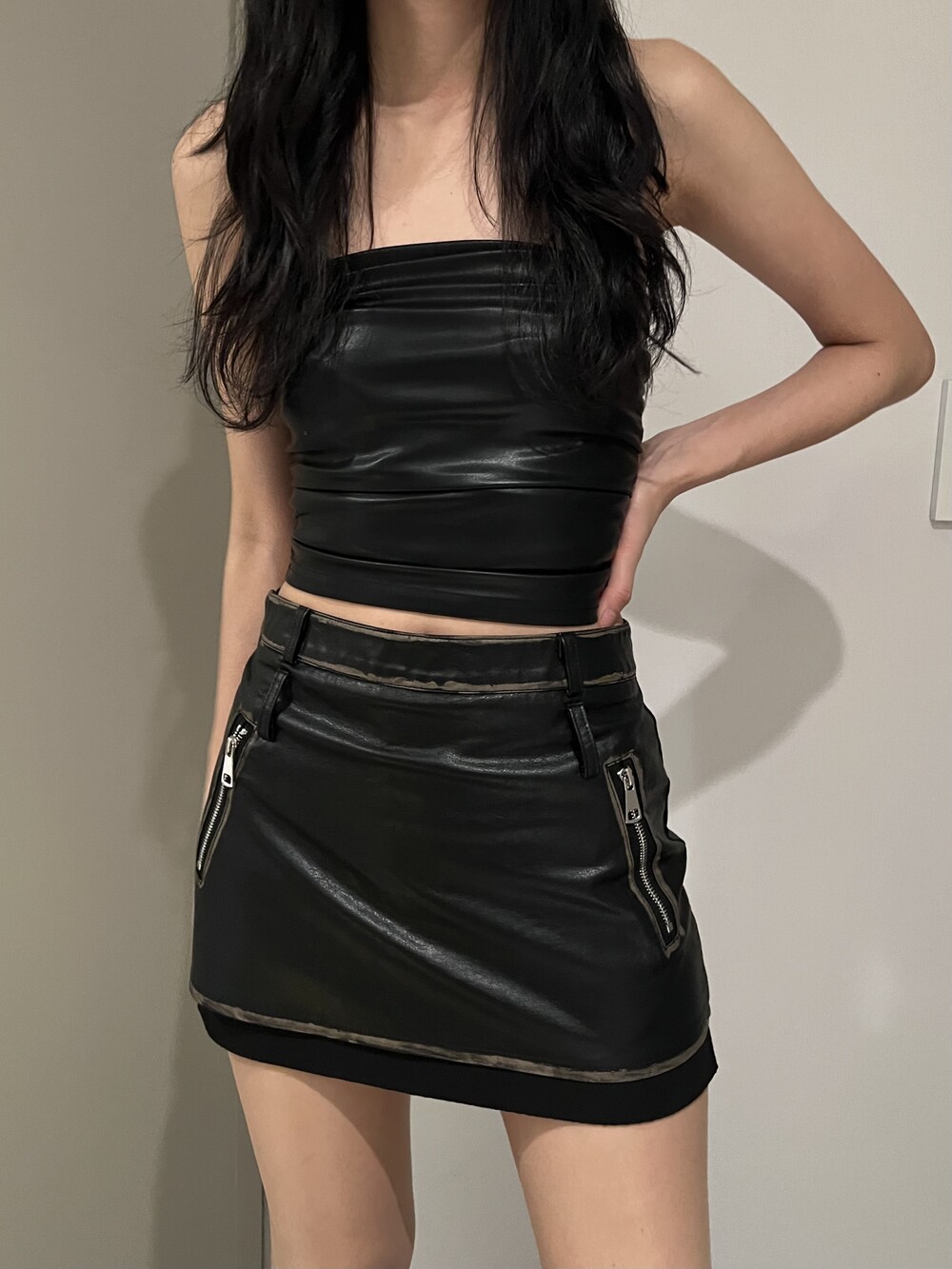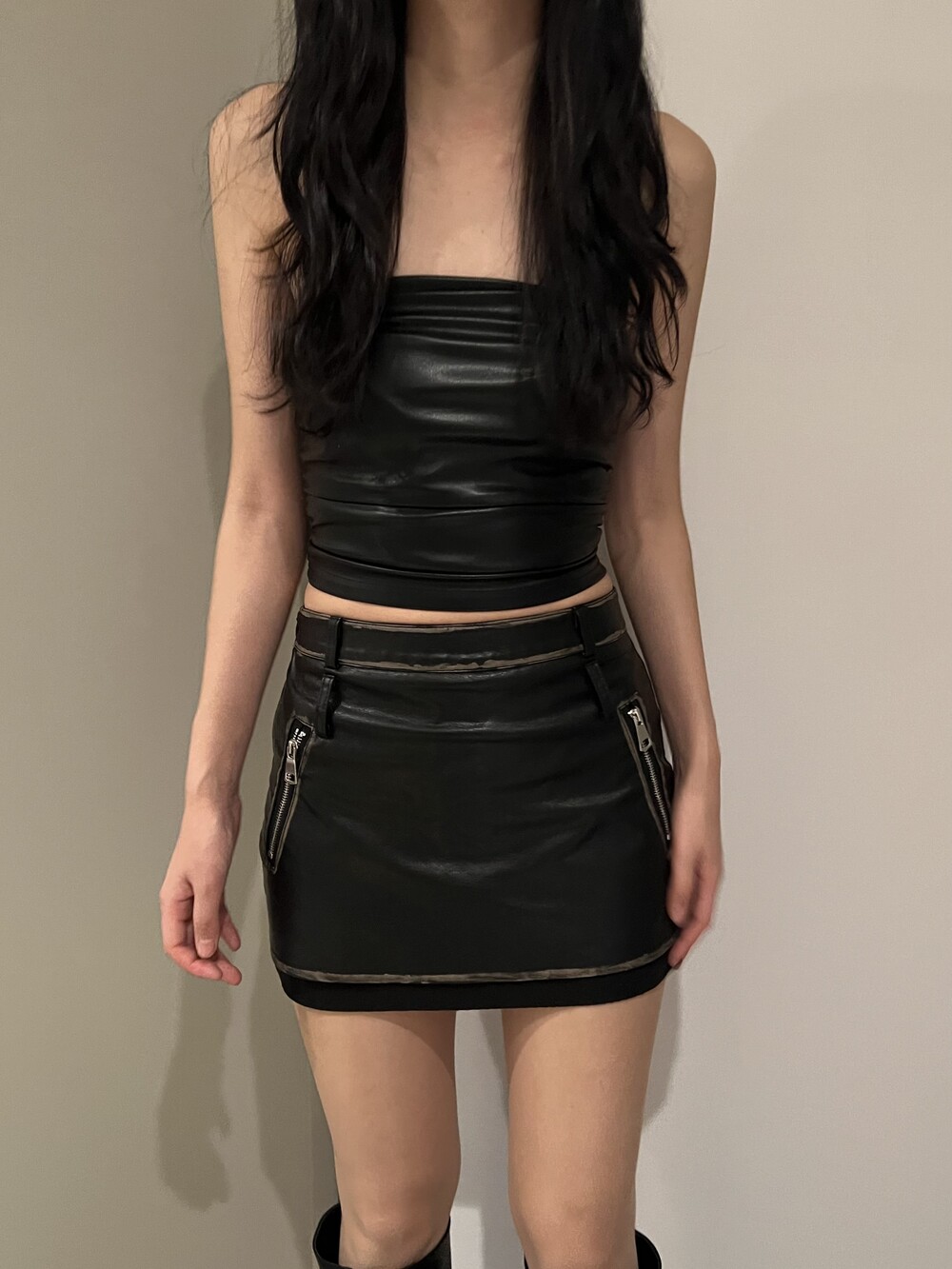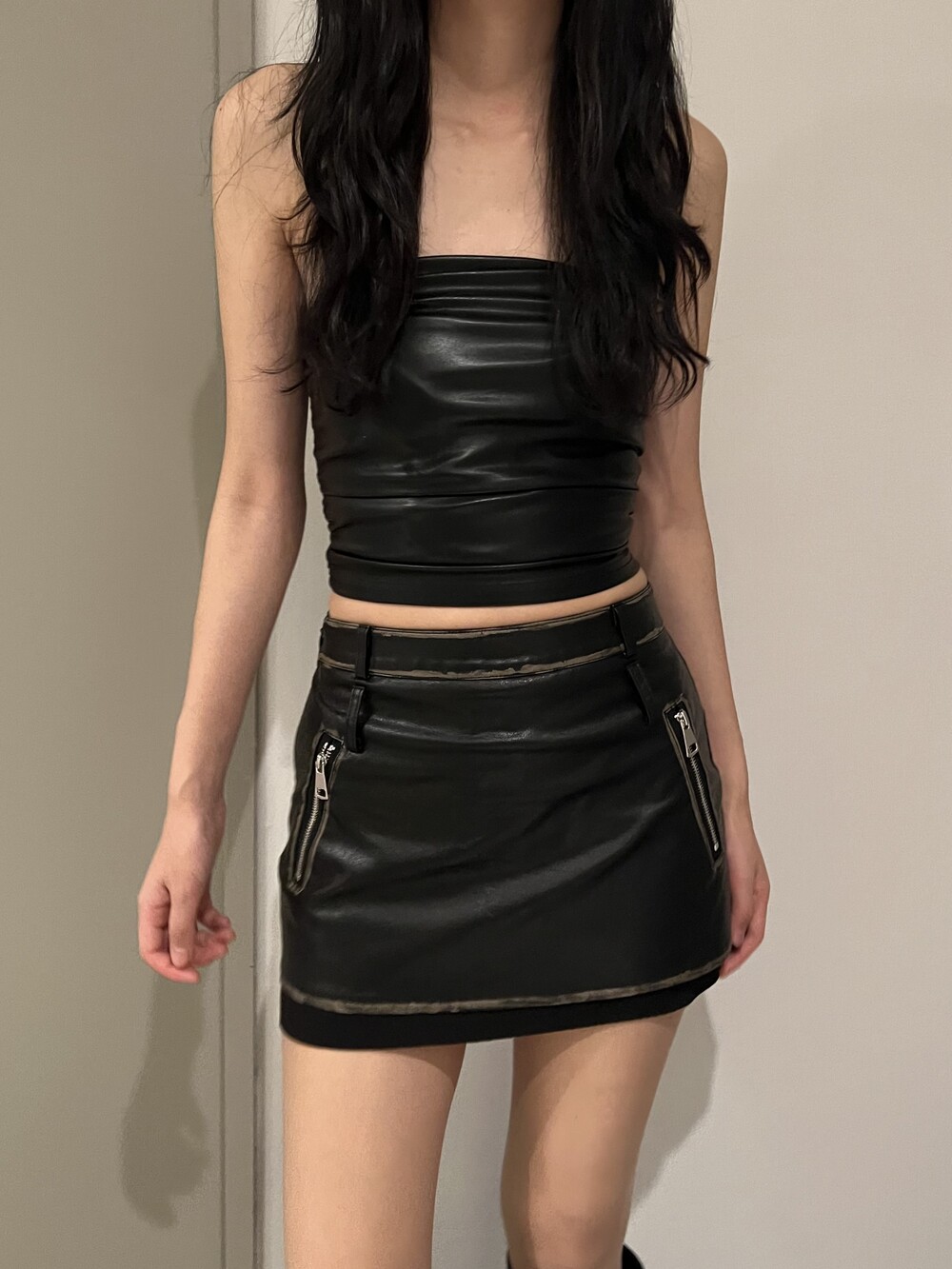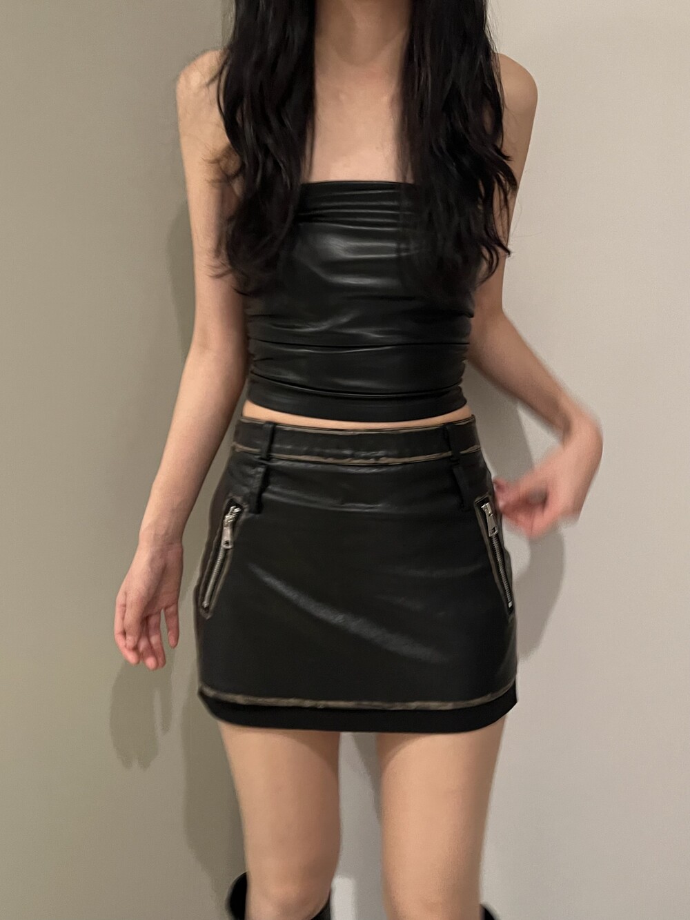 shirring leather top