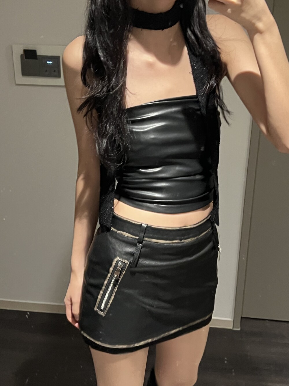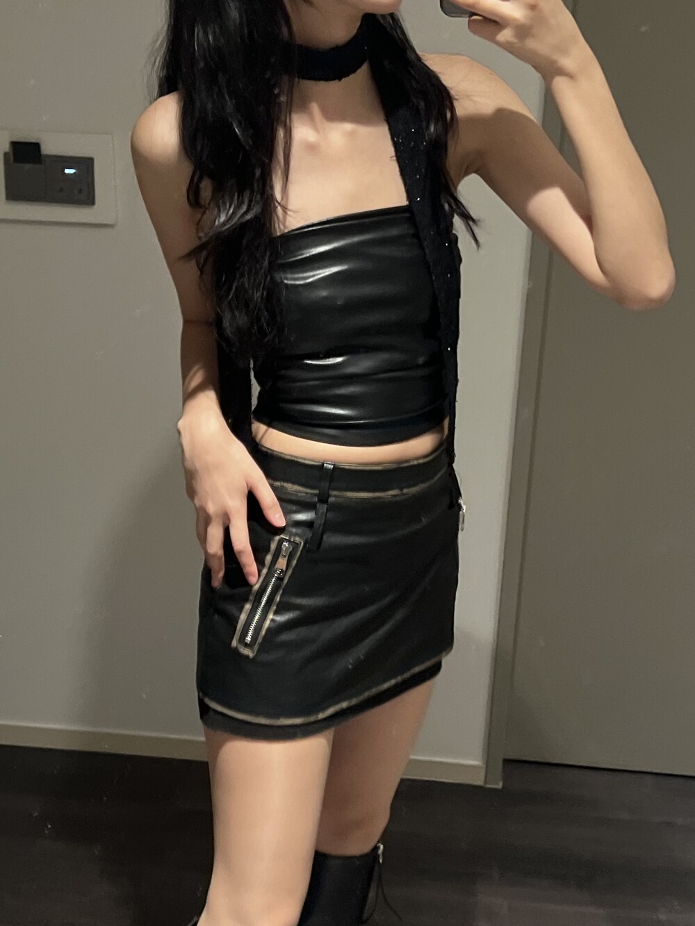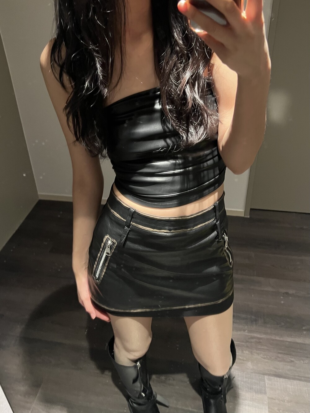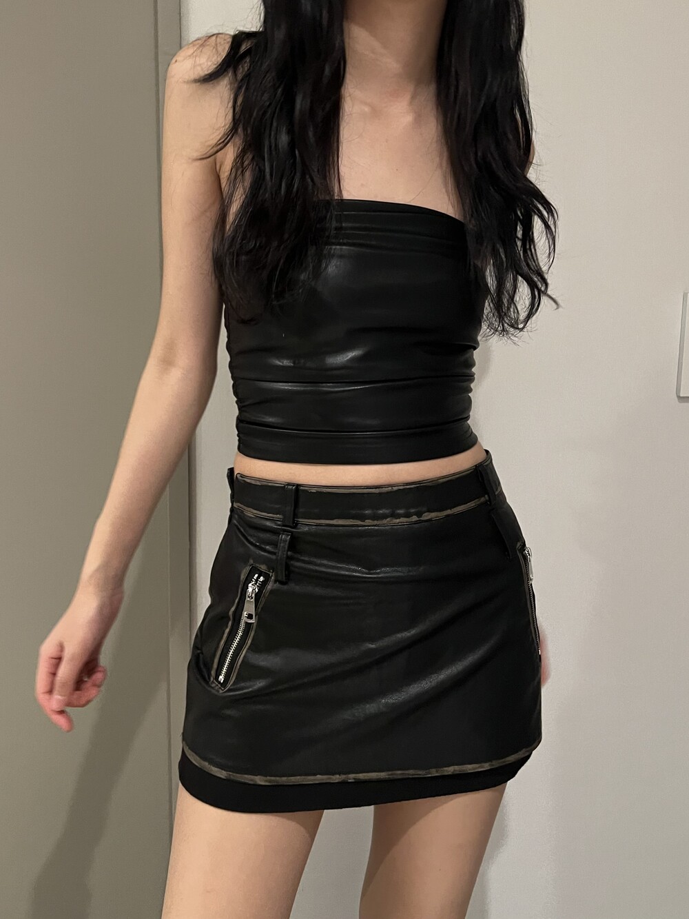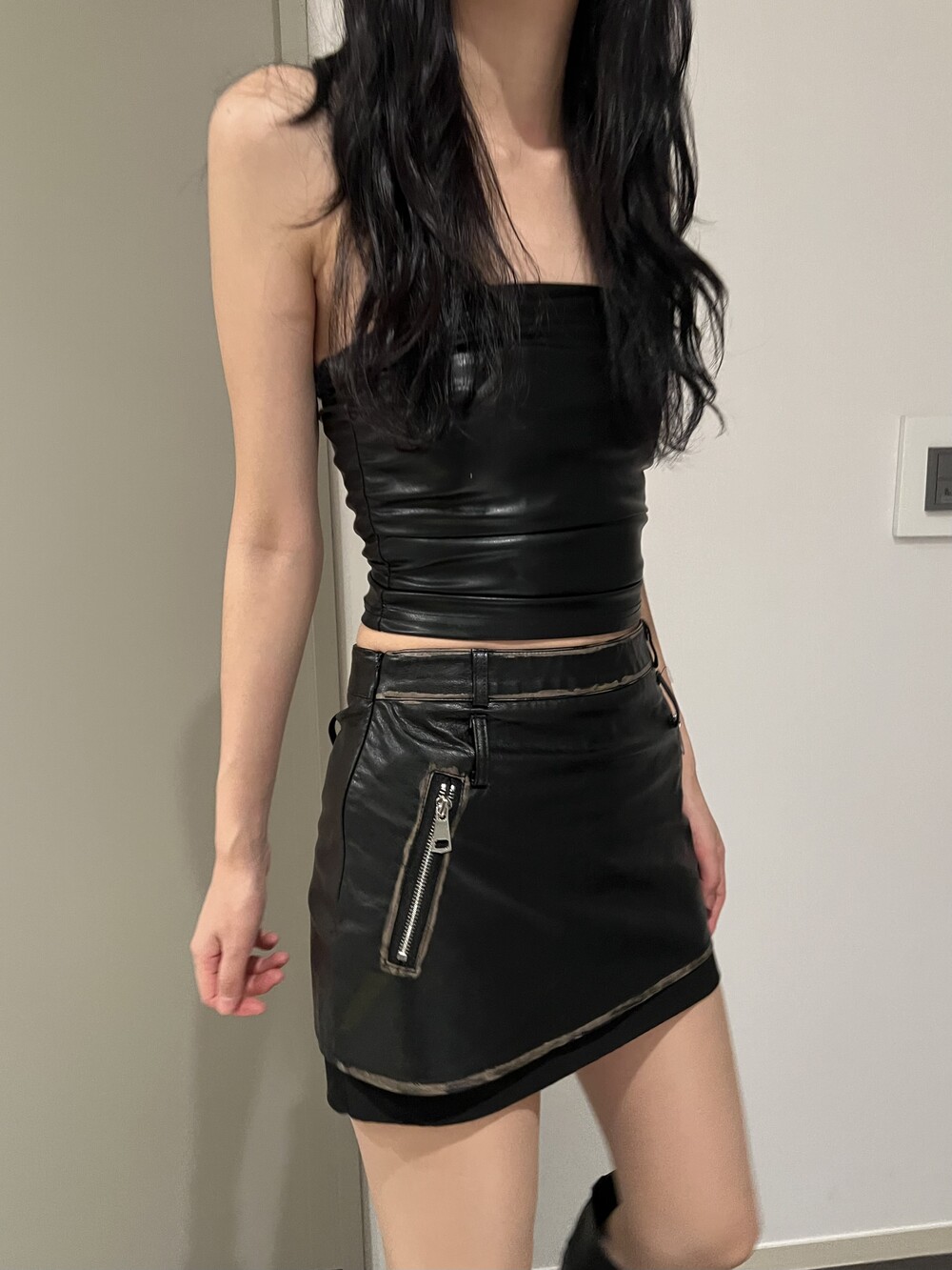 shirring leather top