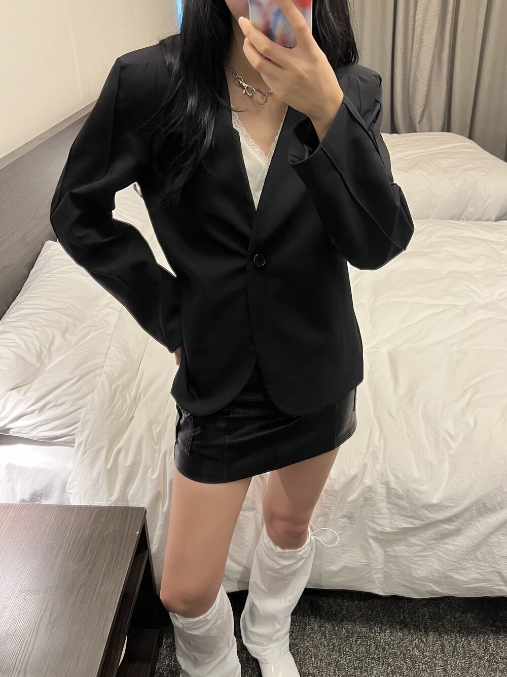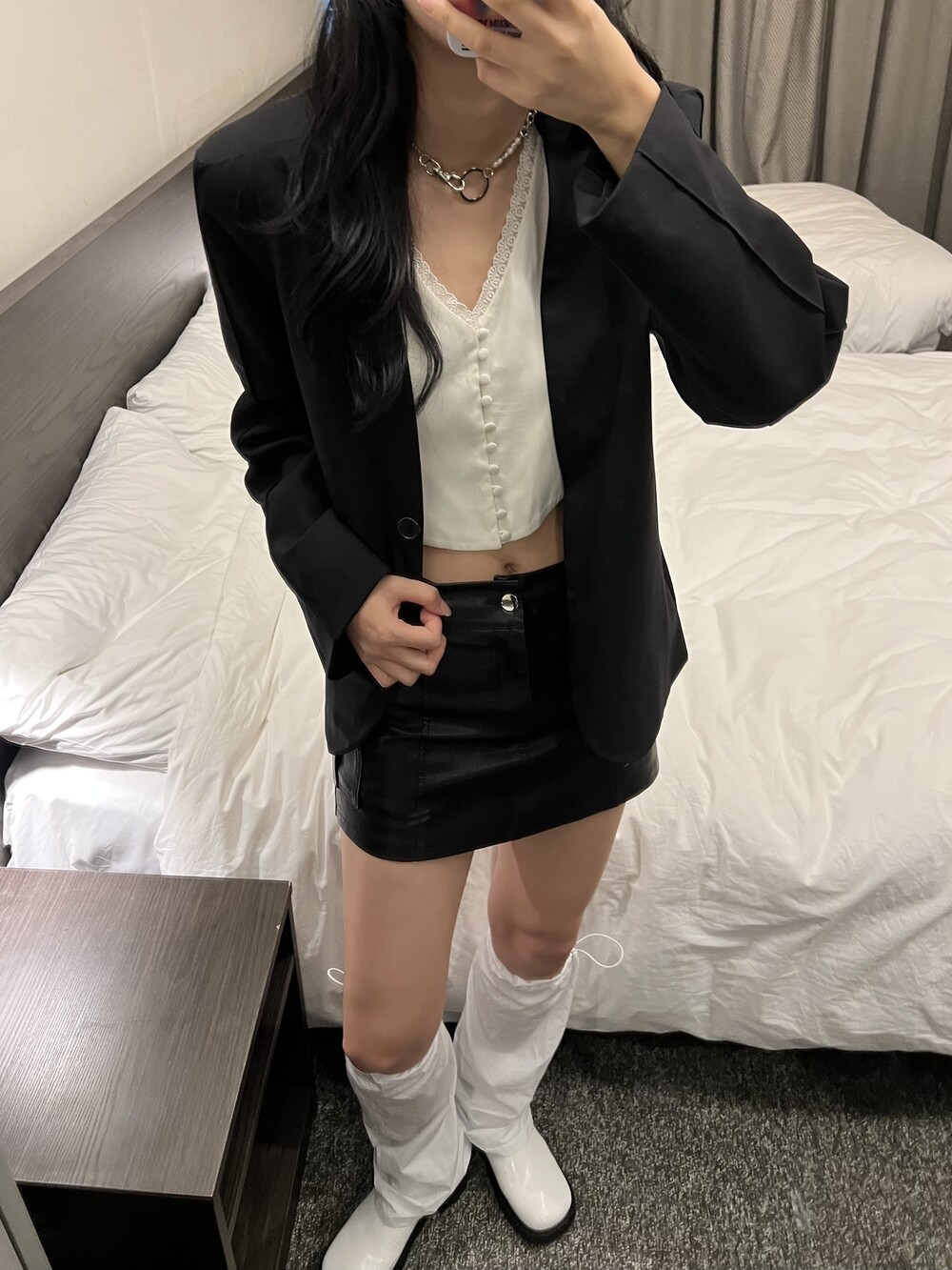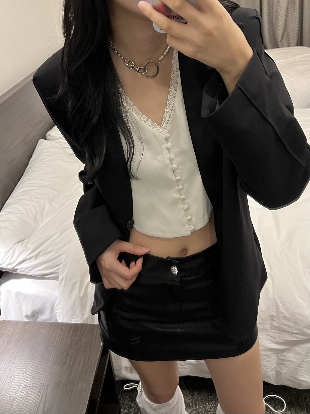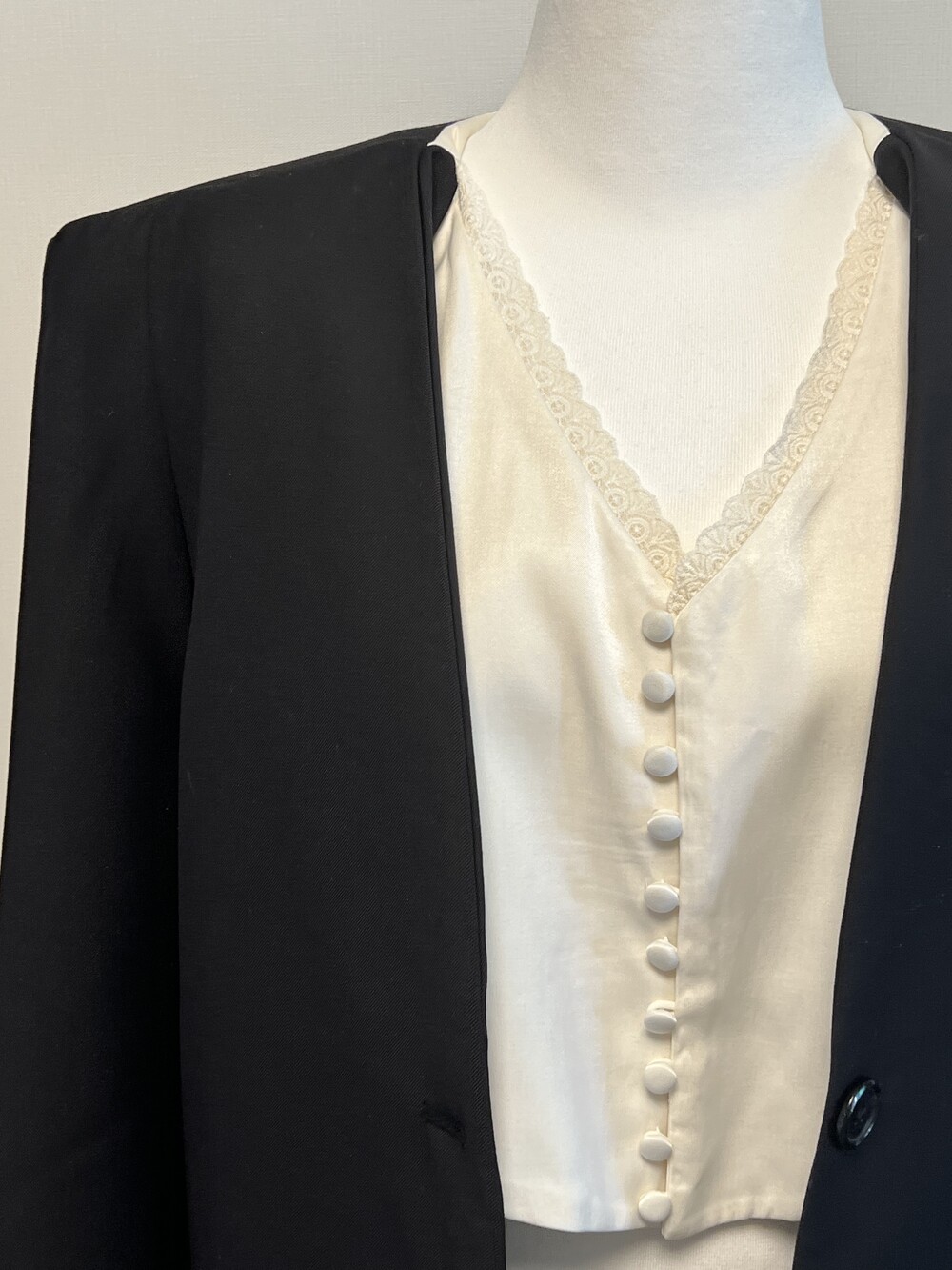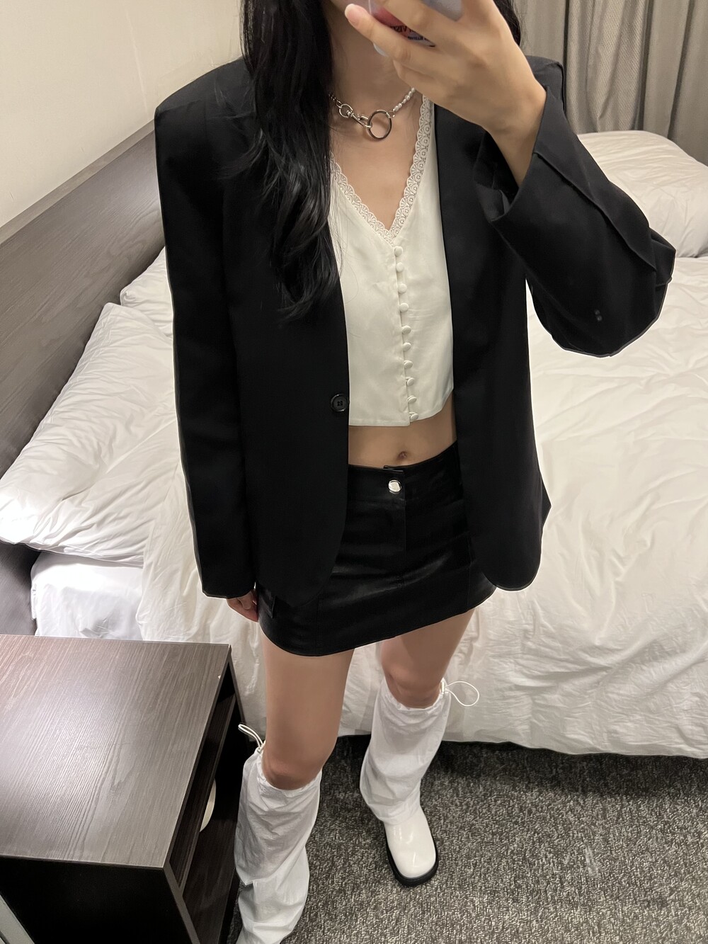 새틴블라우스와 자켓이 부착되어있습니다 :)