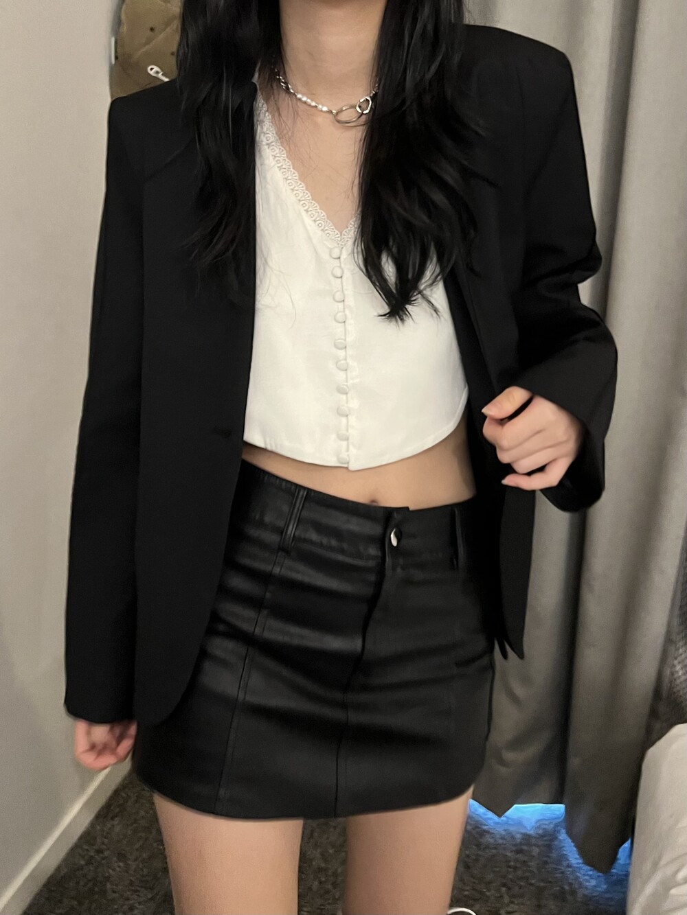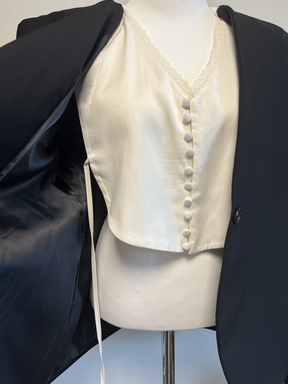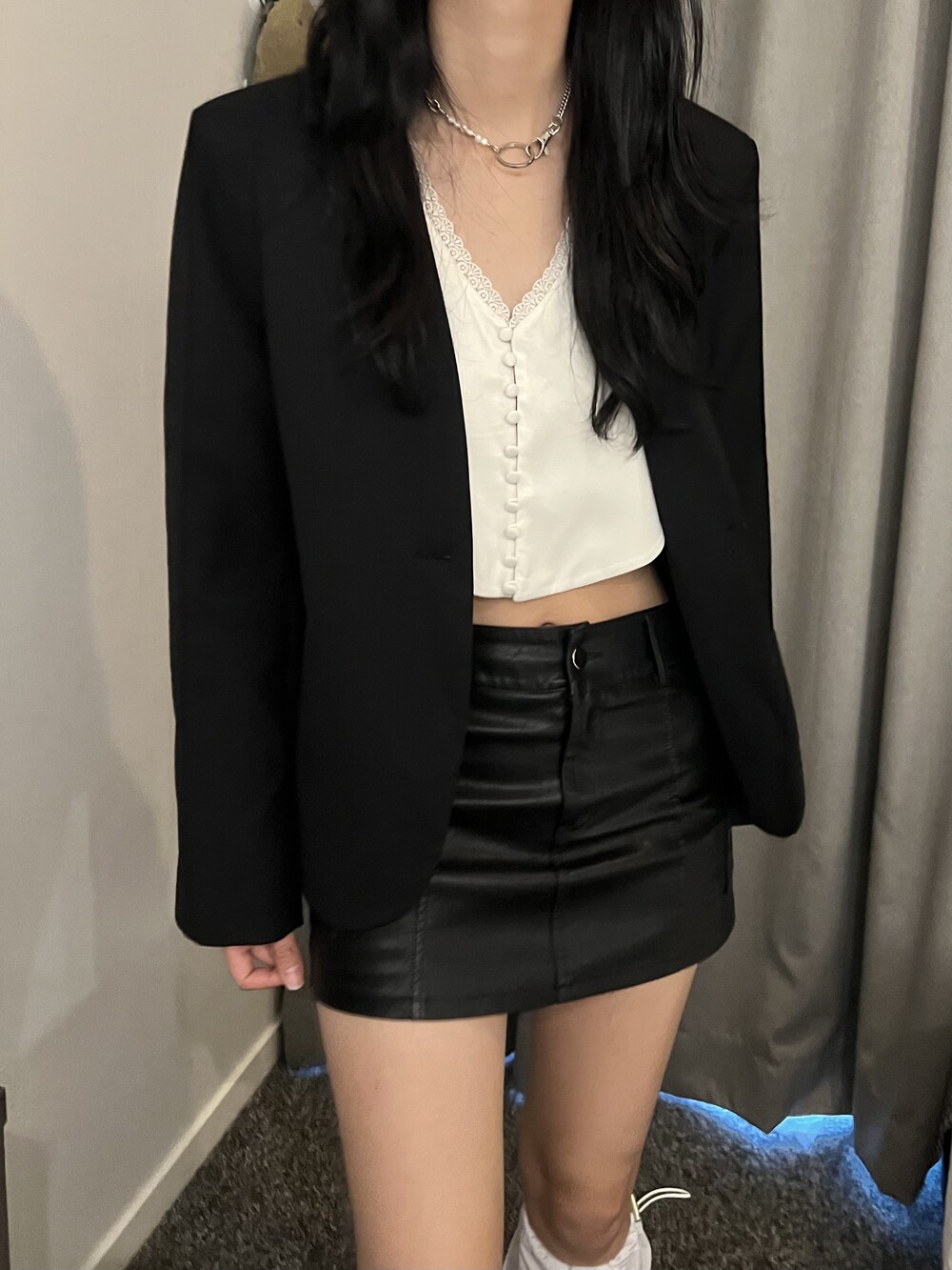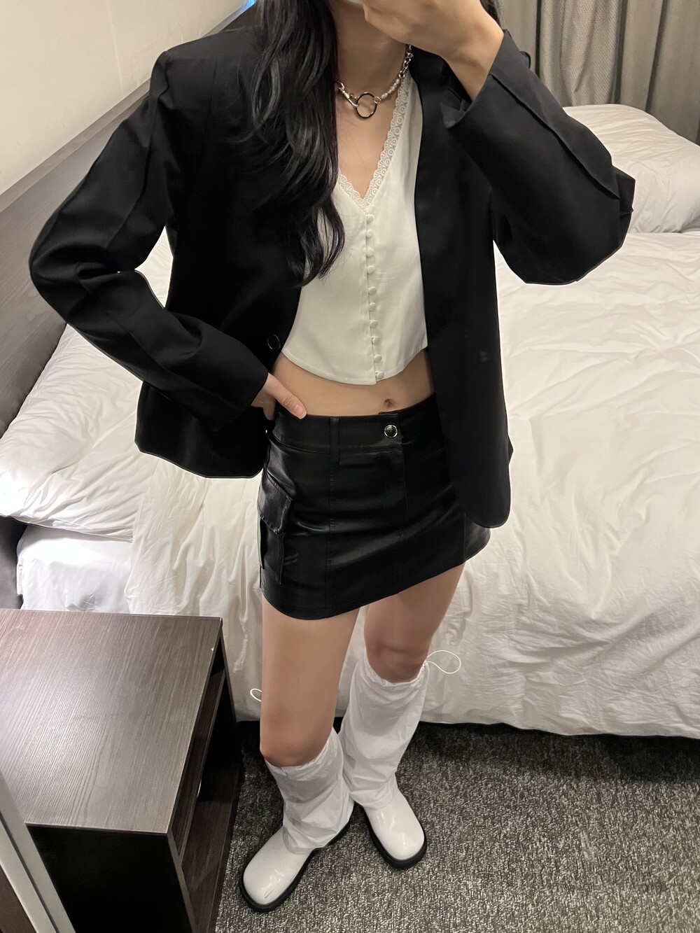 새틴블라우스와 자켓이 부착되어있습니다 :)