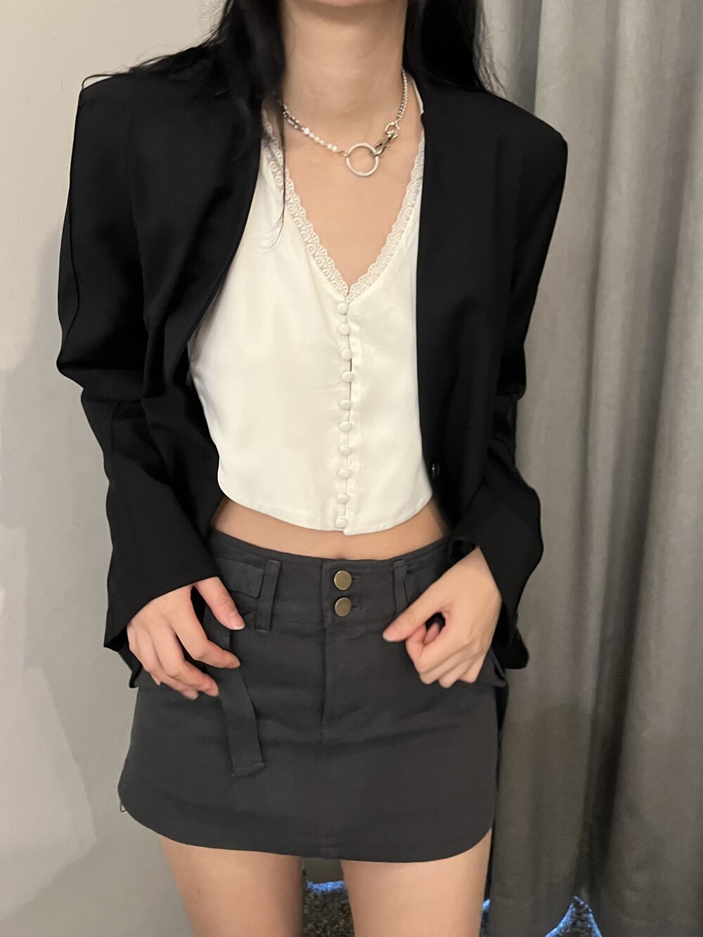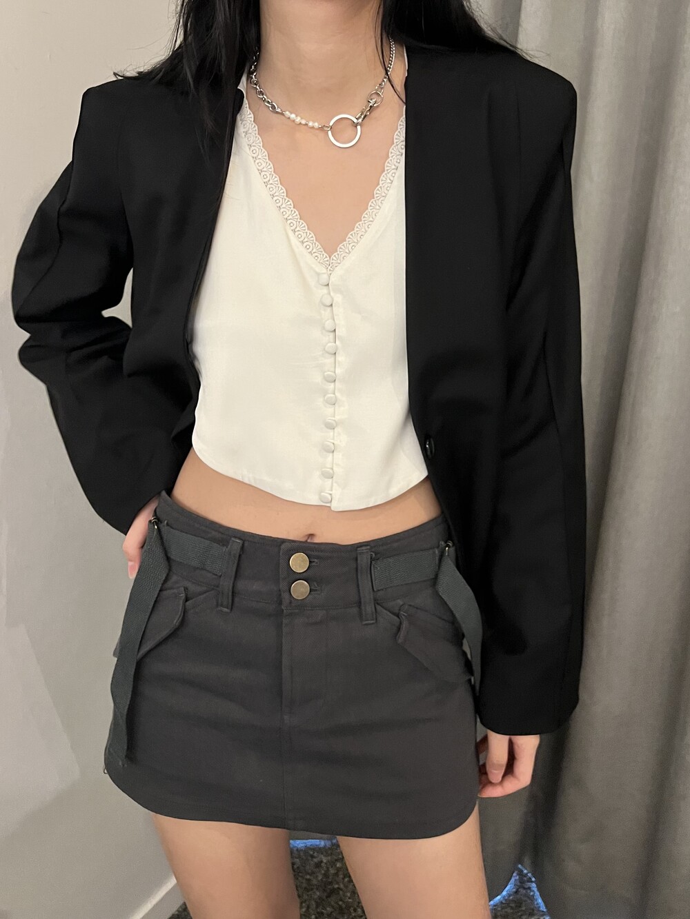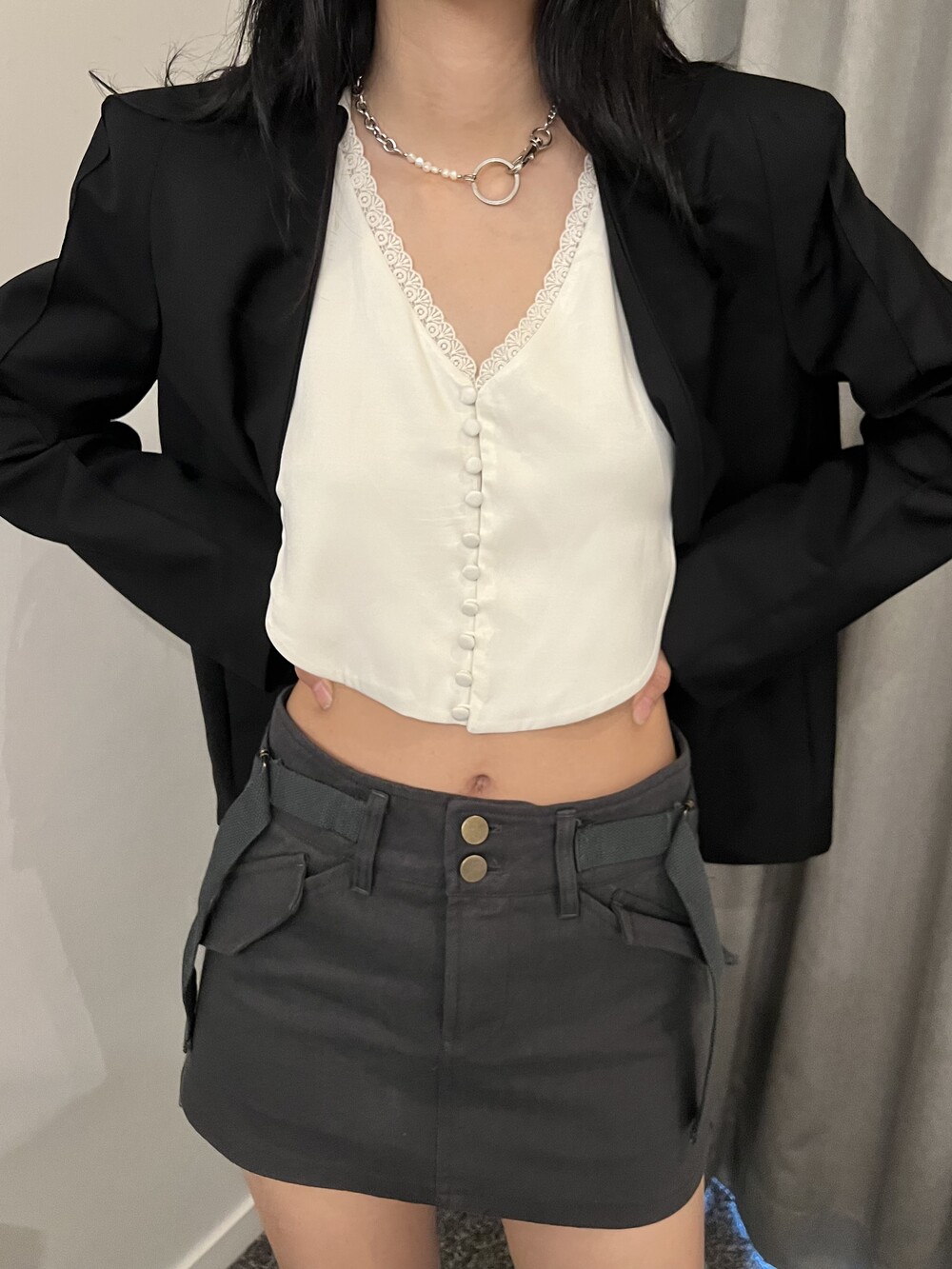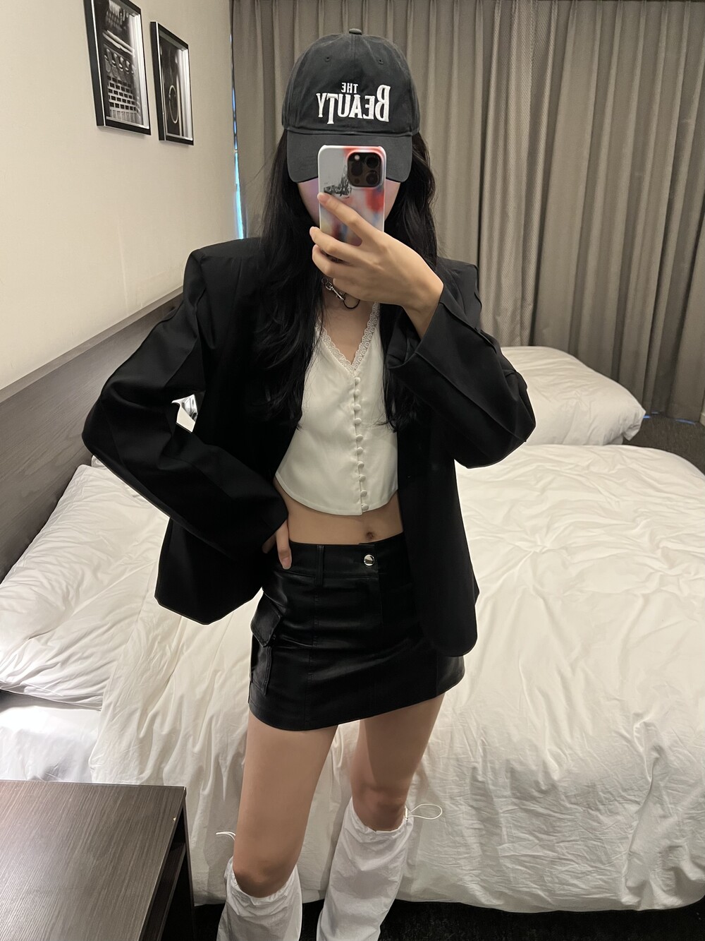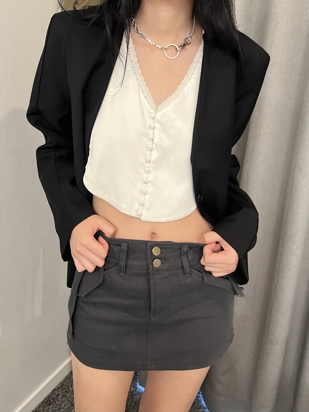 새틴블라우스와 자켓이 부착되어있습니다 :)