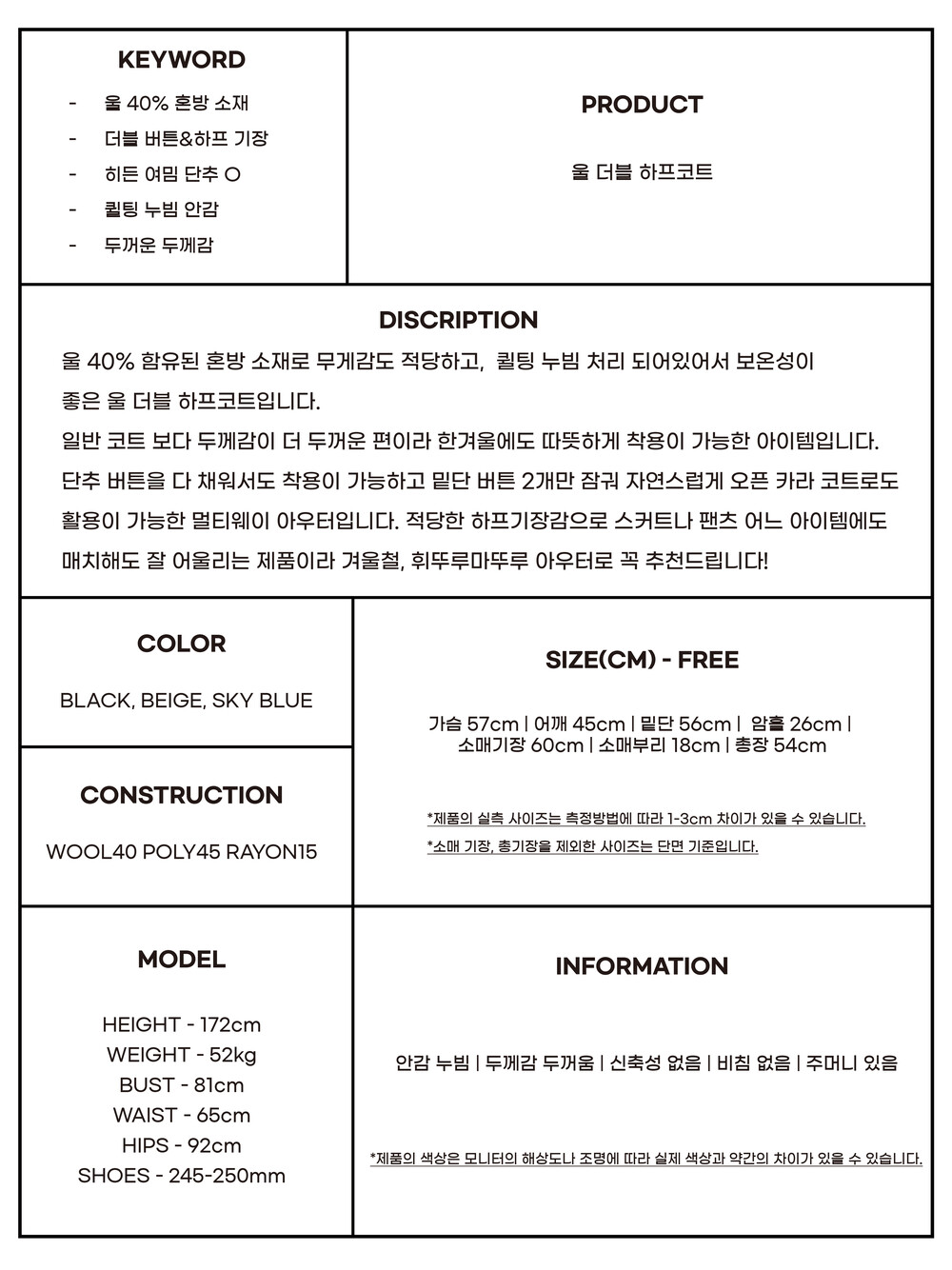WOOL DOUBLE HALF CT 울 더블 하프코트