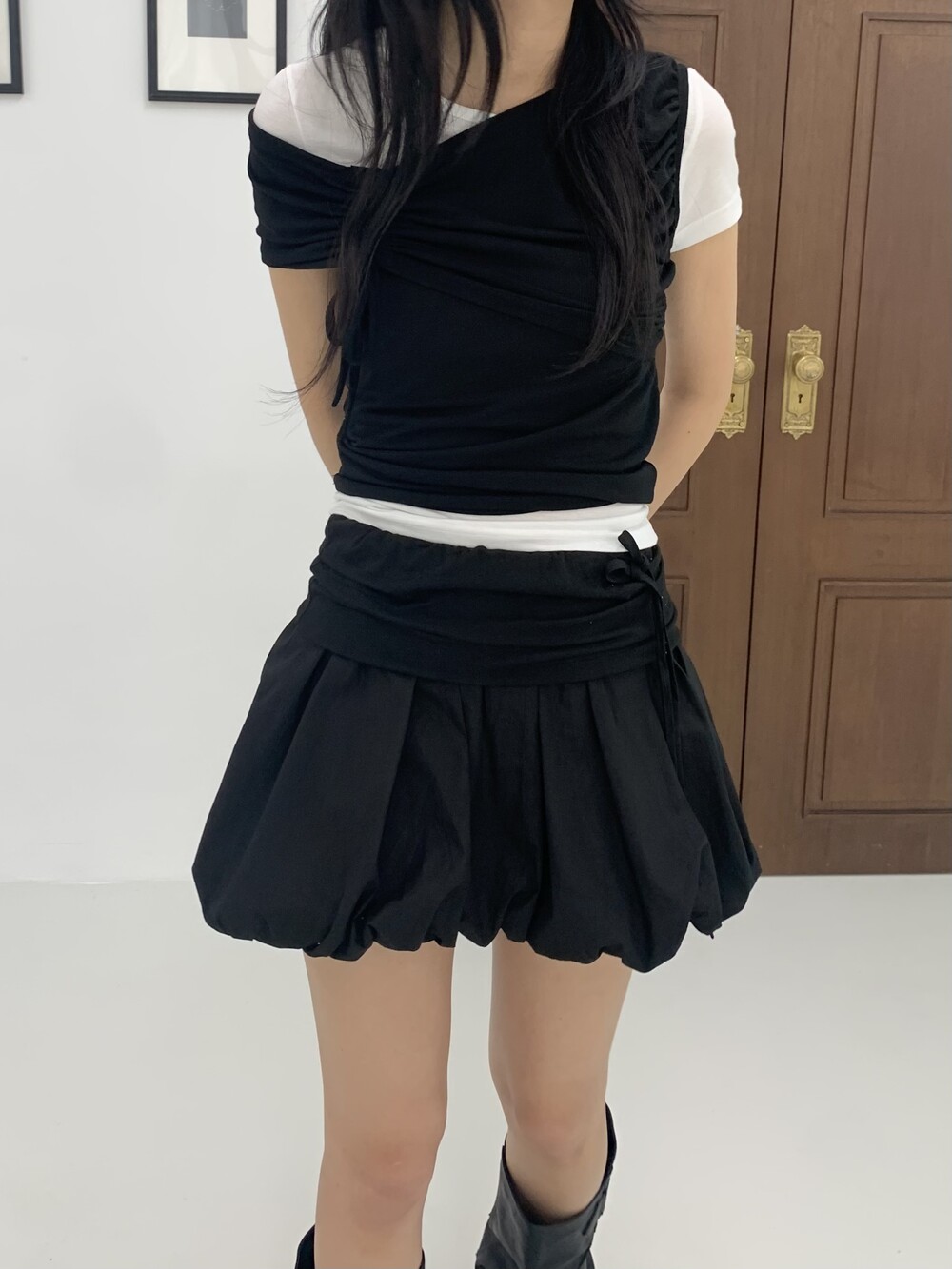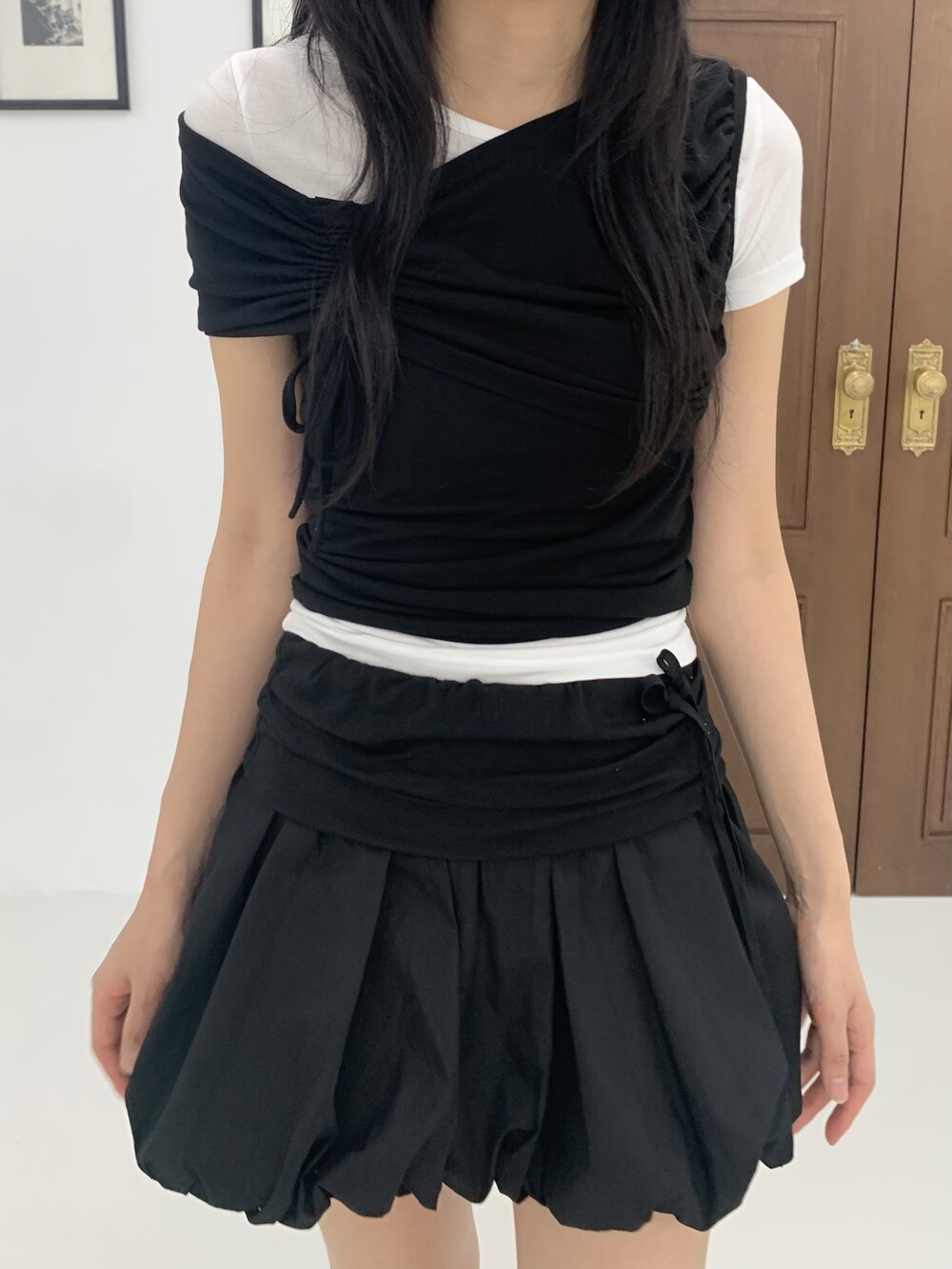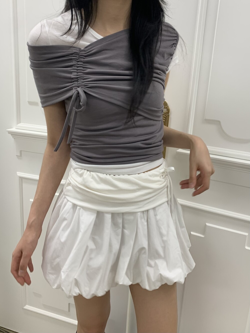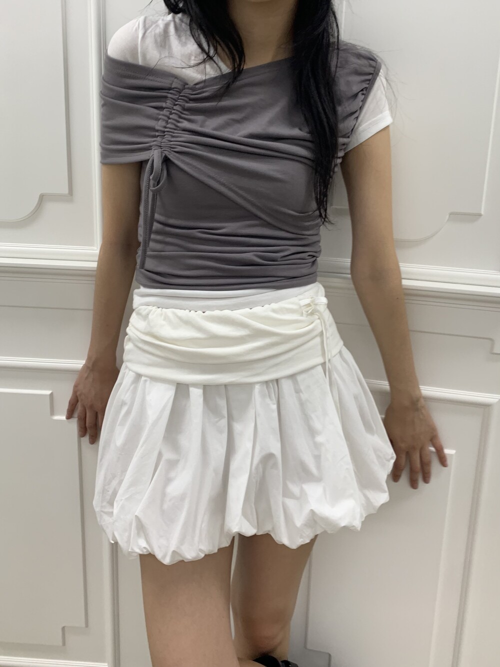 - 허리라인 셔링 레이어드 아더 원단 디테일