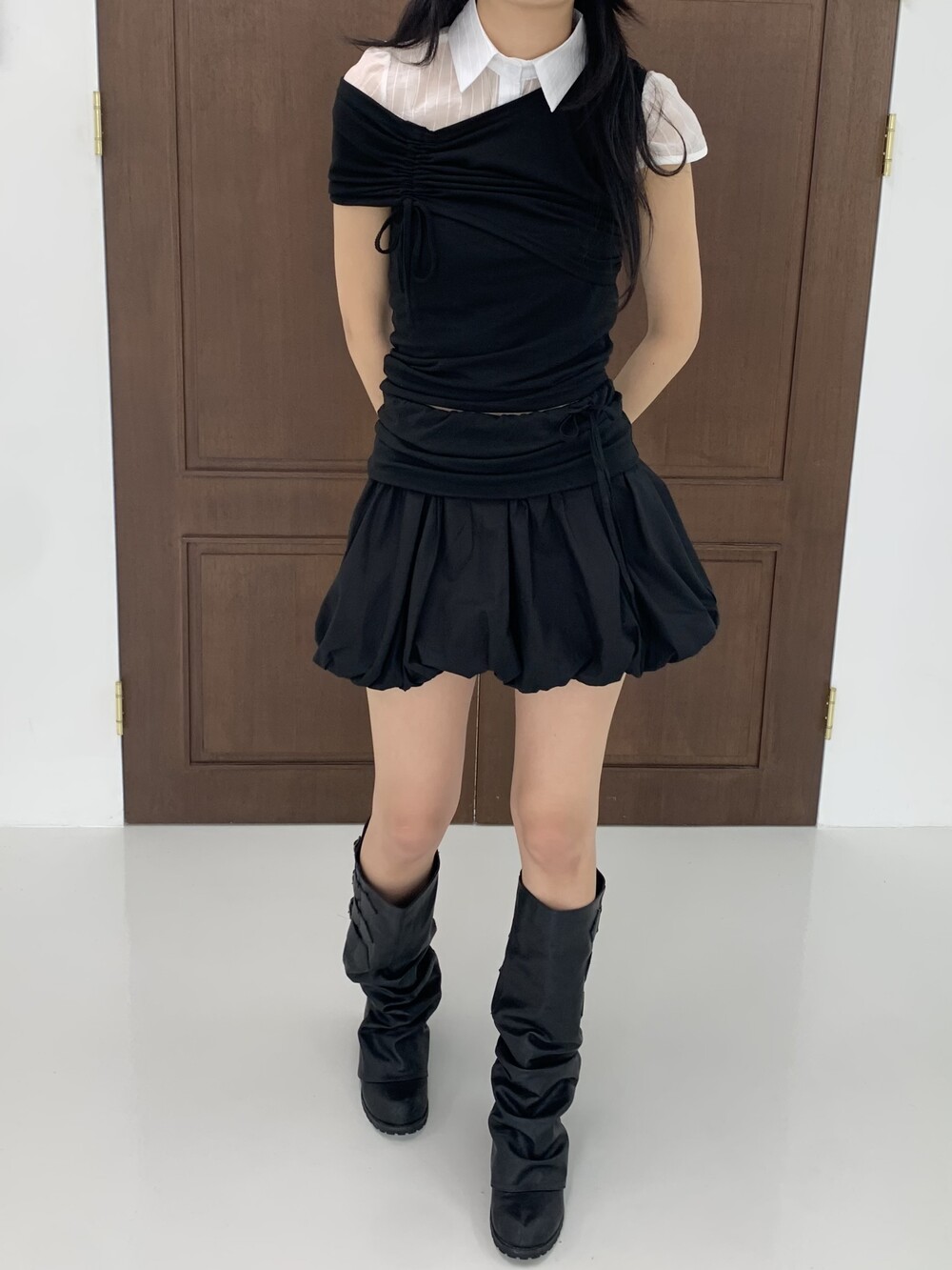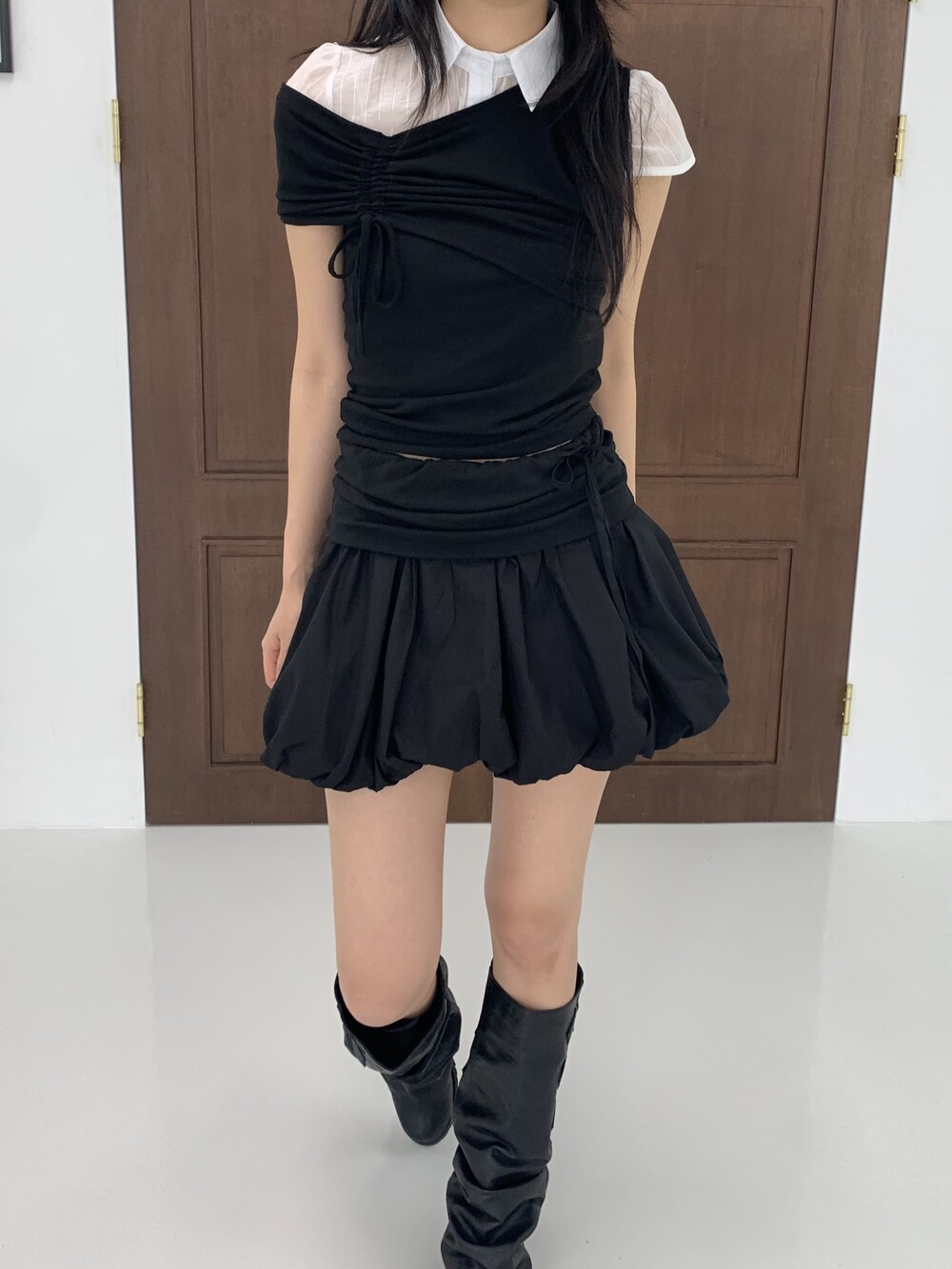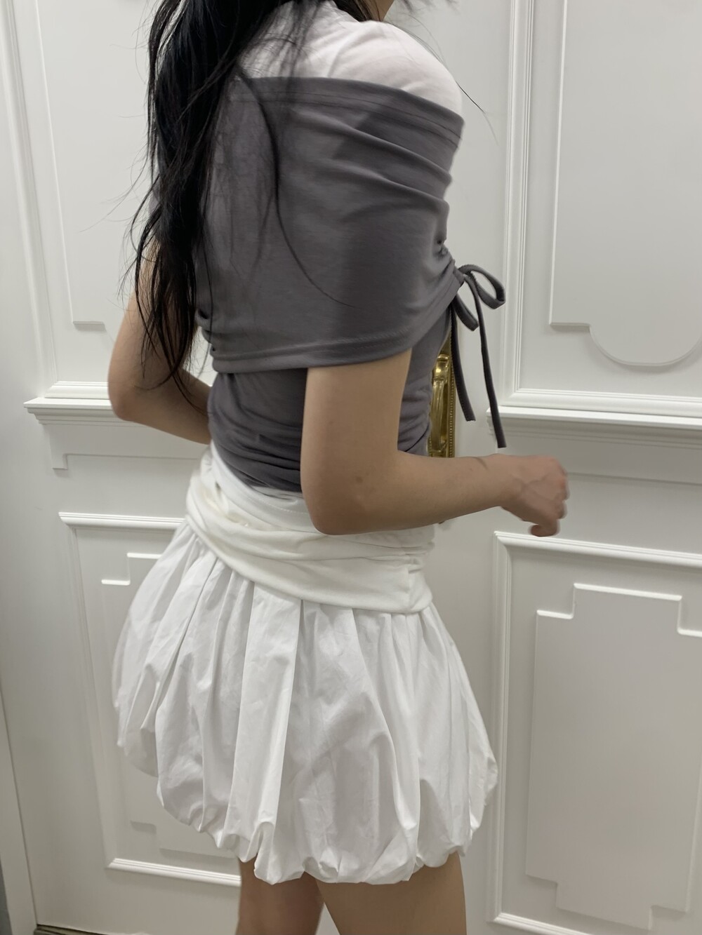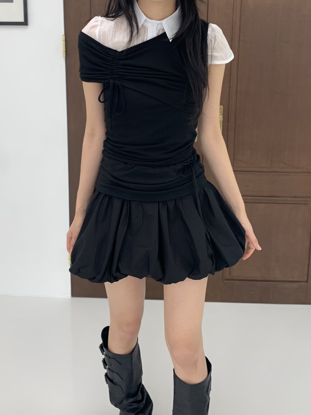 - 허리라인 셔링 레이어드 아더 원단 디테일