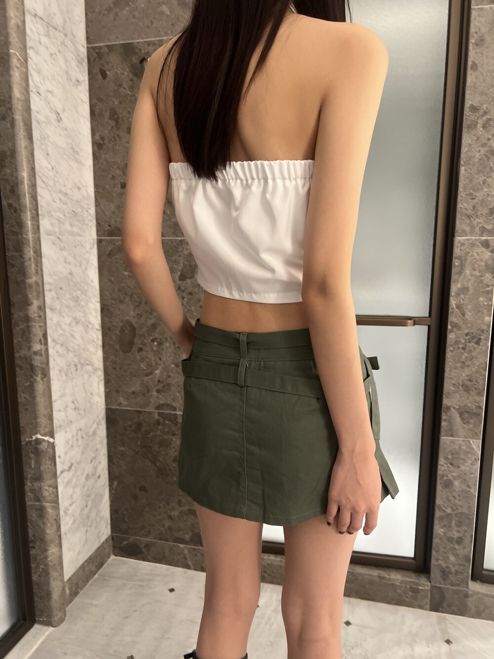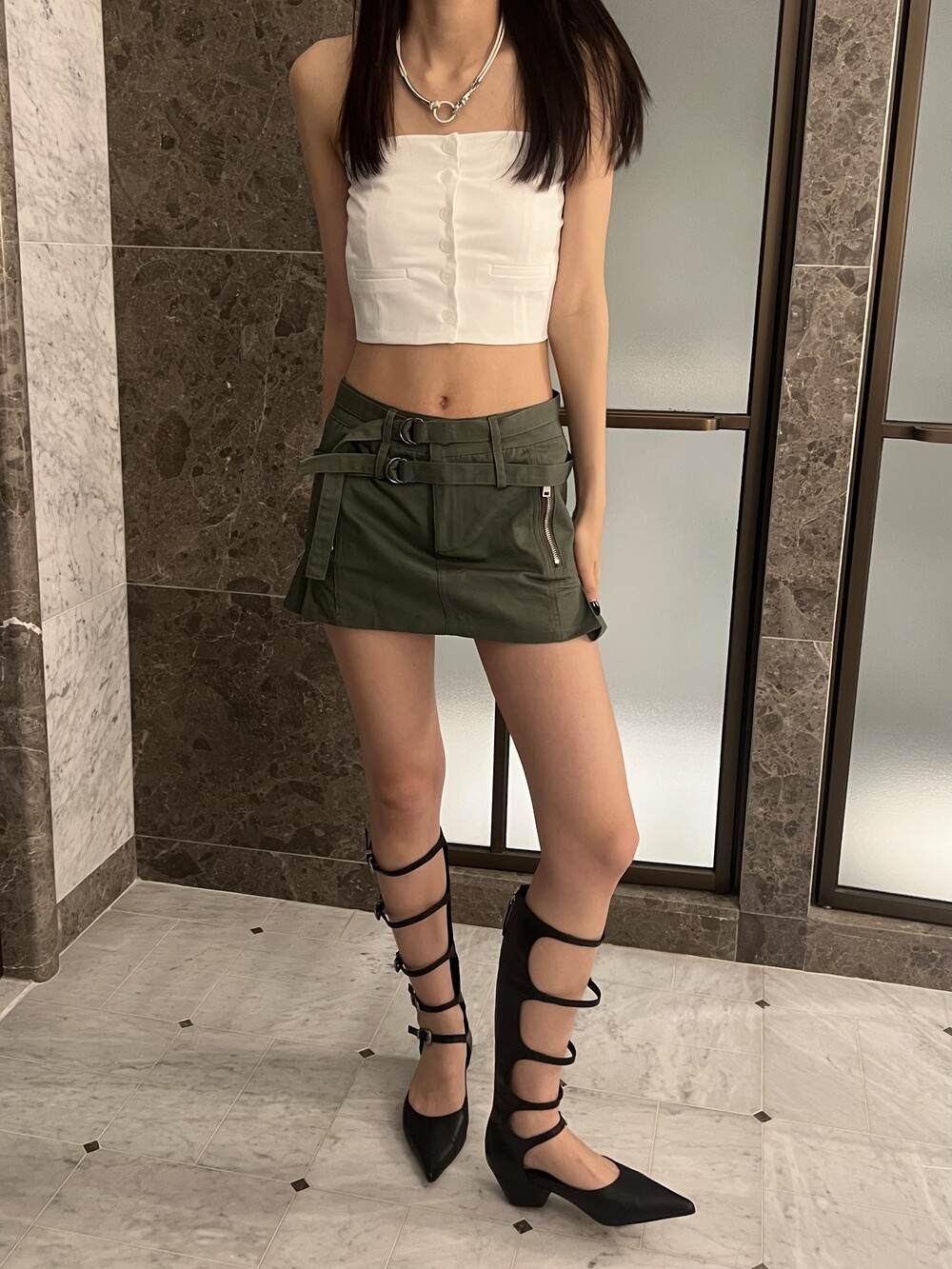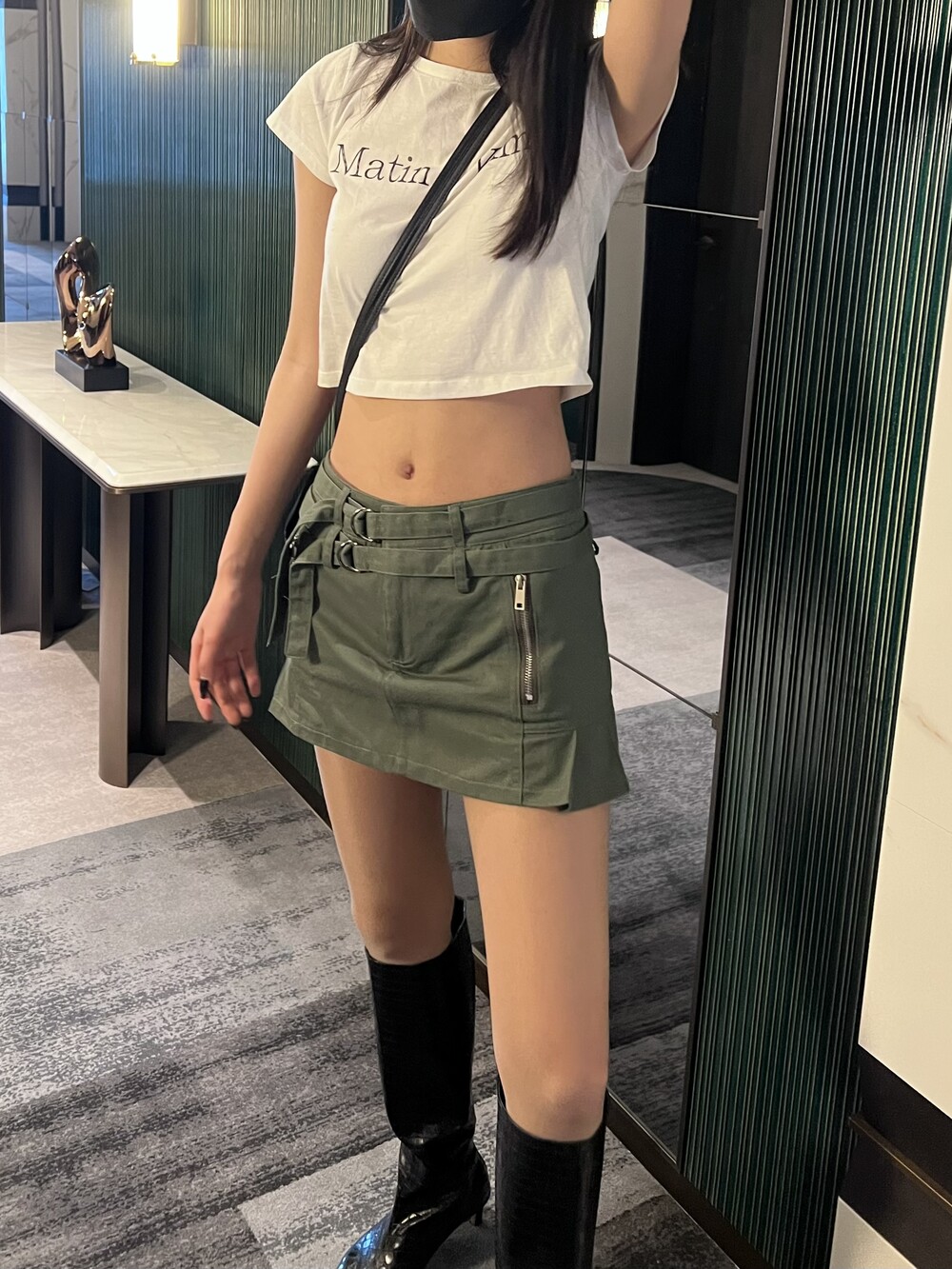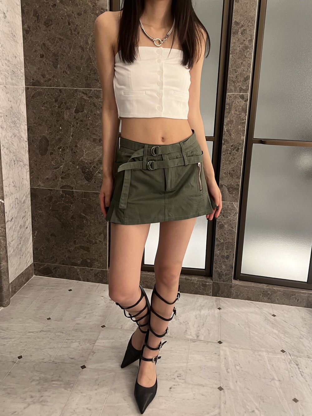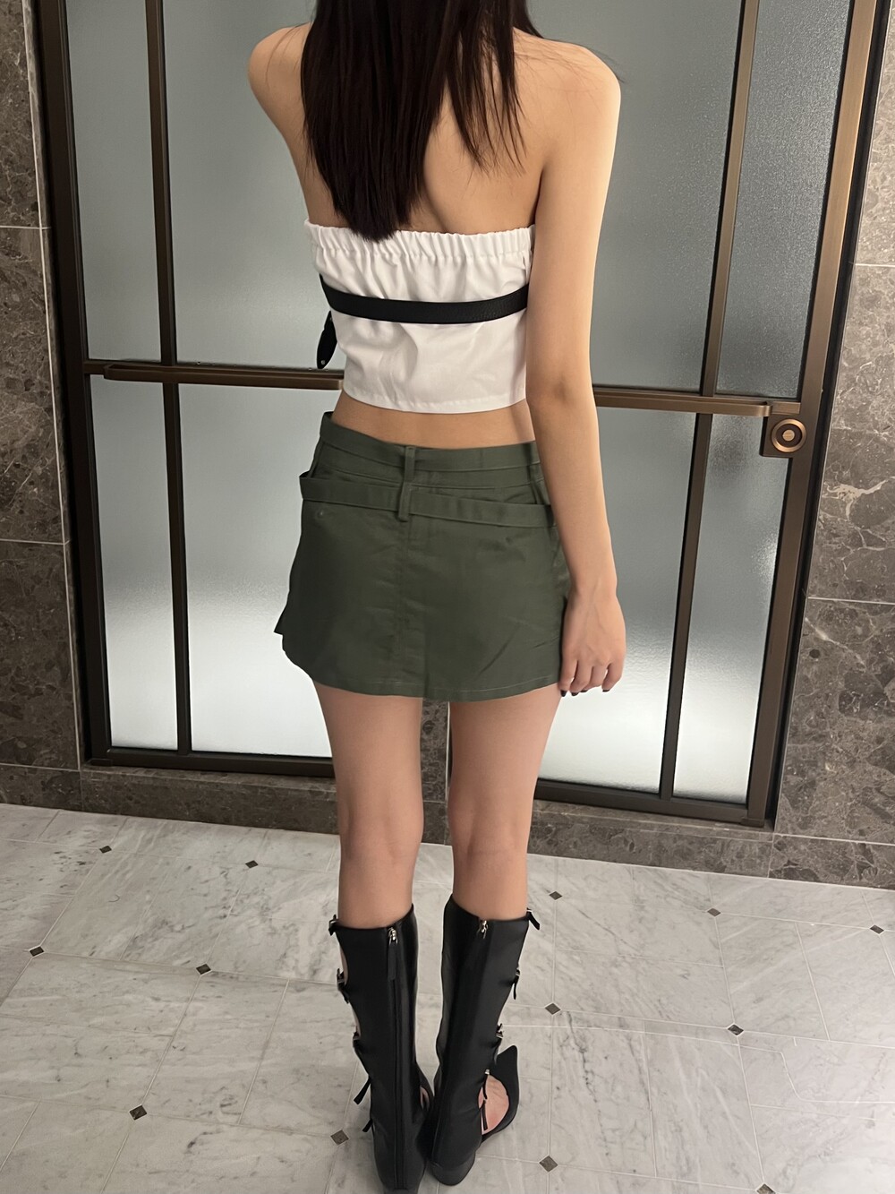 로우 웨이스트로 투벨트 디자인의 스커트입니다.