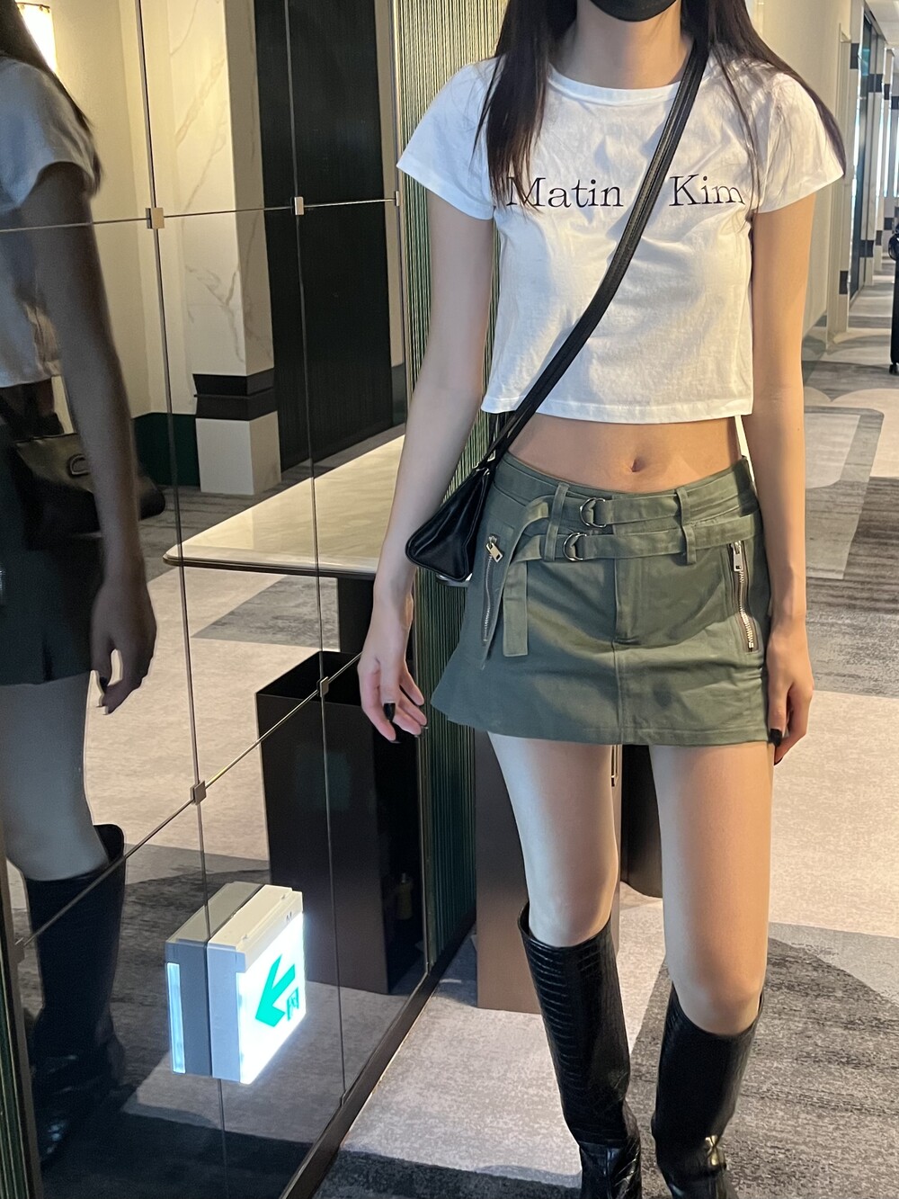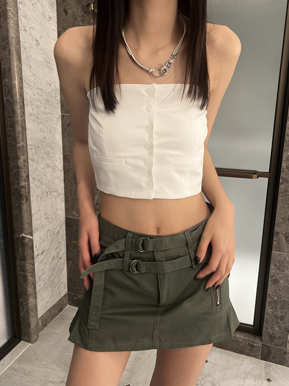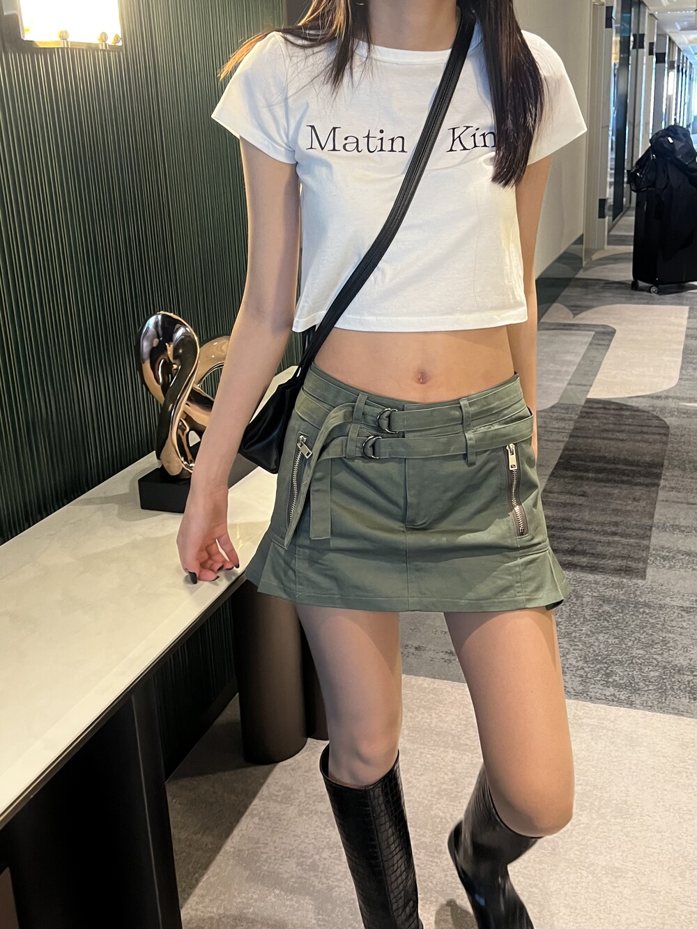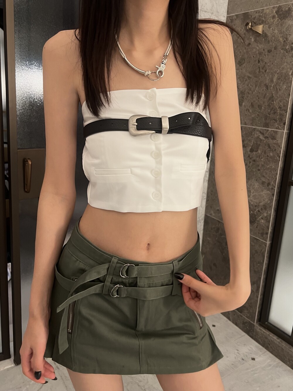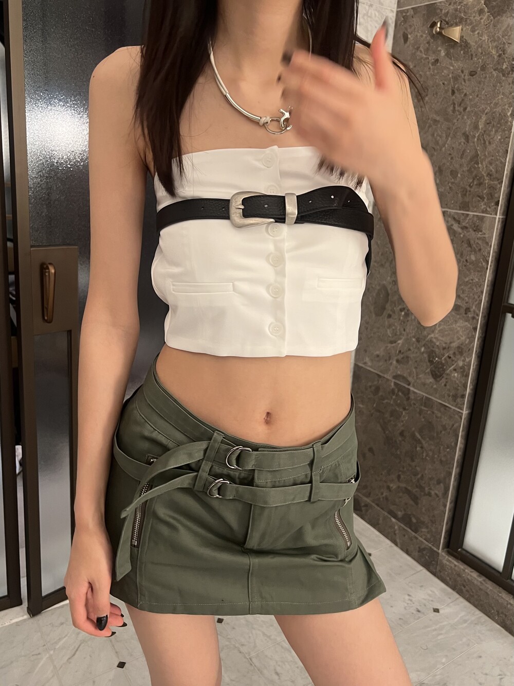 로우 웨이스트로 투벨트 디자인의 스커트입니다.