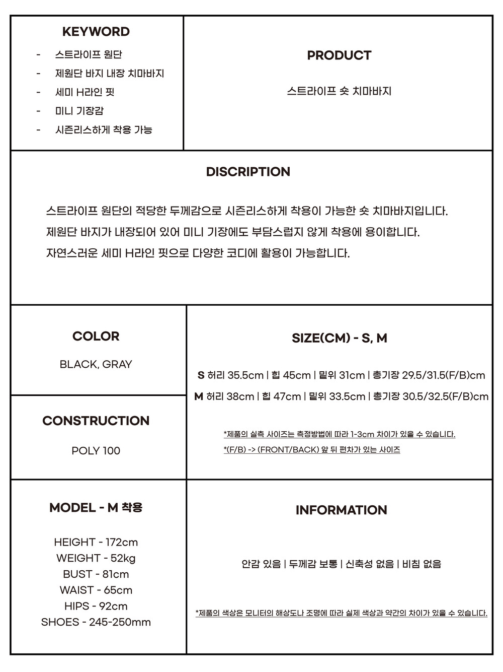 STRIPE SHORT PTSK(2 COLOR) 스트라이프 숏치마바지