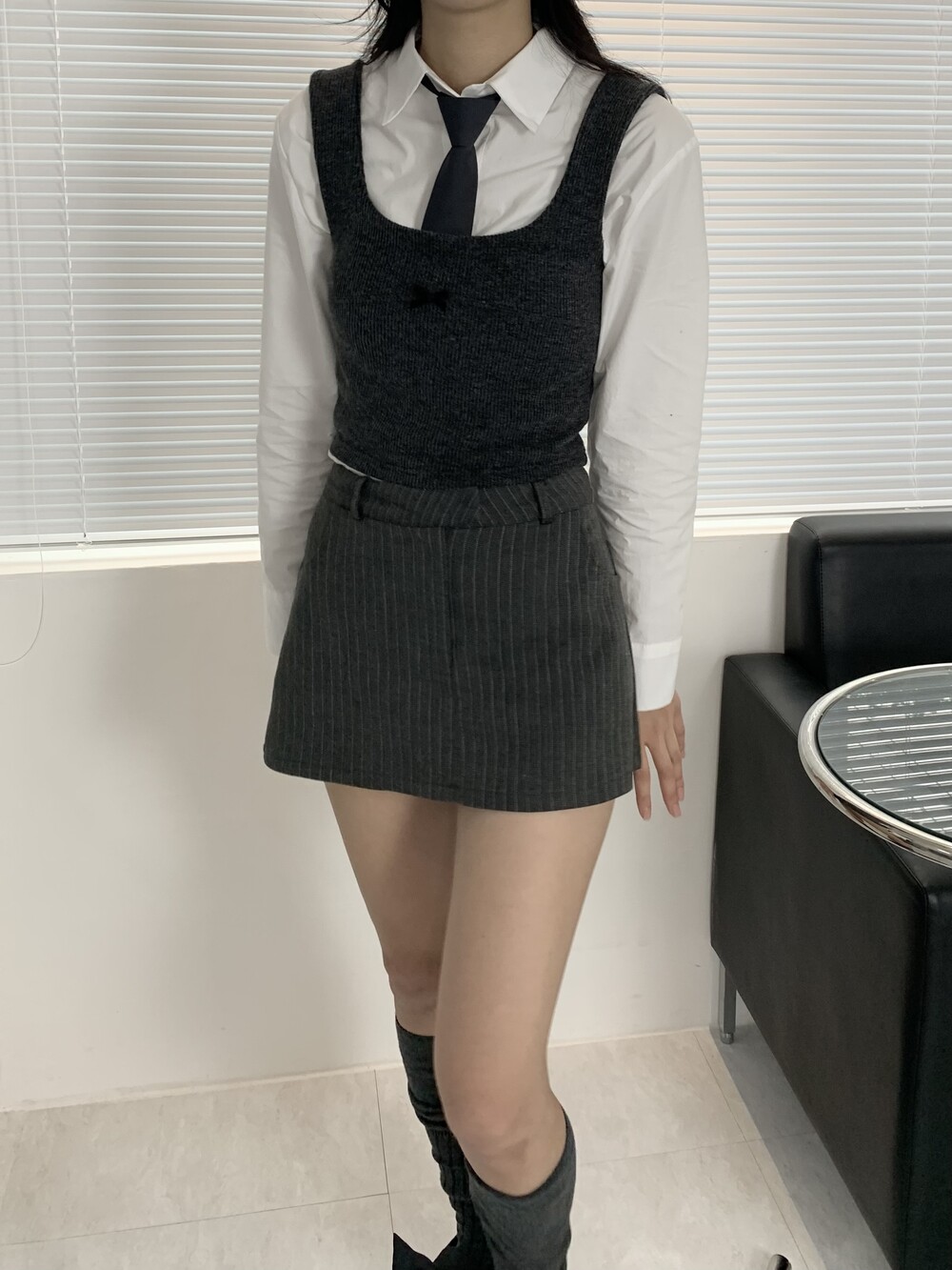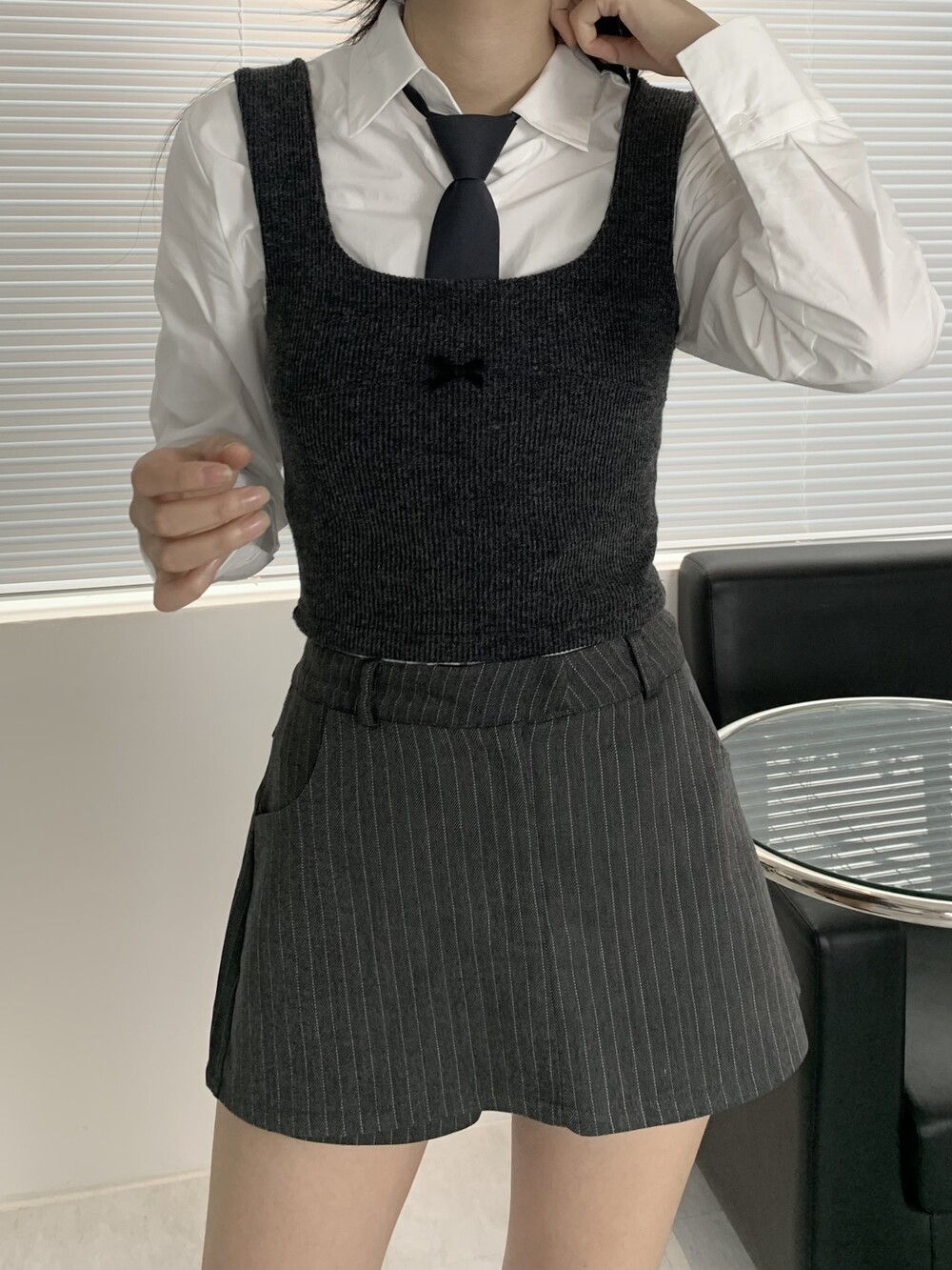 -RIBBON KNIT BUSTIER(CHARCOAL)