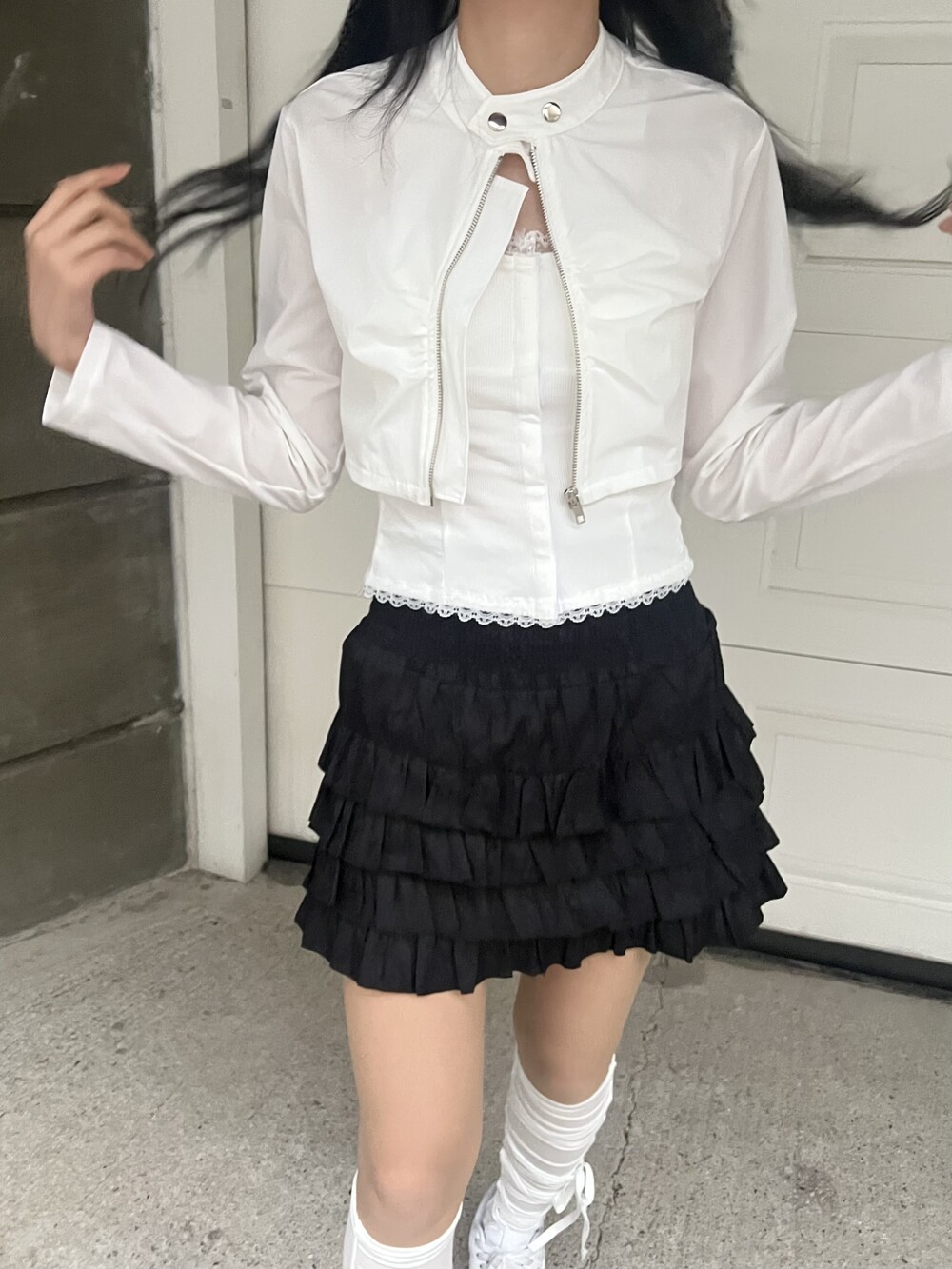shirring nylon crop jacket(2 color)