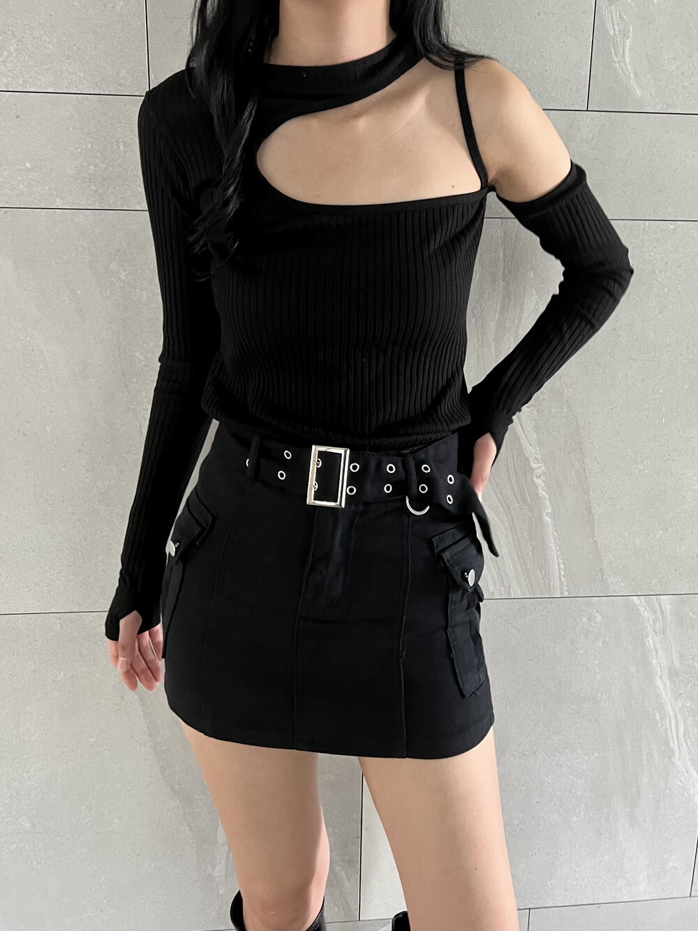 L 허리 35 힙 46 밑단 47 총장 35