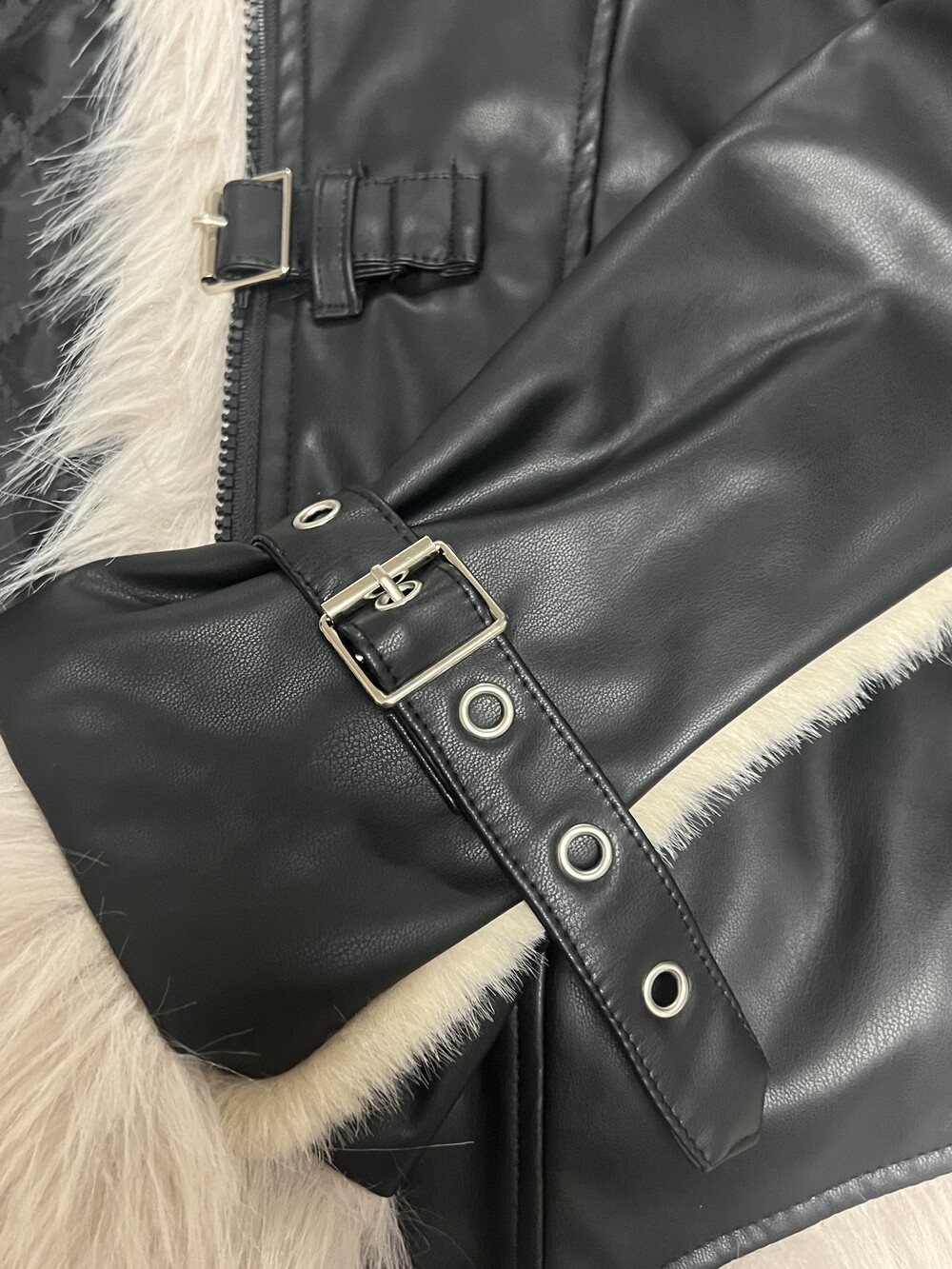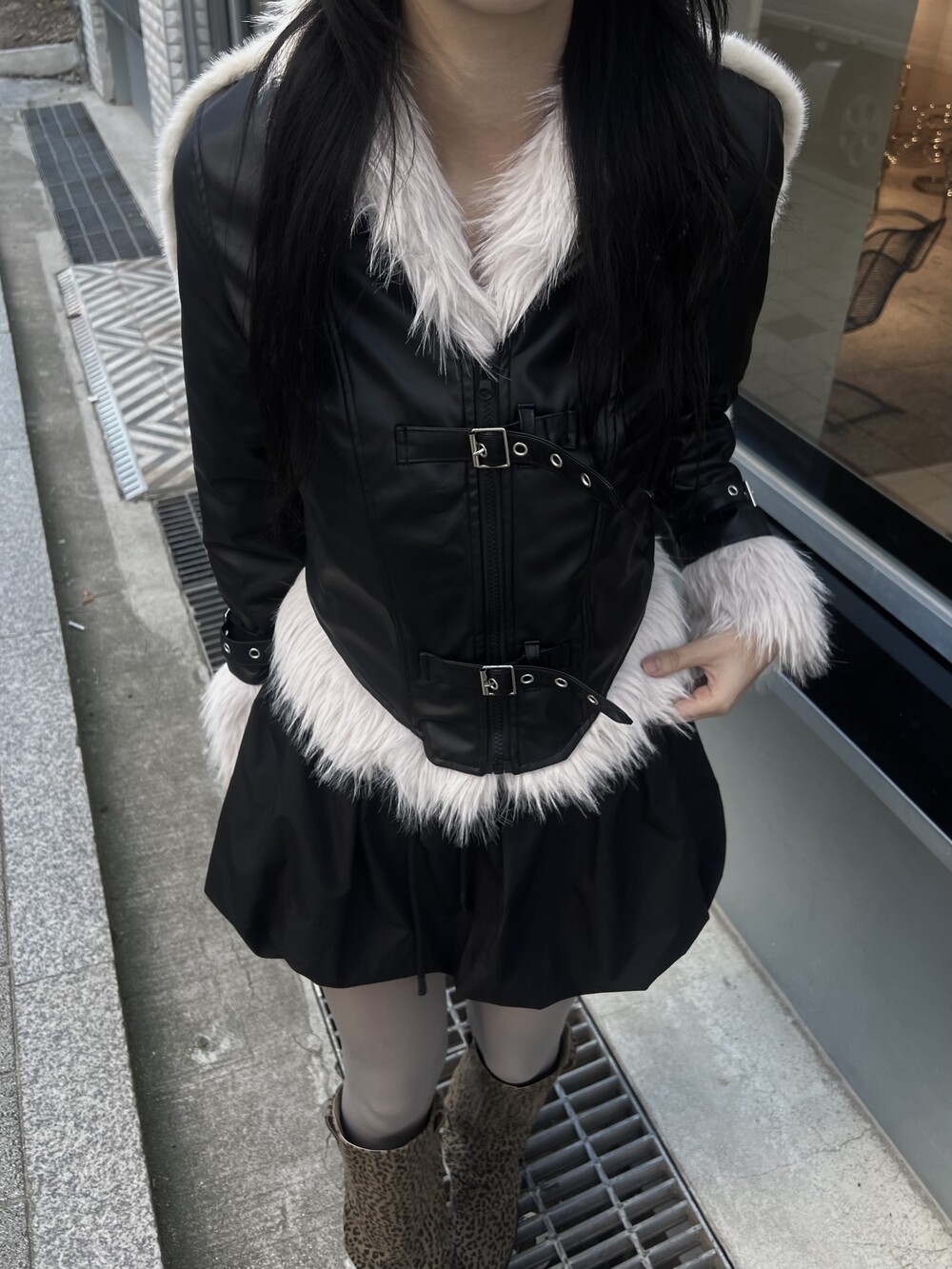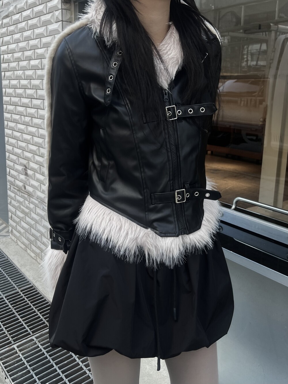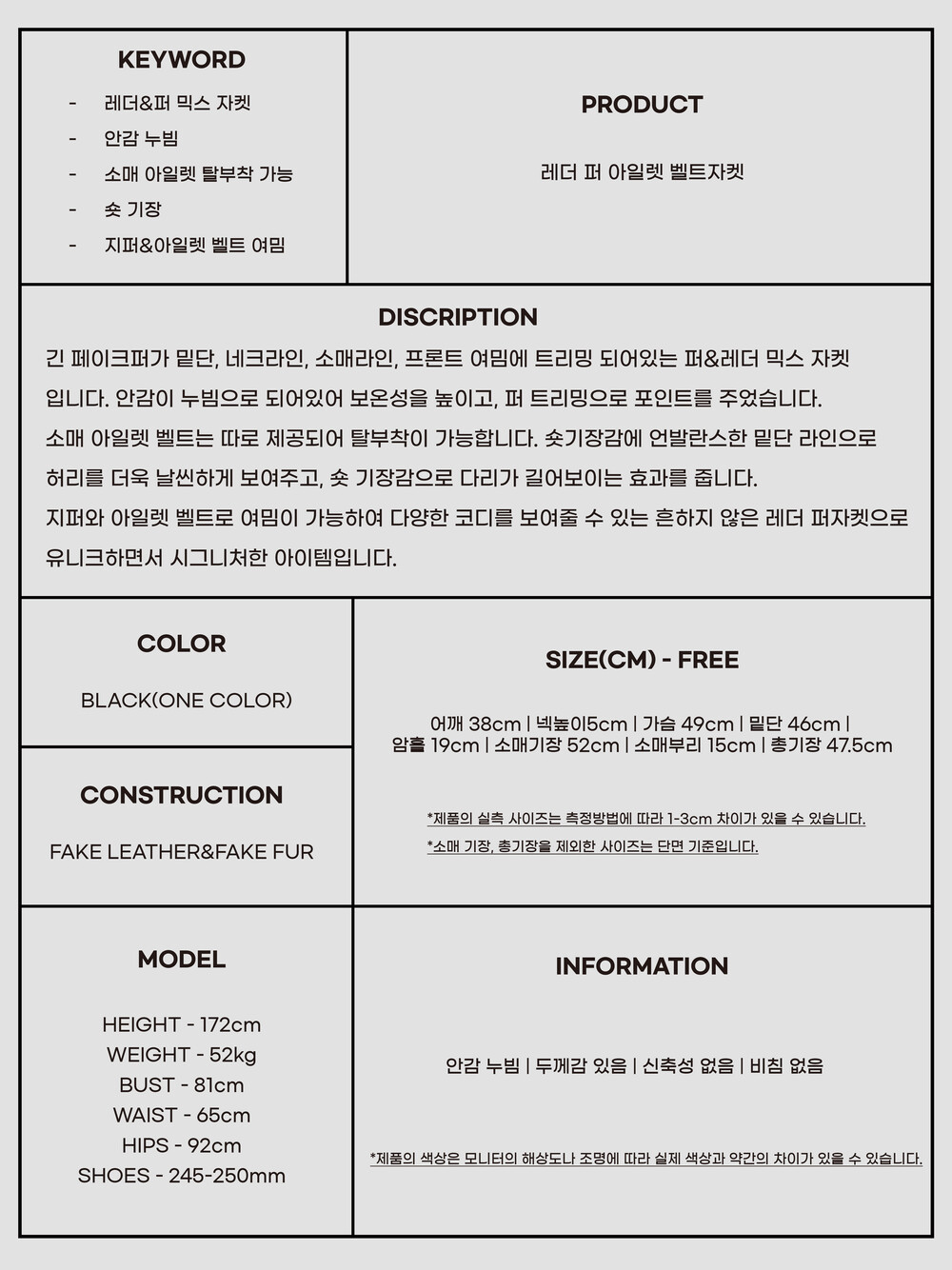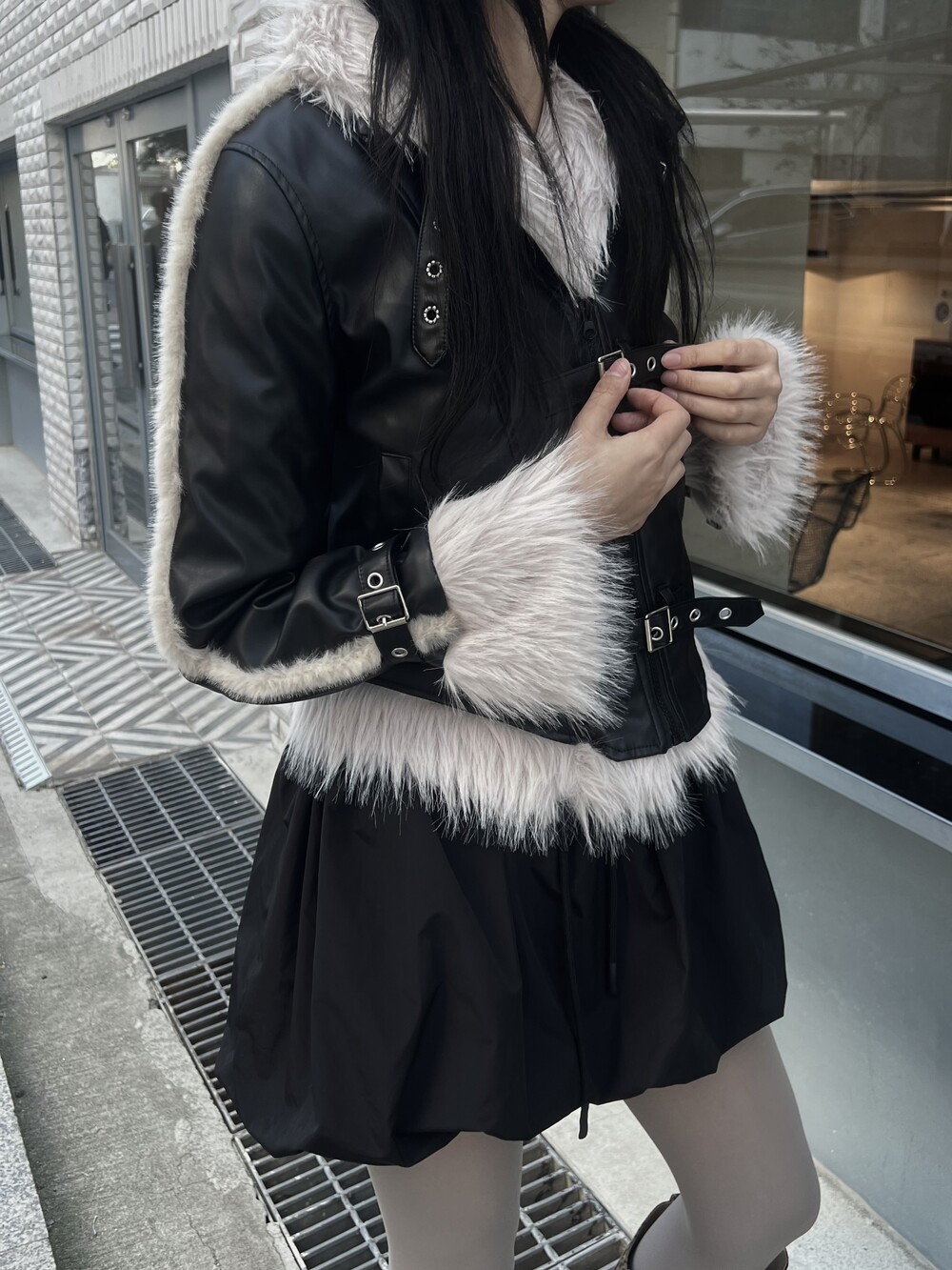 LEATHER FUR EYELET JK 레더 퍼 아일렛 벨트자켓