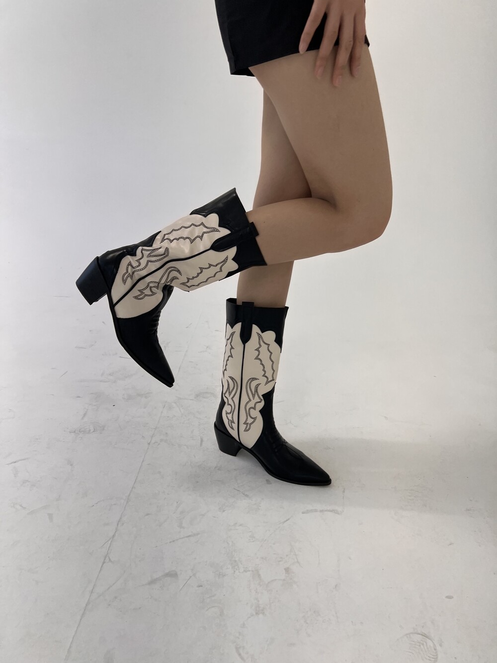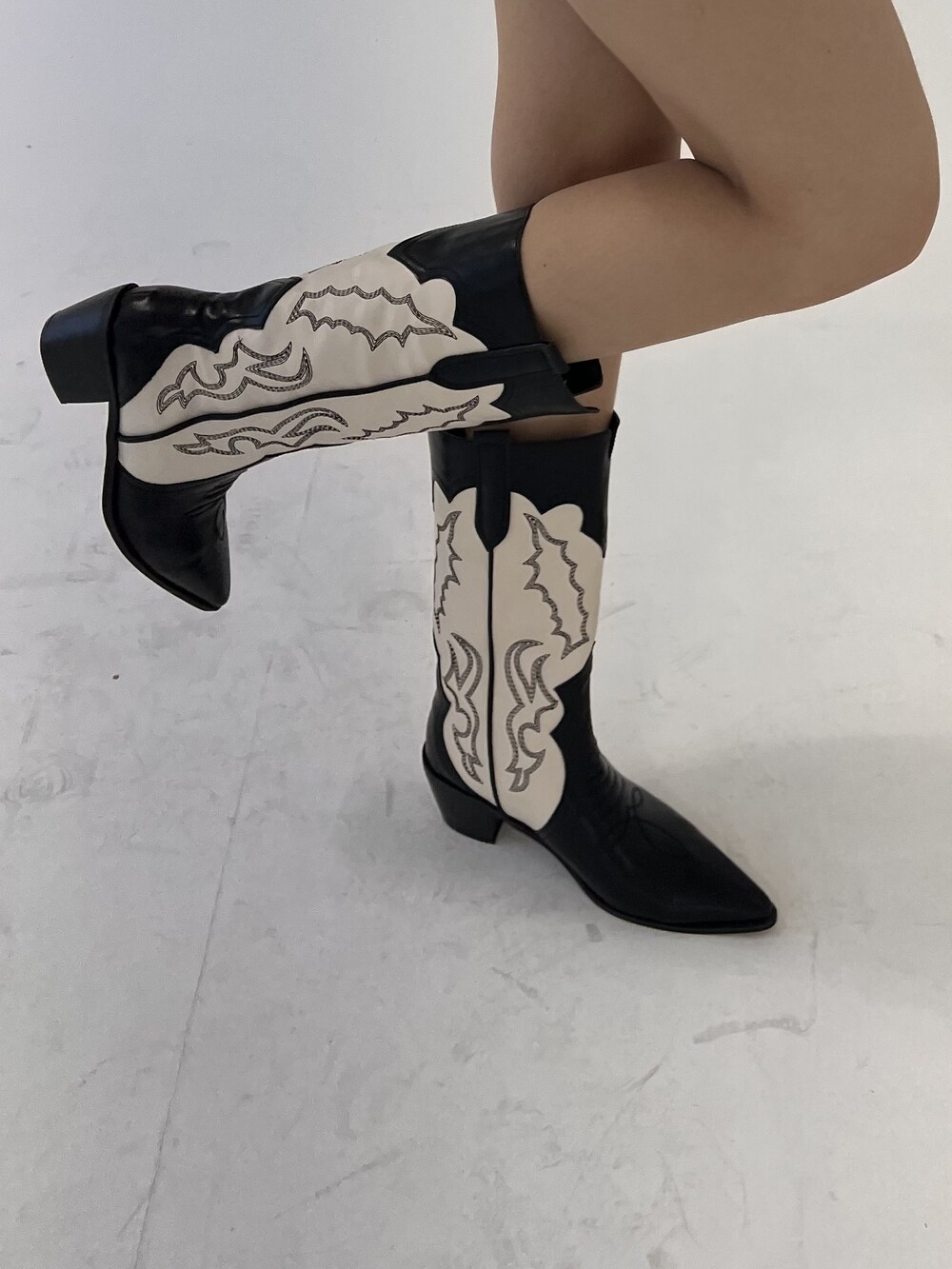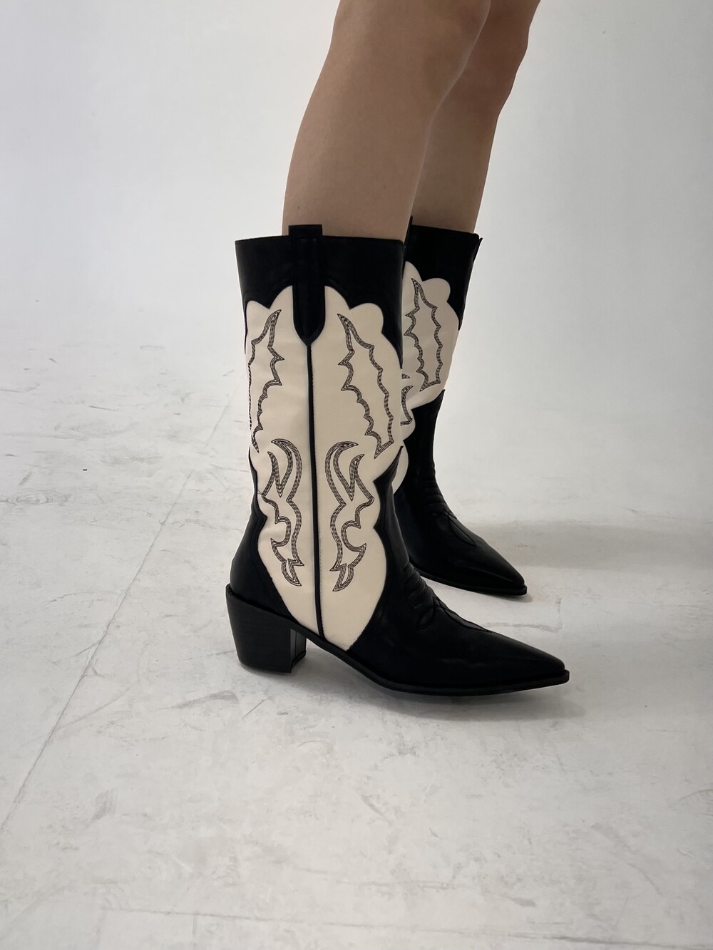 stitch western middle boots