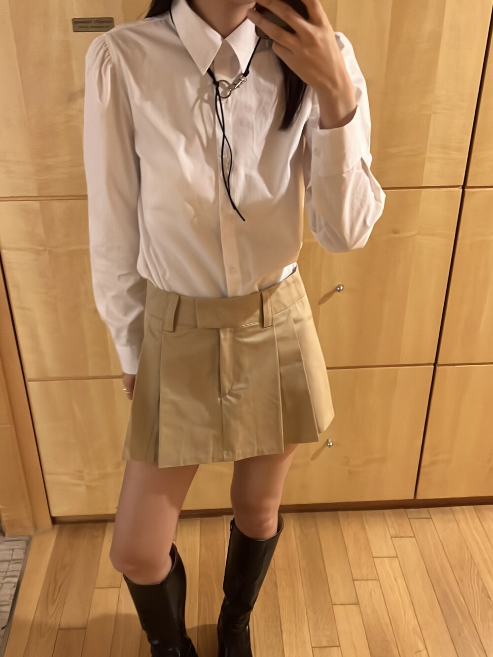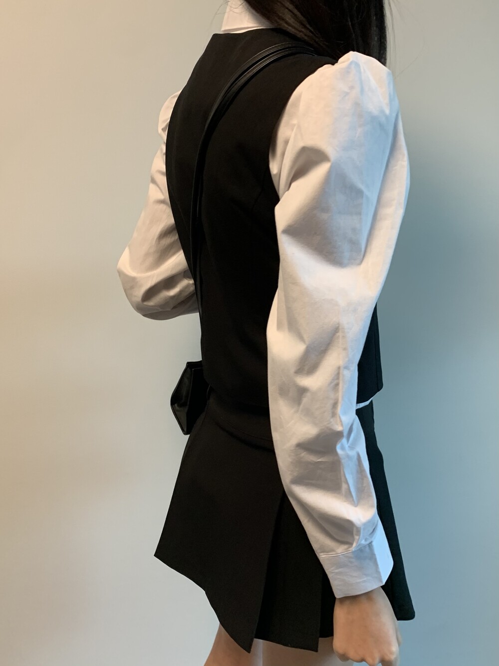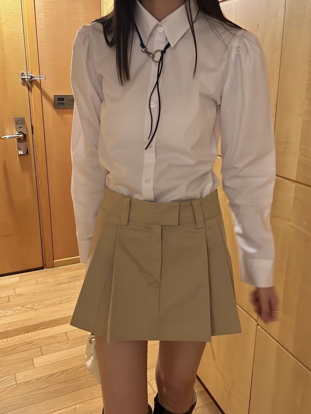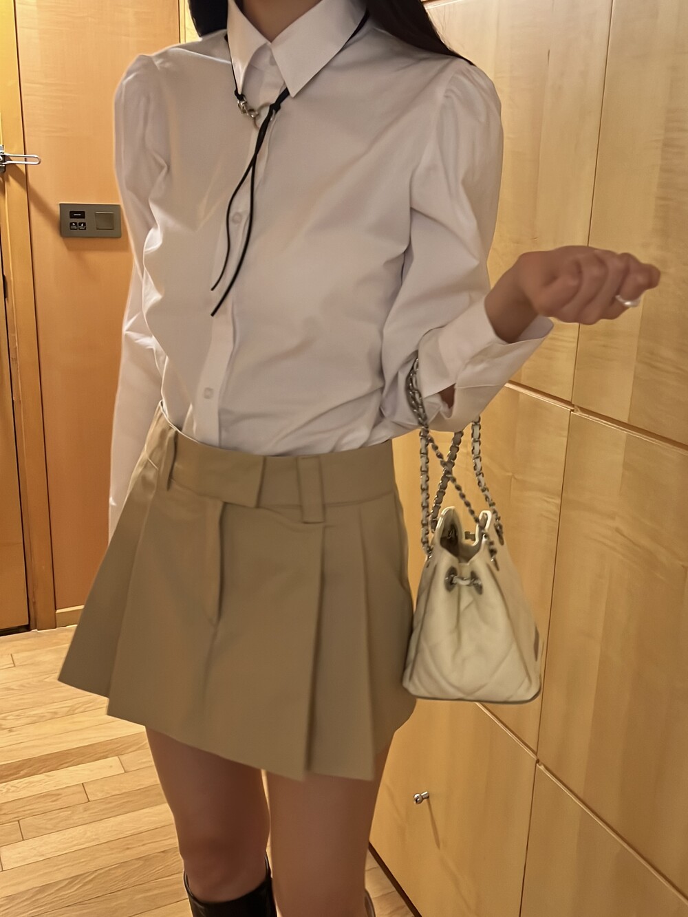 과하지 않은 어깨 퍼프 디테일의 셔츠입니다.