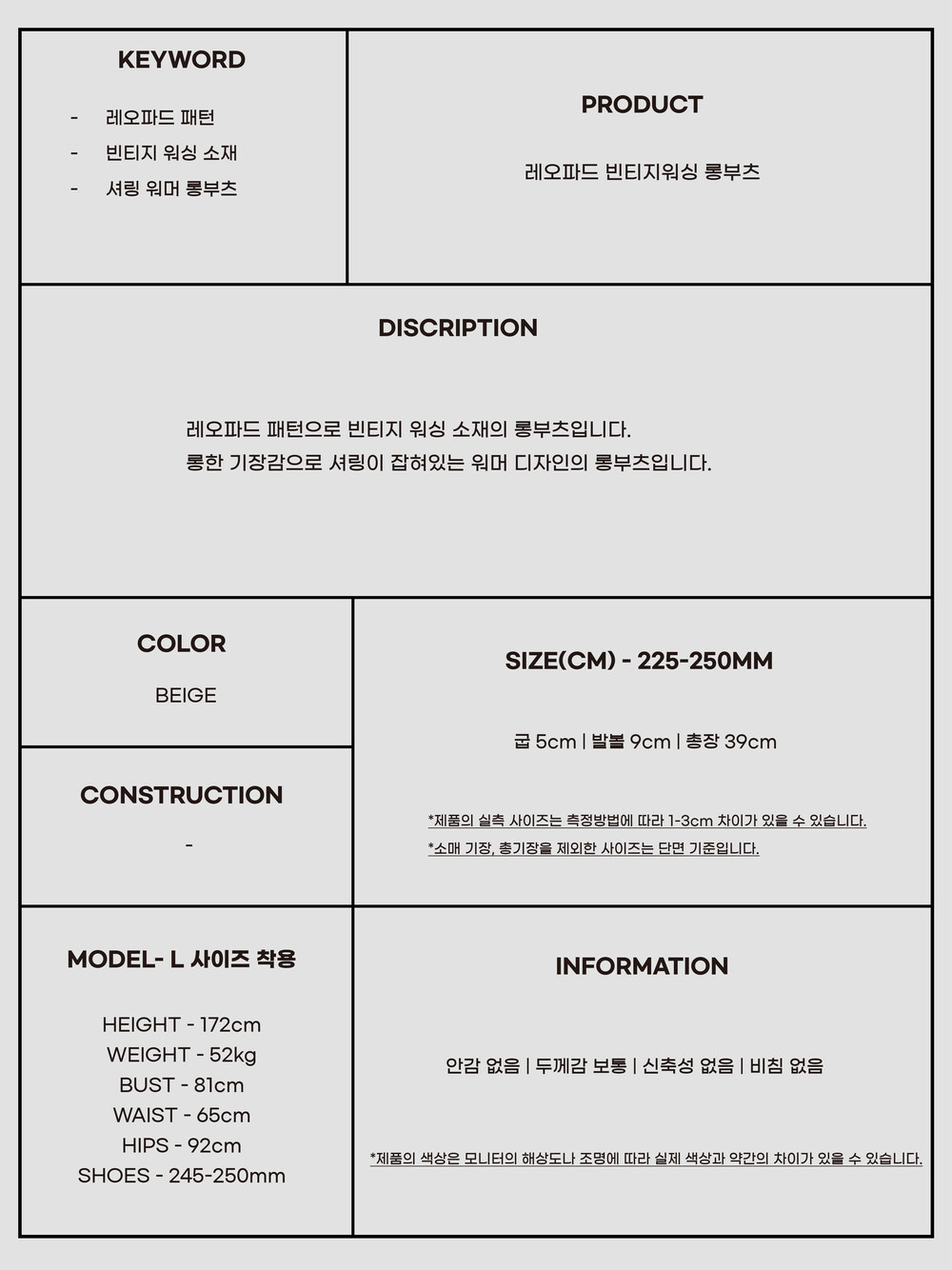LEOPARD WASHING LONGBOOTS 레오파드 빈티지워싱 롱부츠