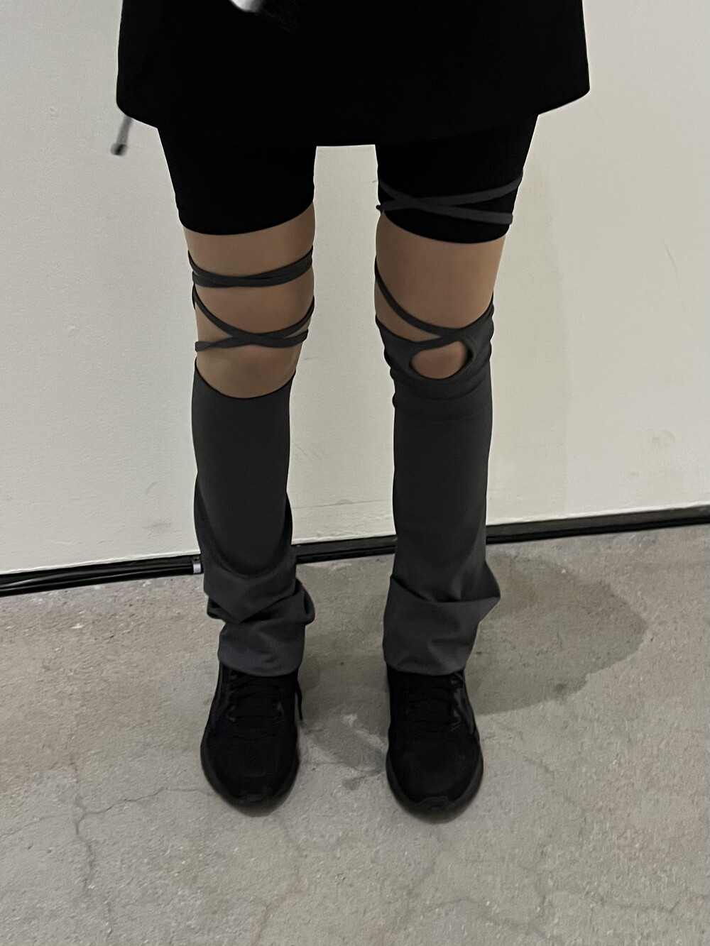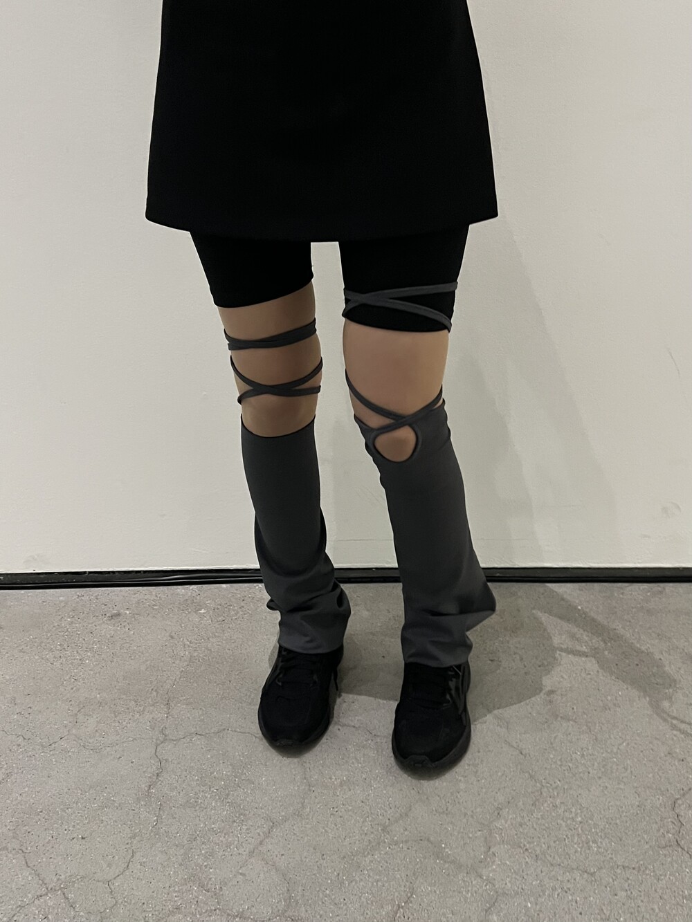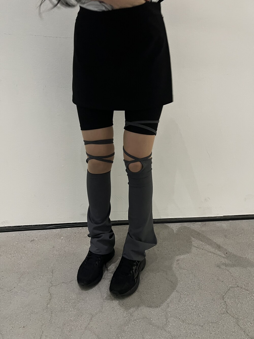 967. unbal strap leg warmer
