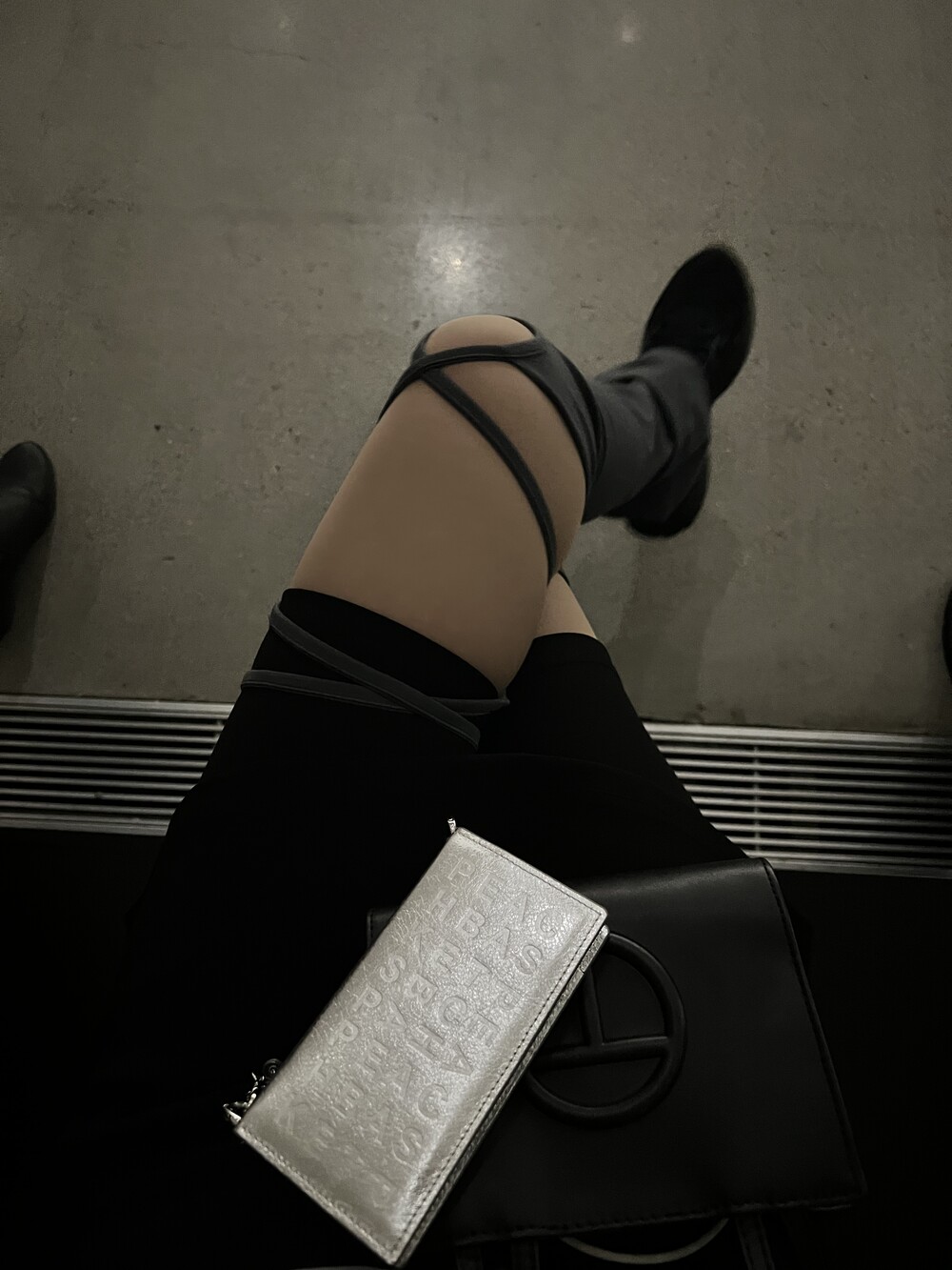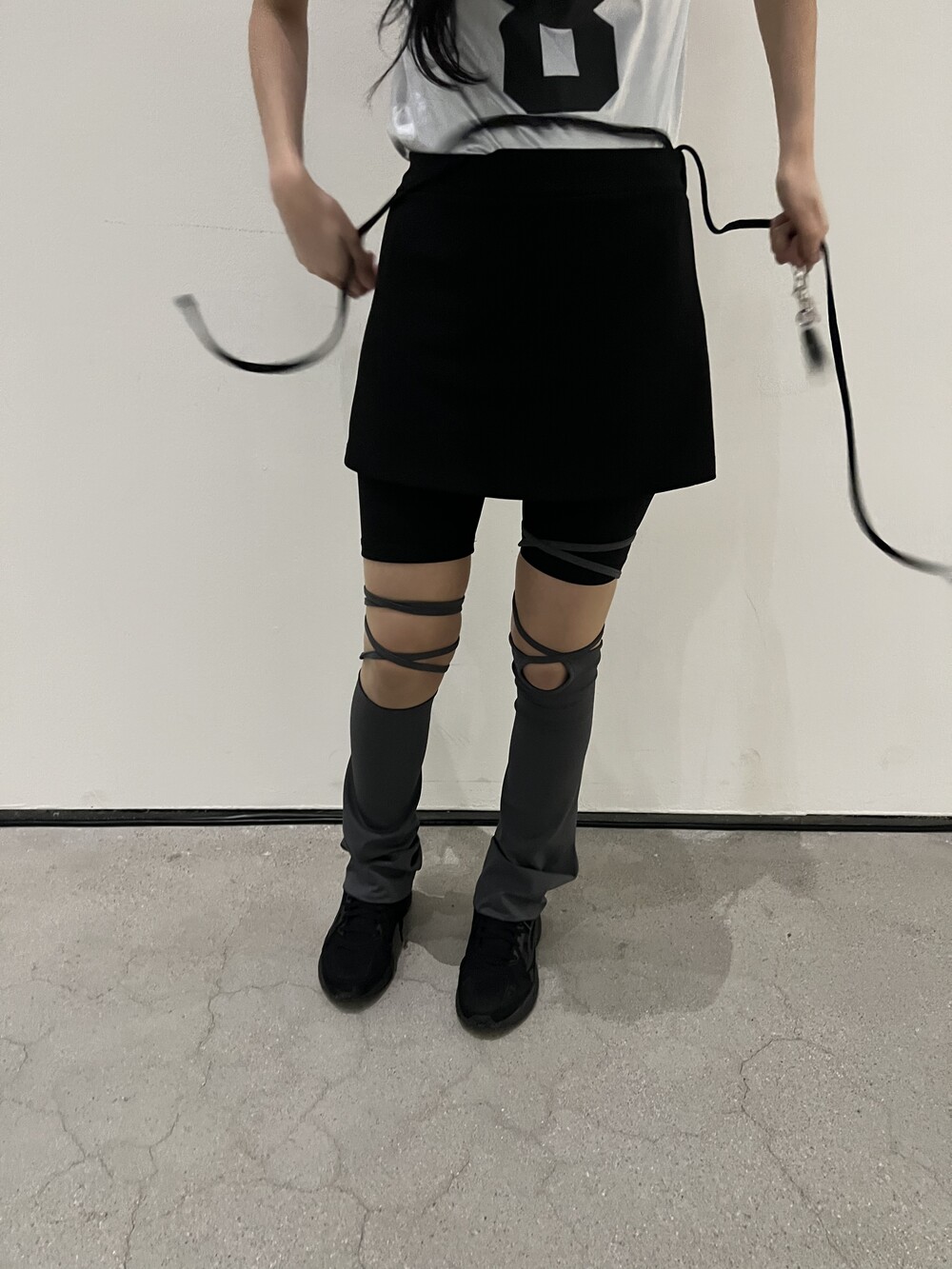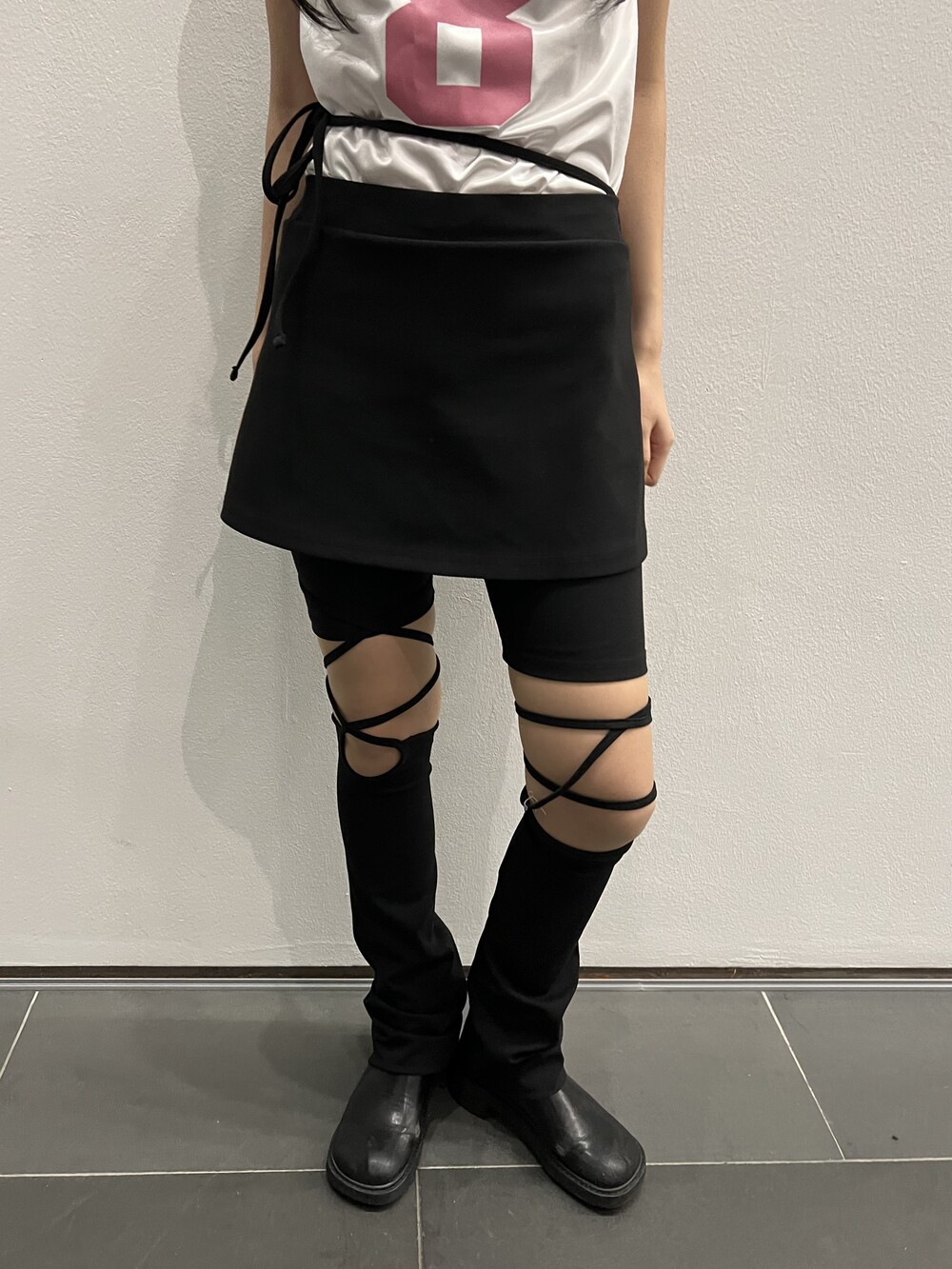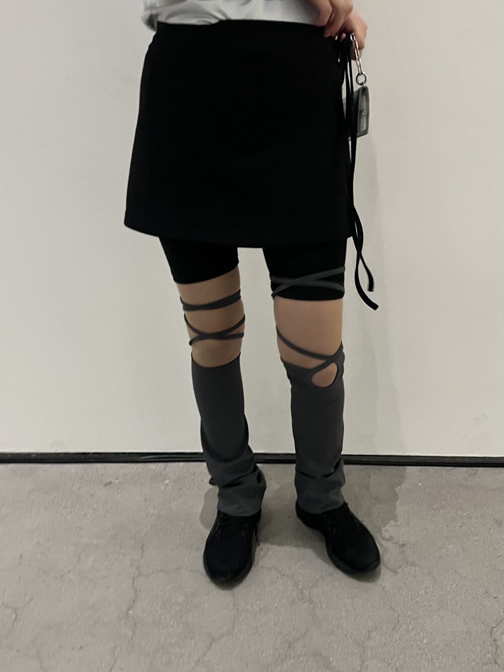 967. unbal strap leg warmer