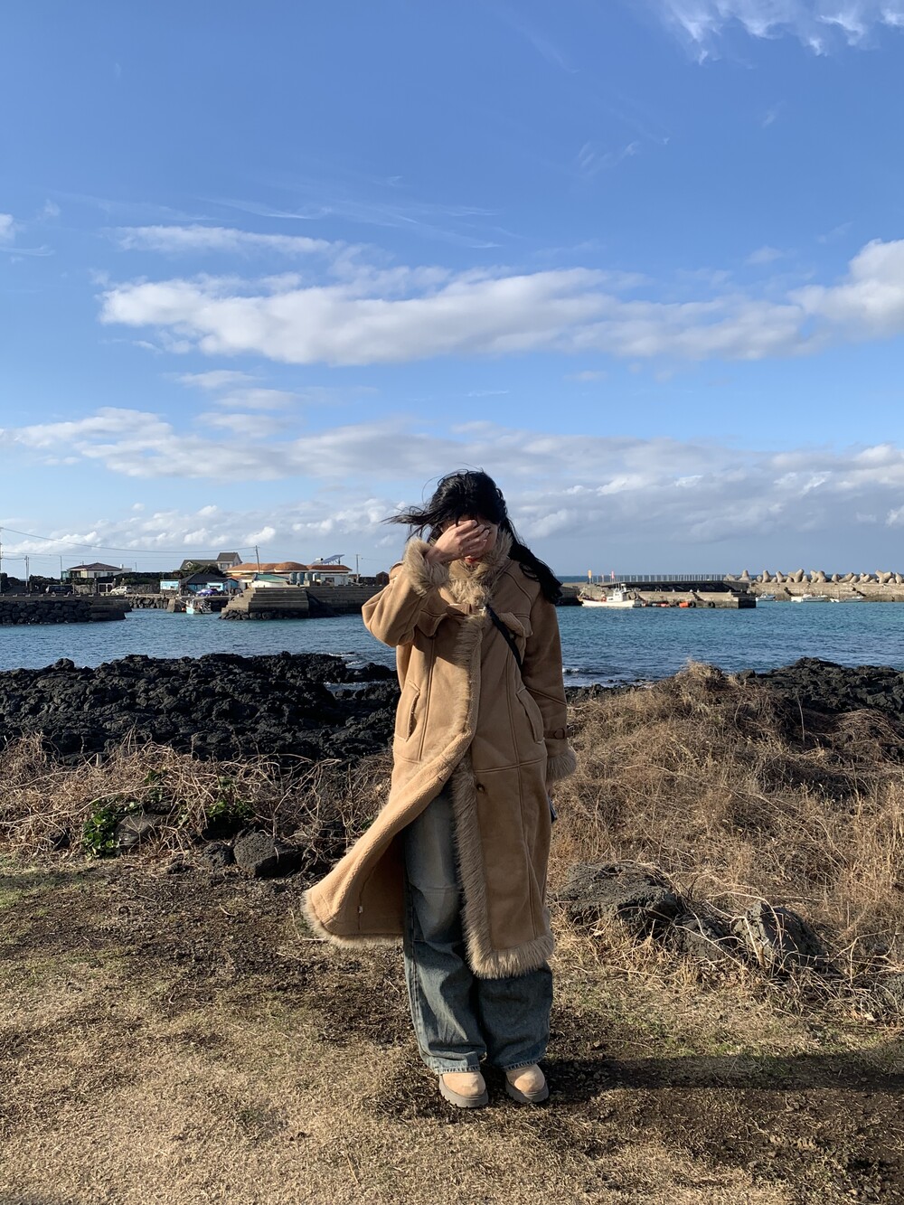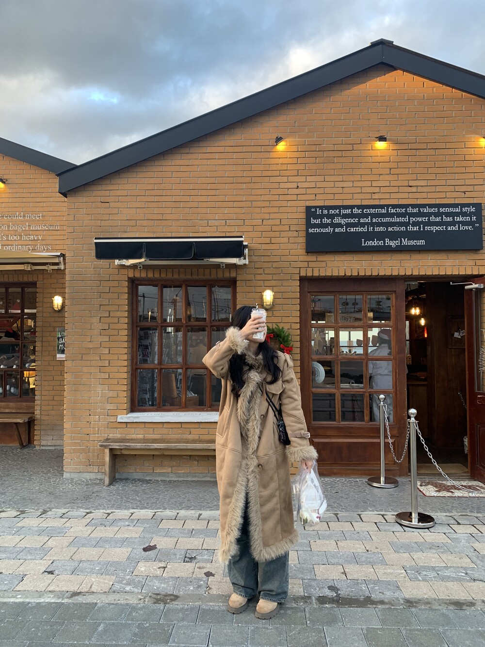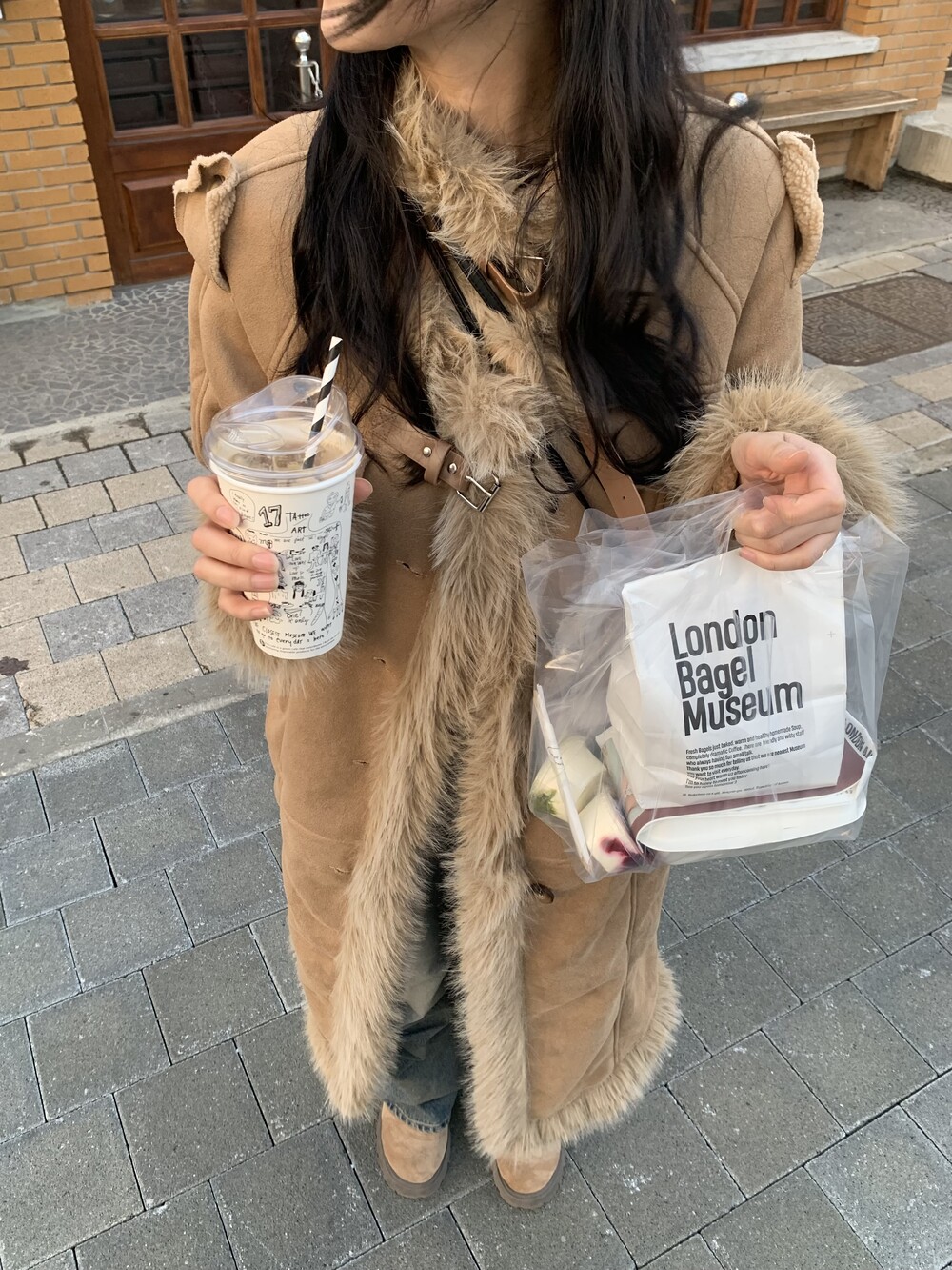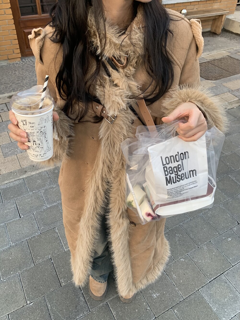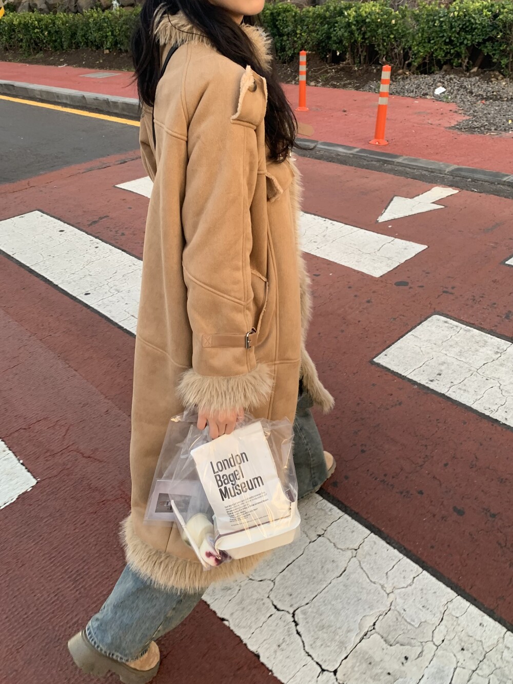 suede fur belt long coat