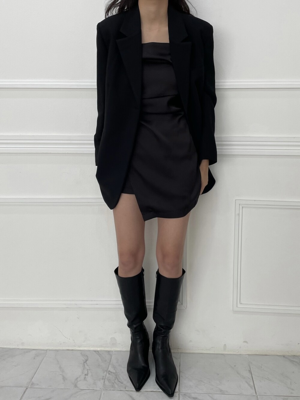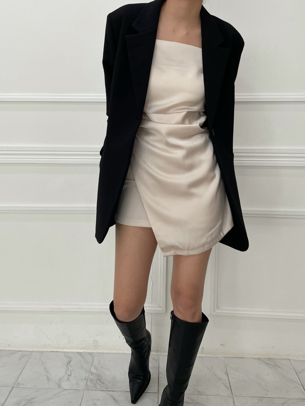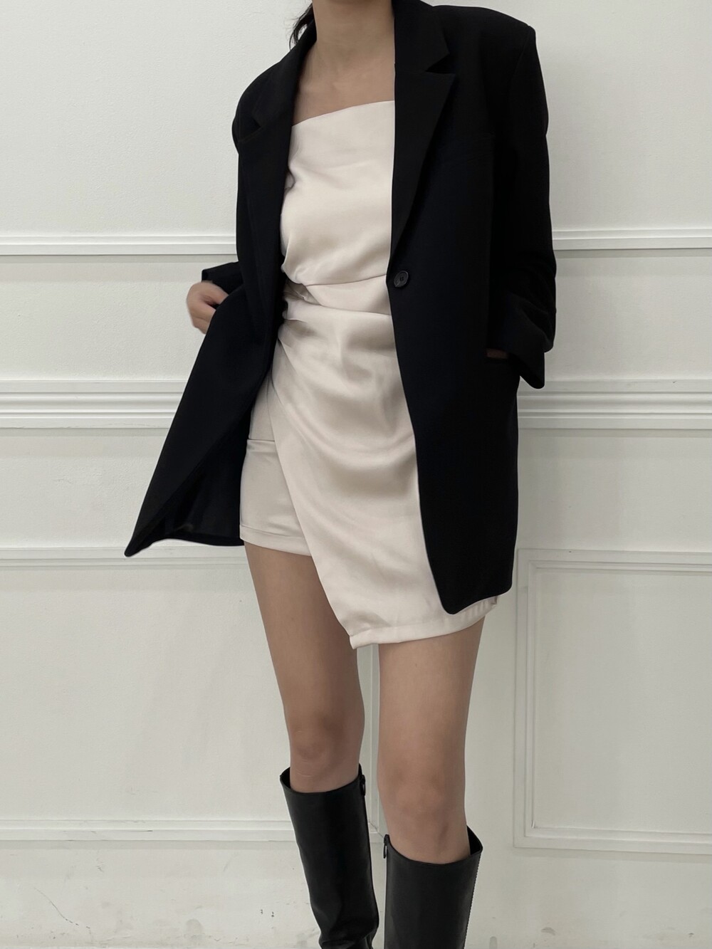 고급스러운 실크 새틴 소재의 셔링 디테일로 디자인적 요소를 더한 원피스입니다.