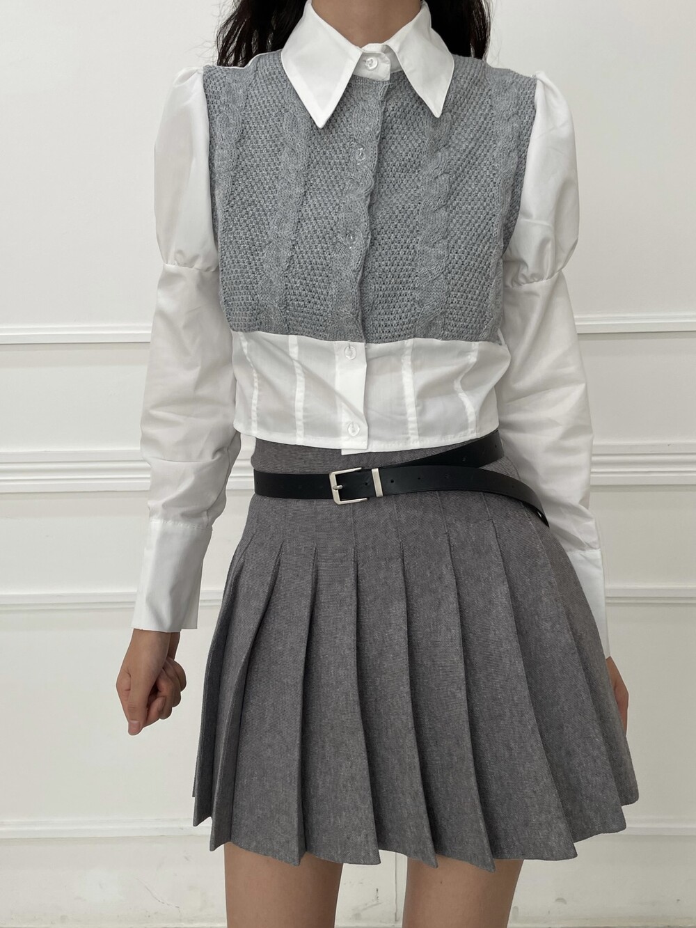 베이직한 셔츠 실루엣에 니트가 함께 디자인된 흔하지 않은 디자인으로 더욱 소장가치 높은 아이템입니다!