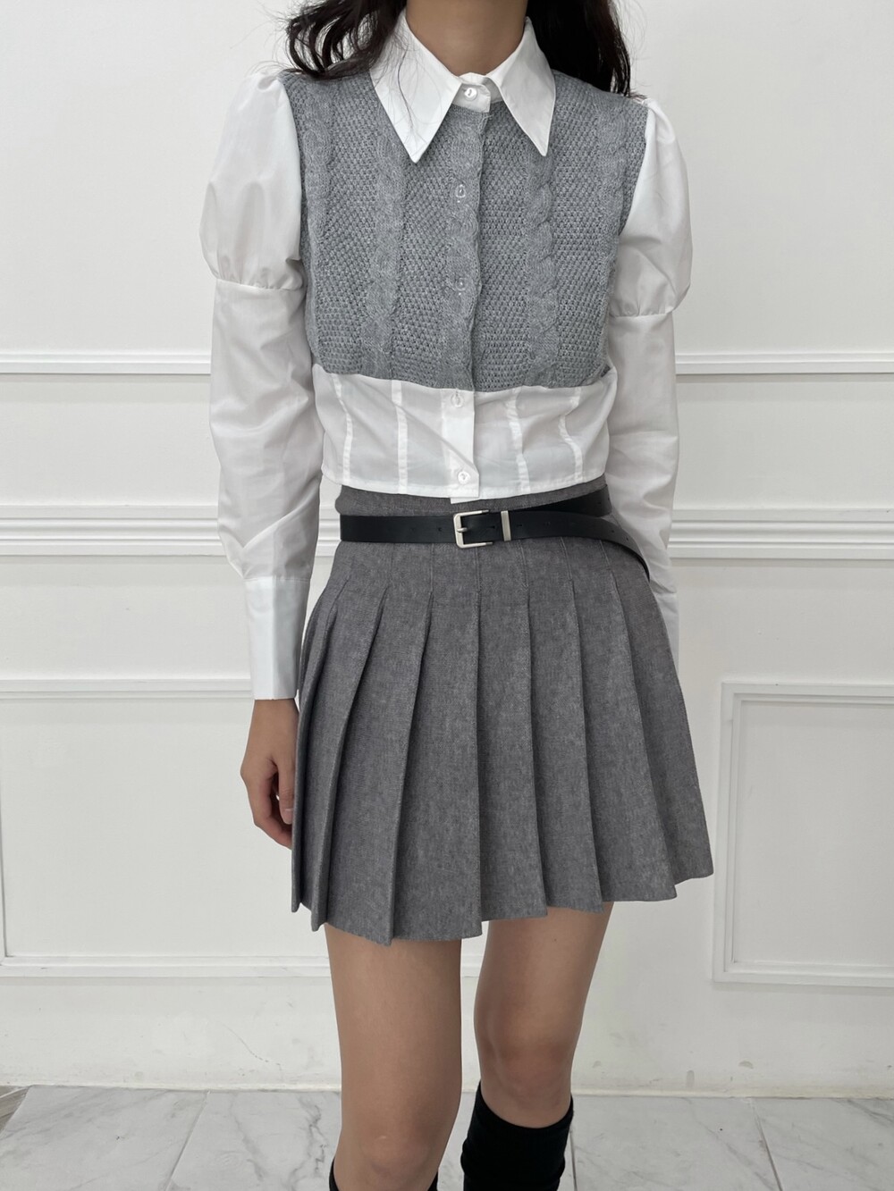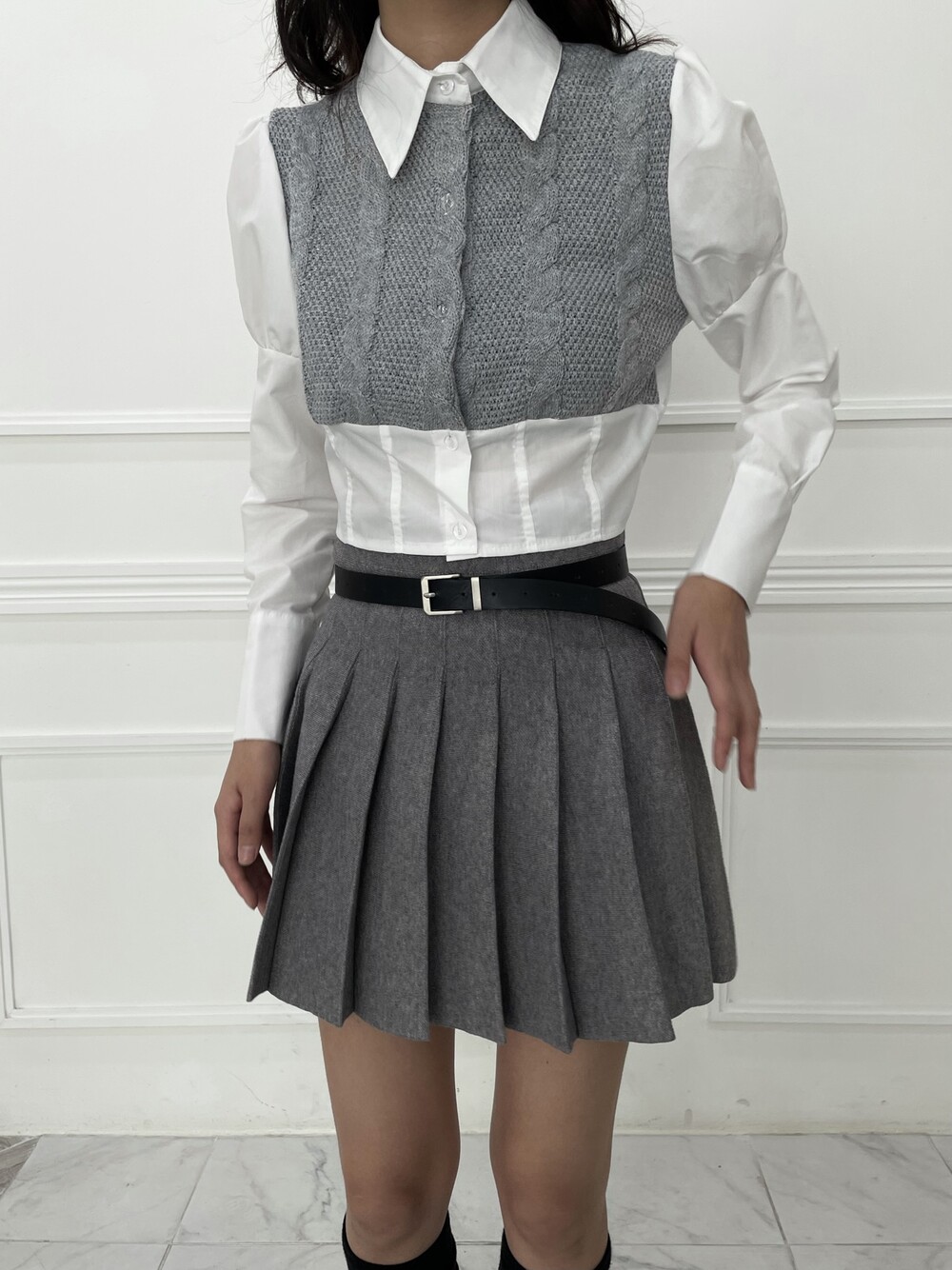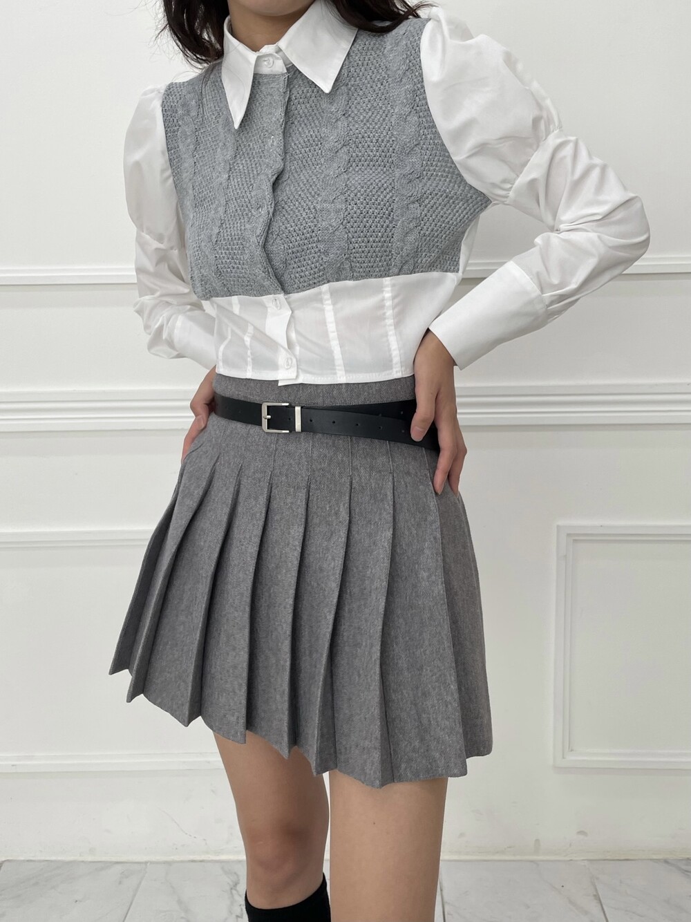 스커트나 슬랙스에 함께 매치하면 더욱 스타일리시한 무드를 보여줄 수 있는 제품입니다.