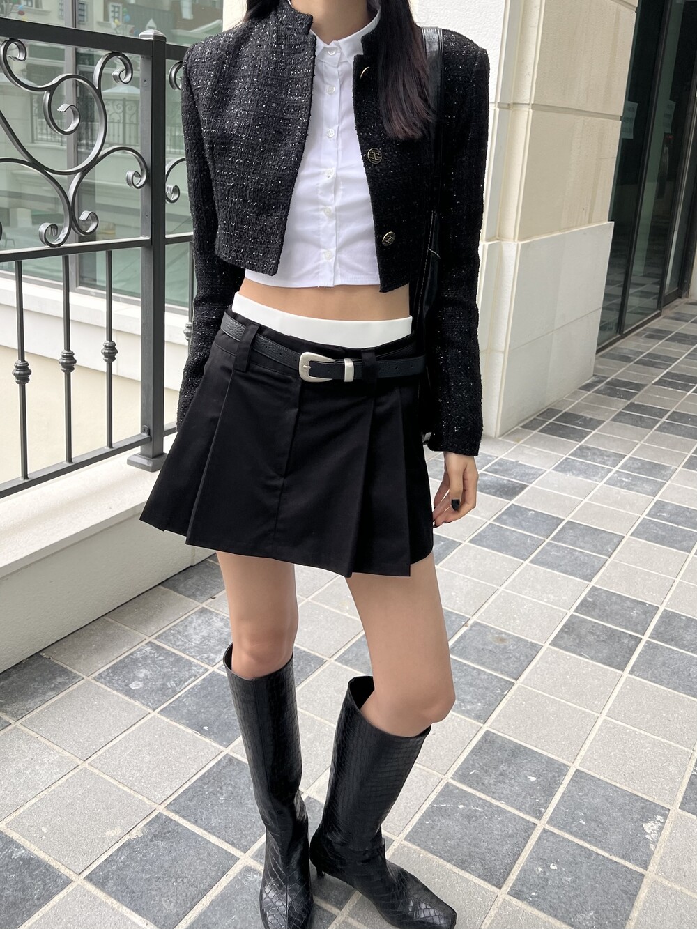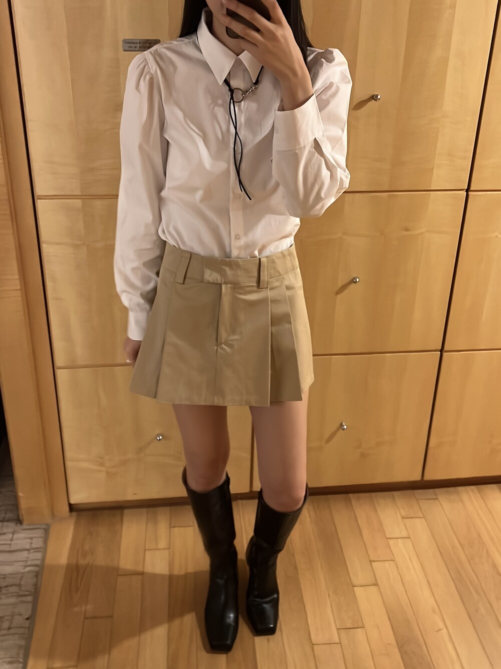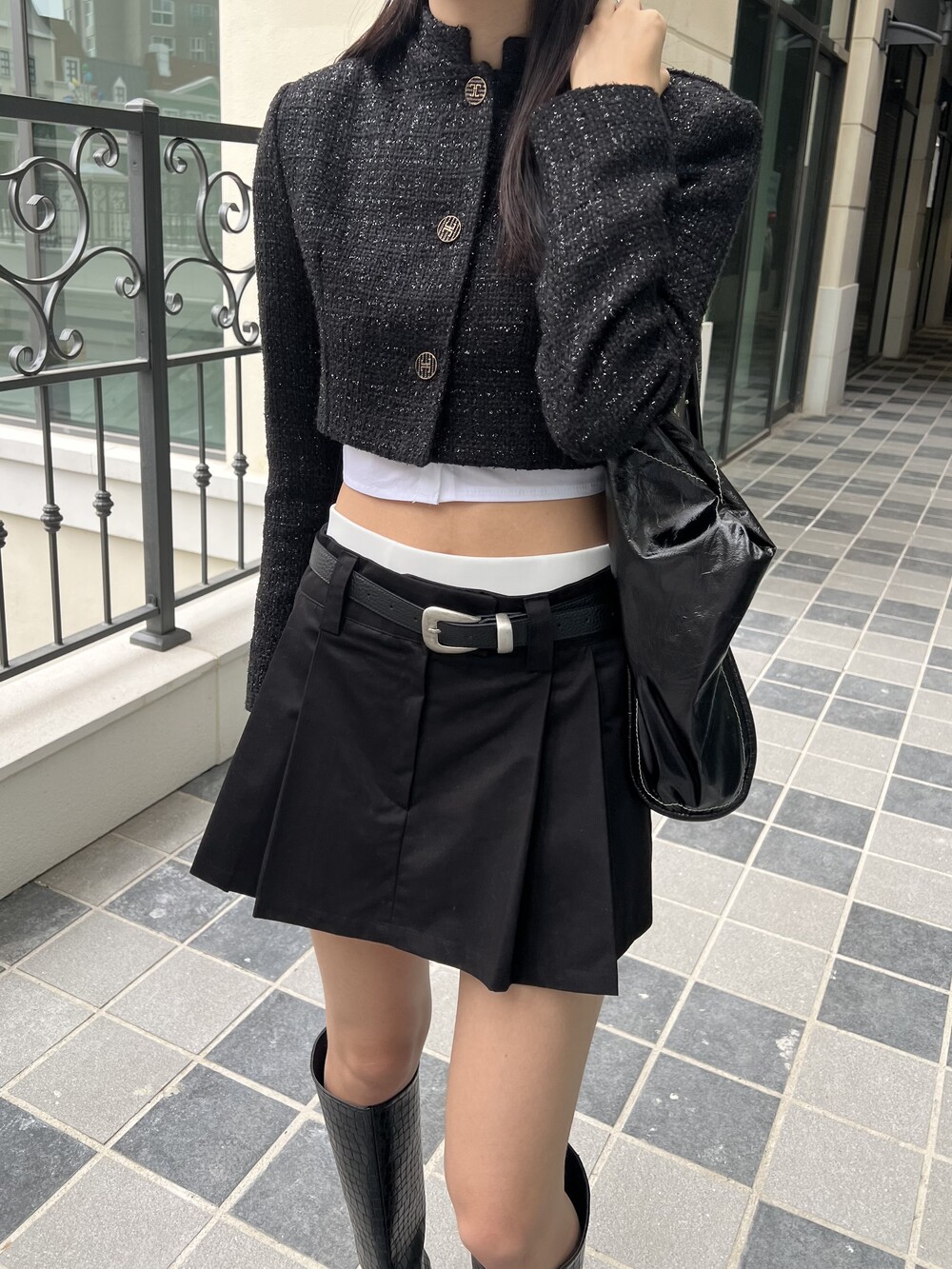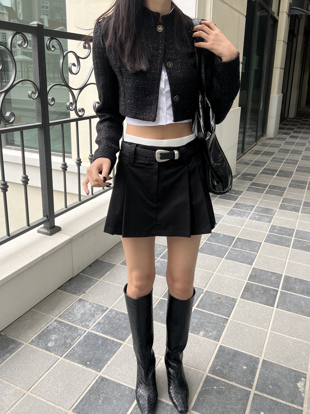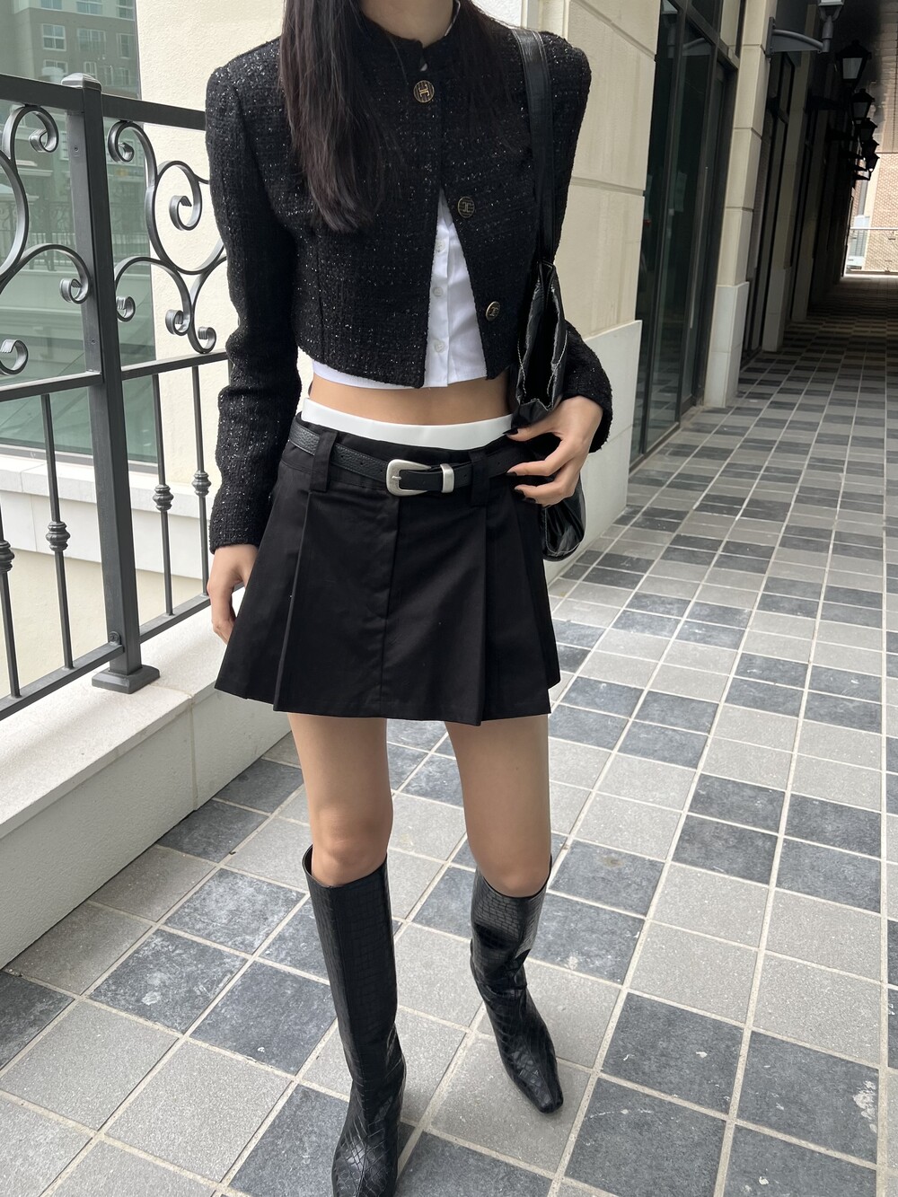 세미 로우 웨이스트의 미니 플리츠 스커트입니다.