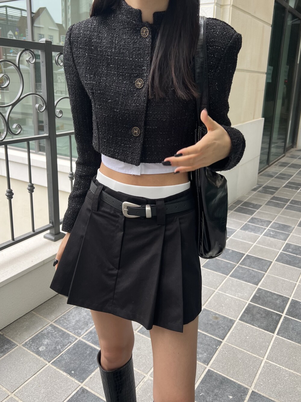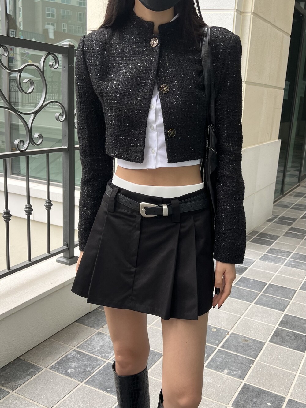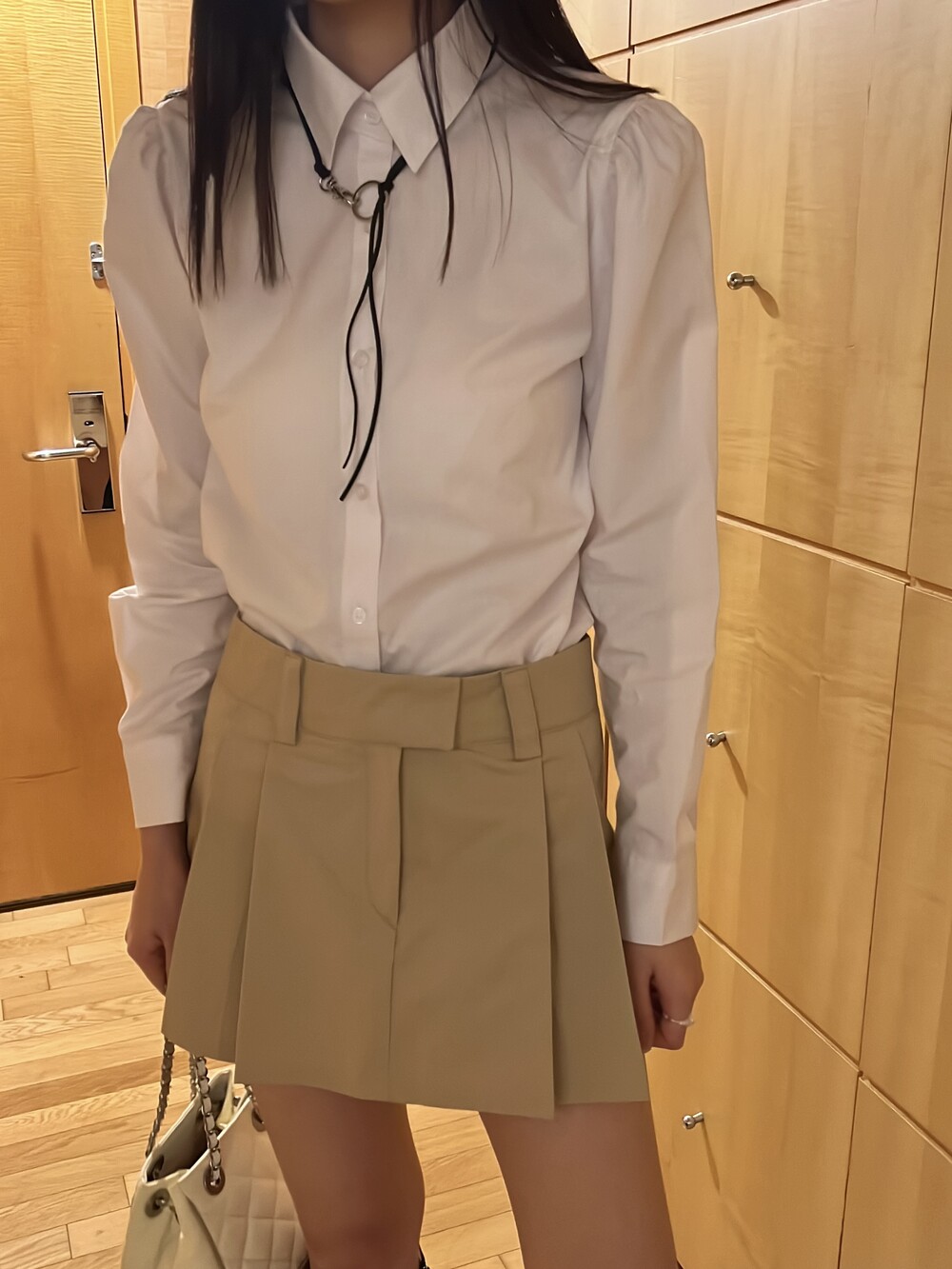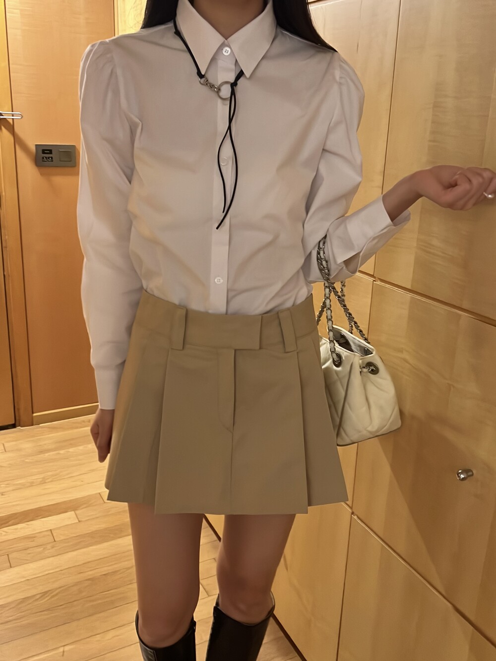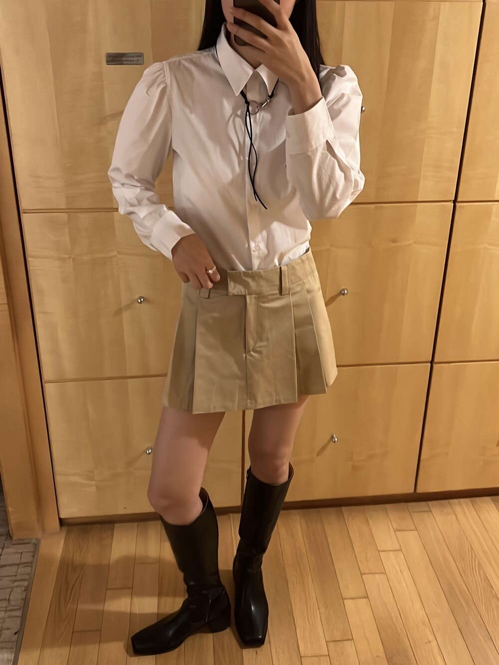 세미 로우 웨이스트의 미니 플리츠 스커트입니다.