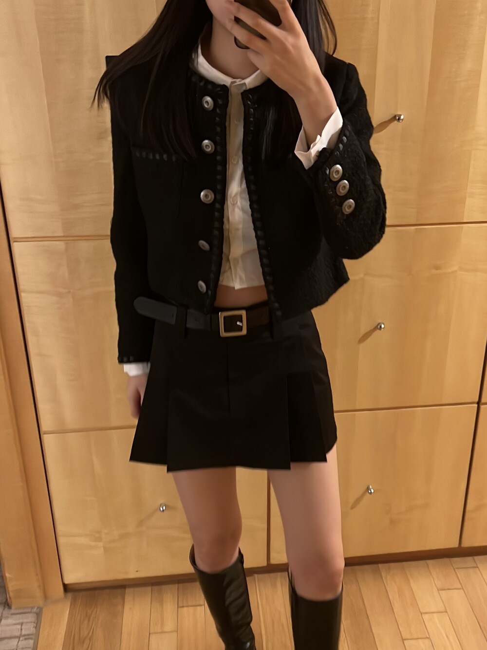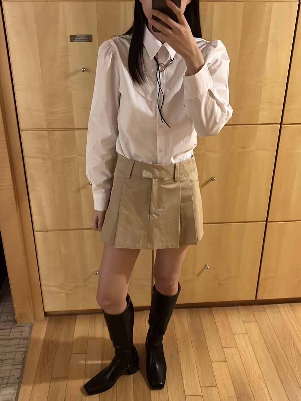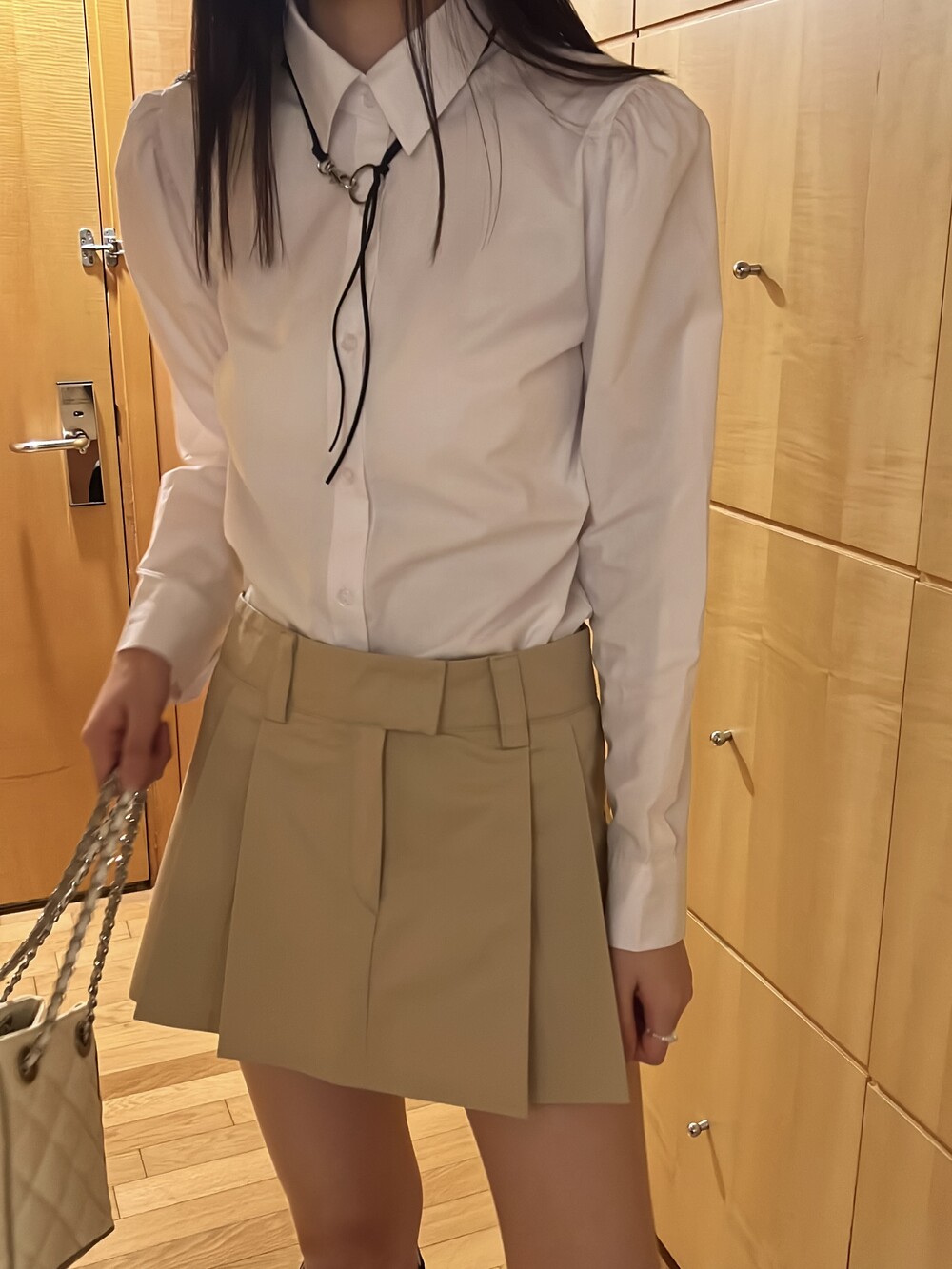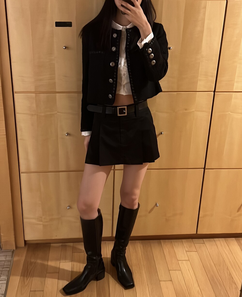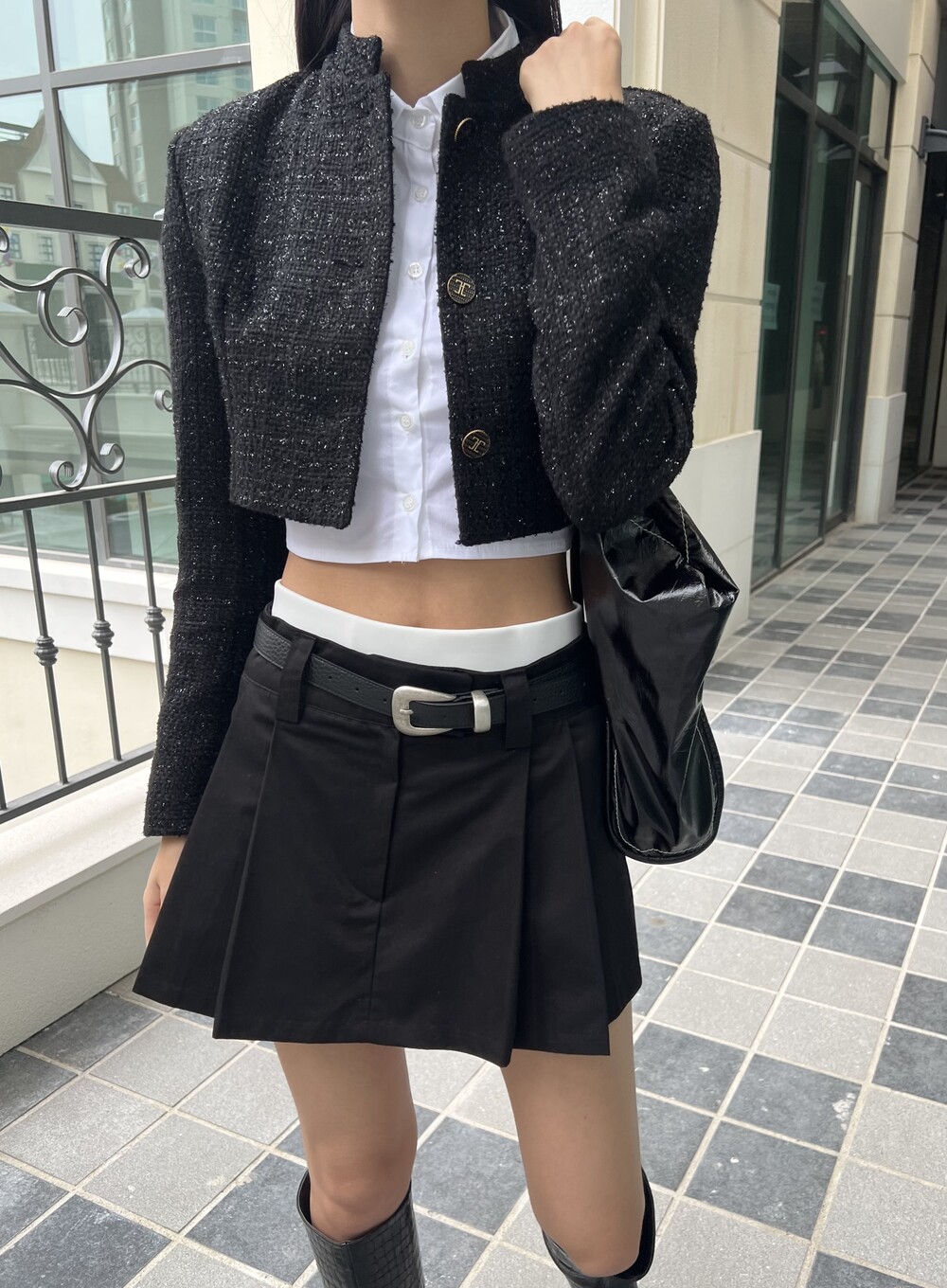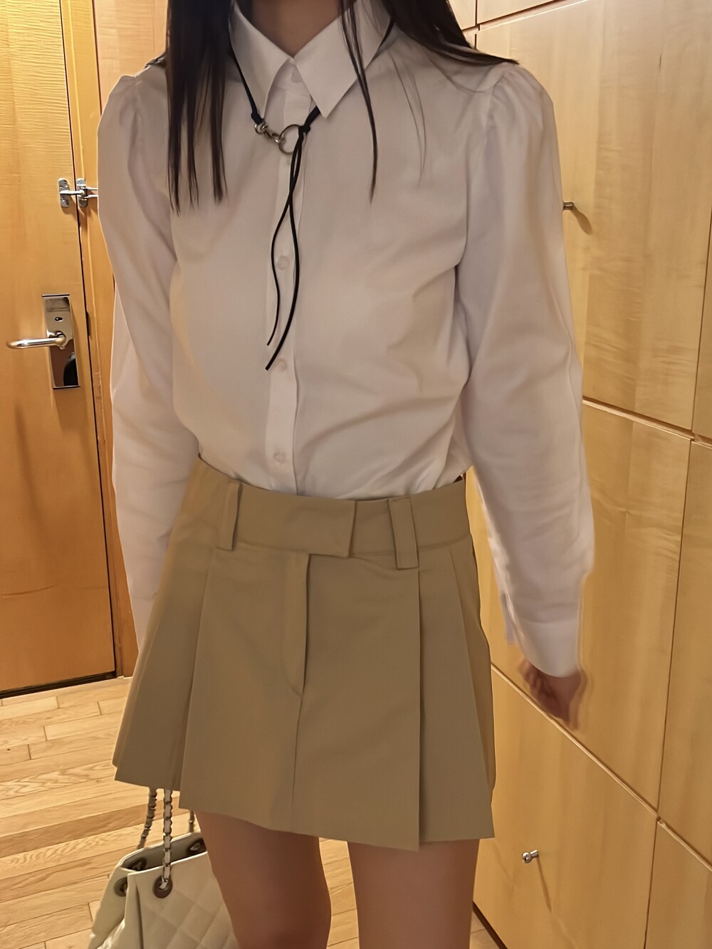 세미 로우 웨이스트의 미니 플리츠 스커트입니다.