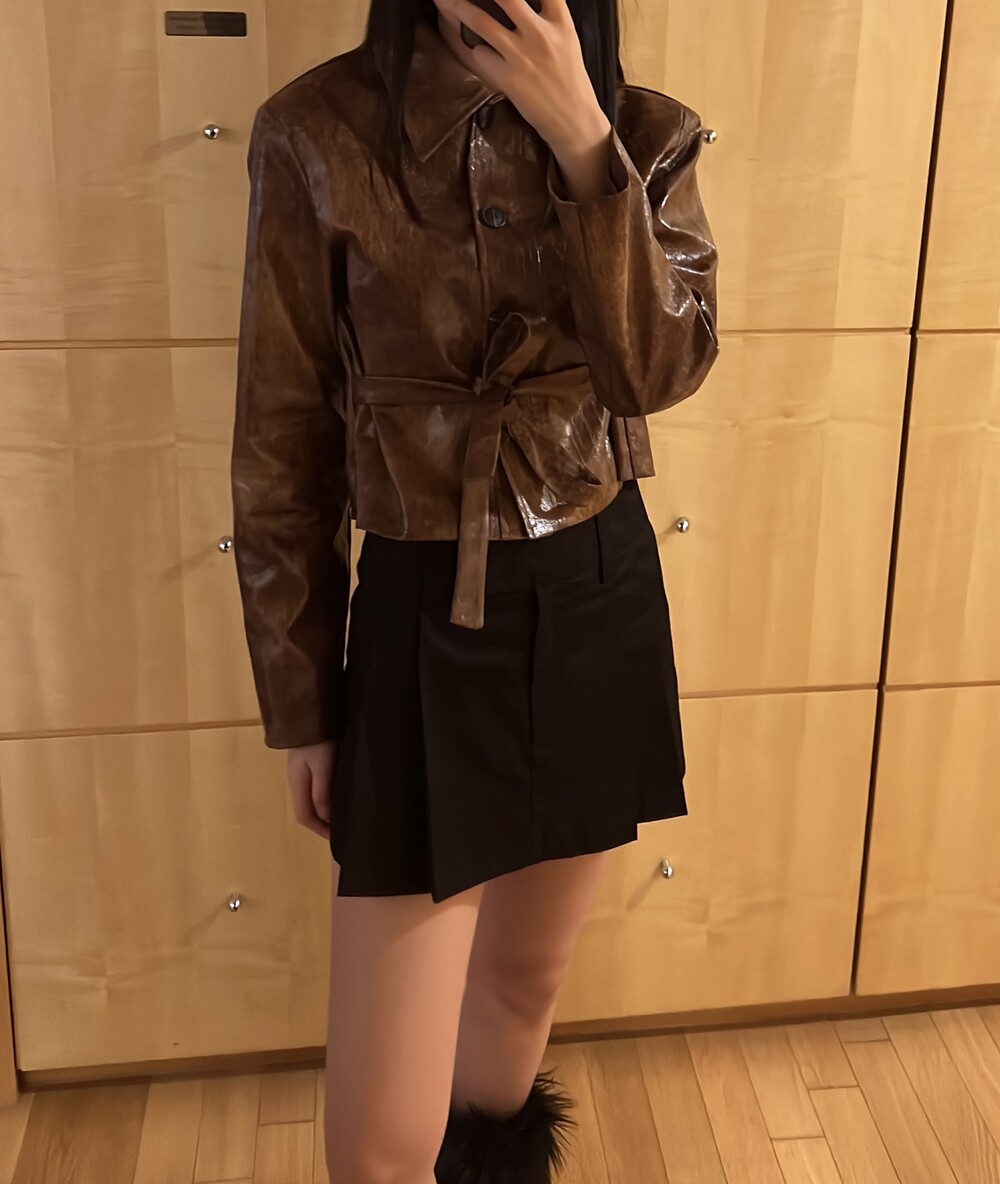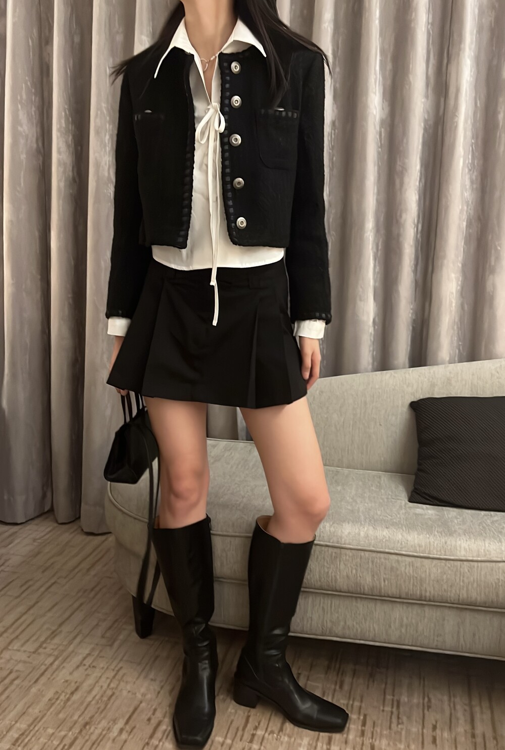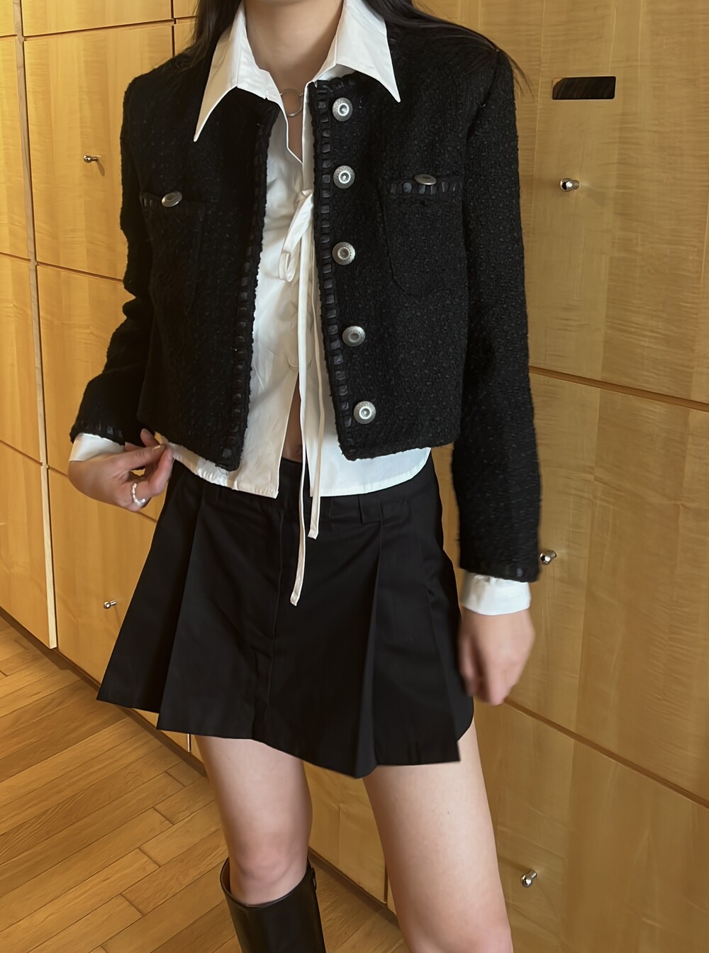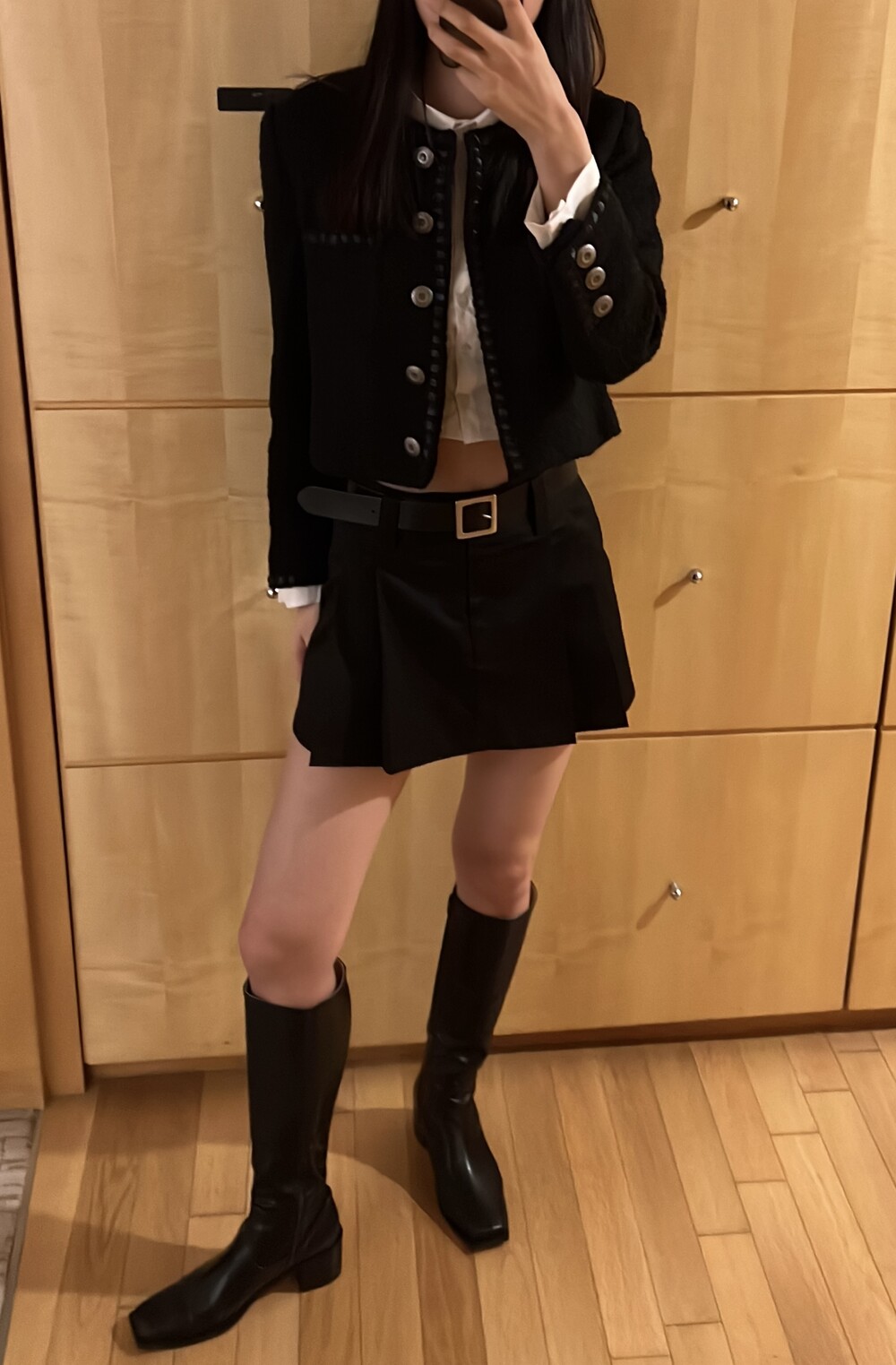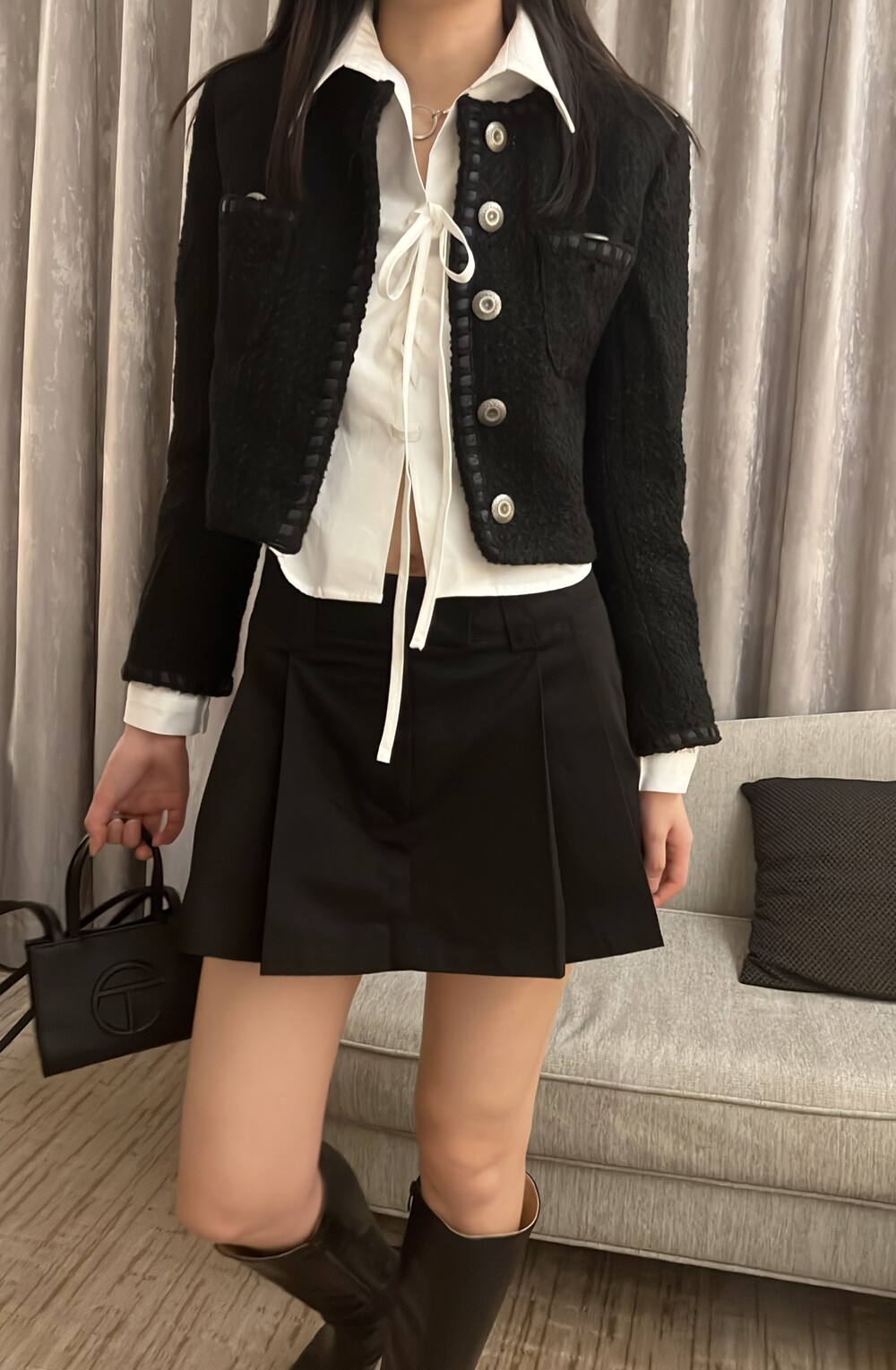 세미 로우 웨이스트의 미니 플리츠 스커트입니다.