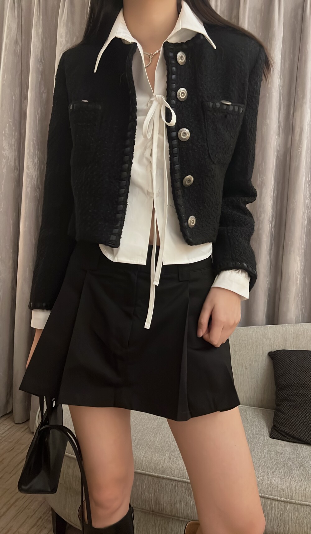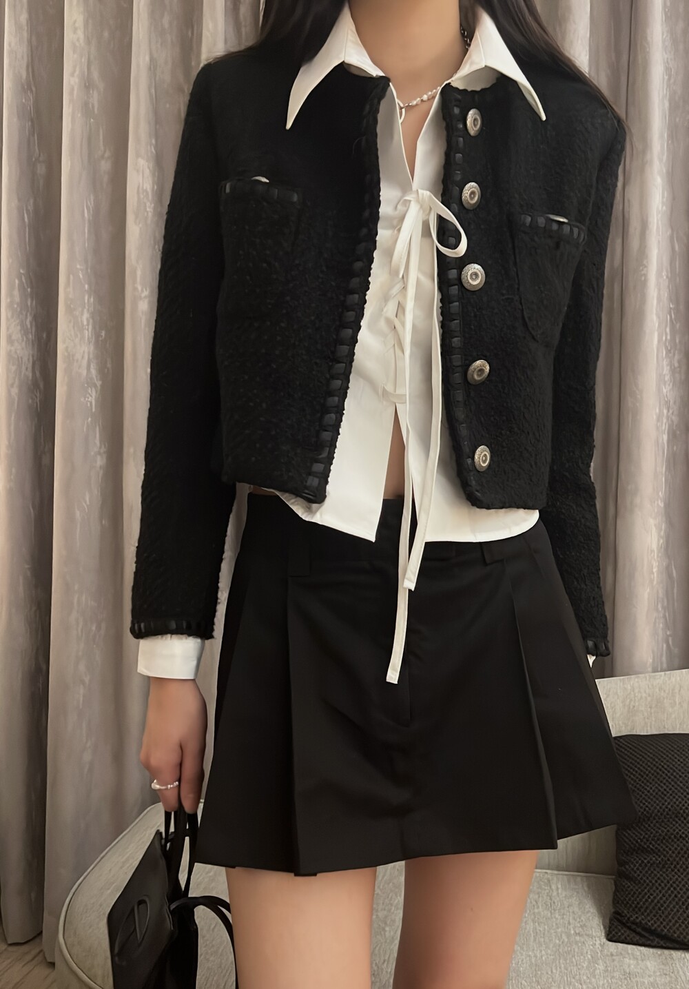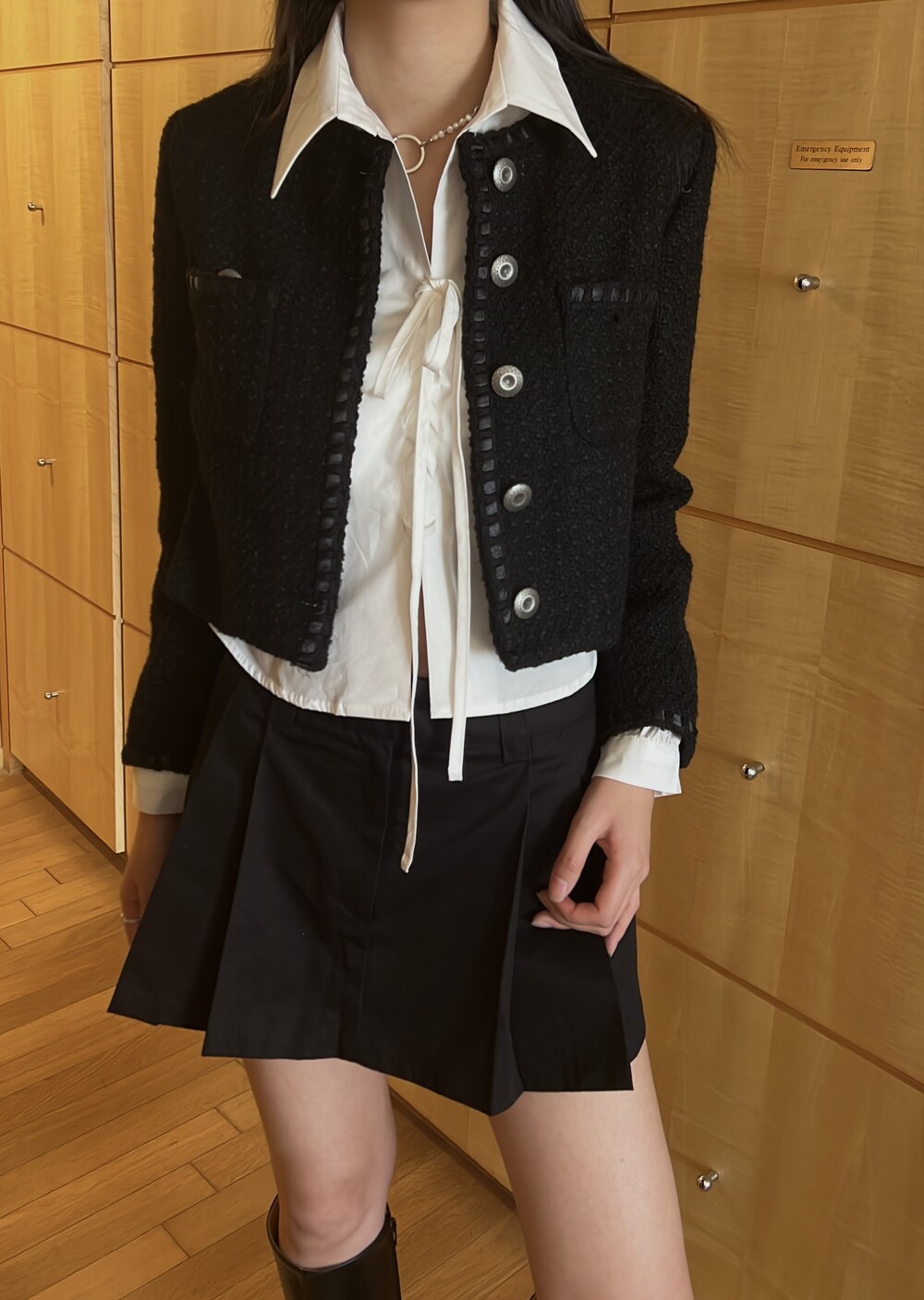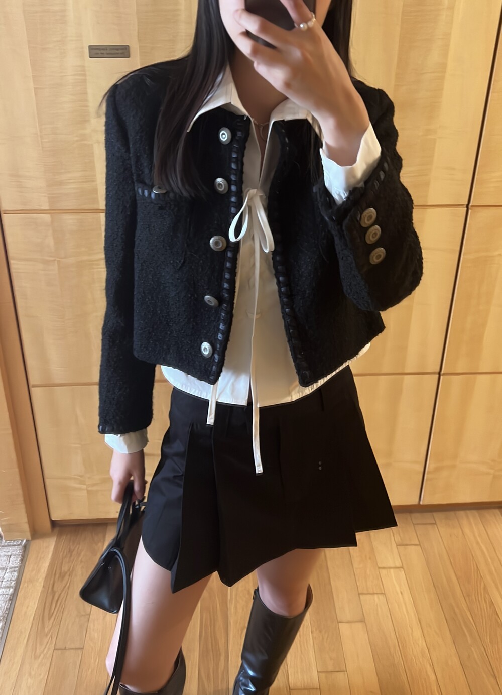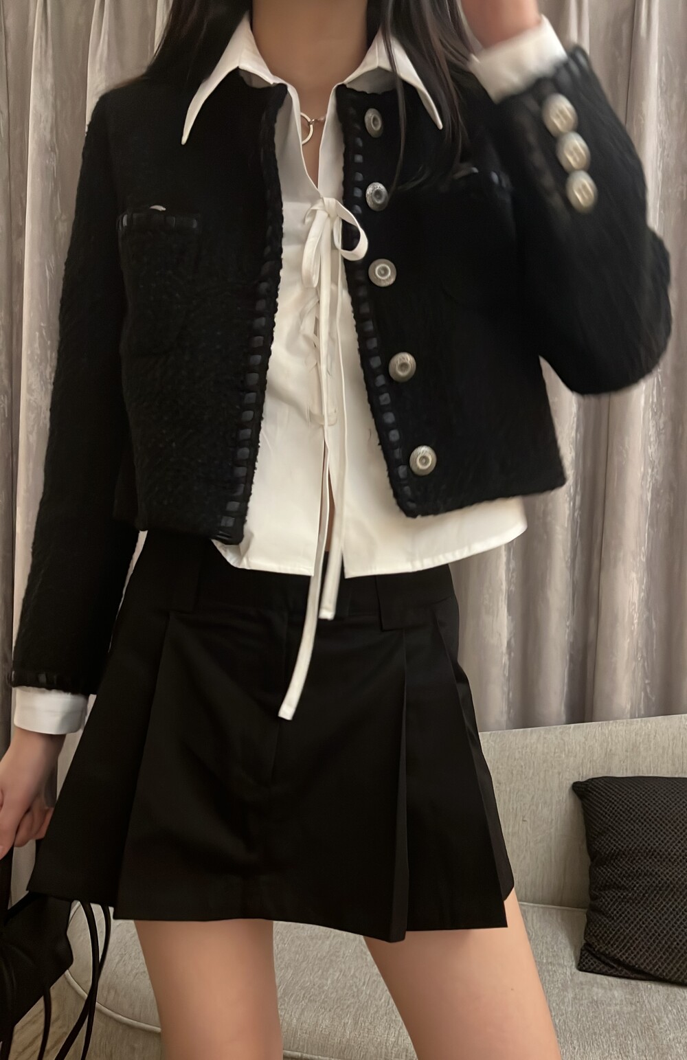 세미 로우 웨이스트의 미니 플리츠 스커트입니다.