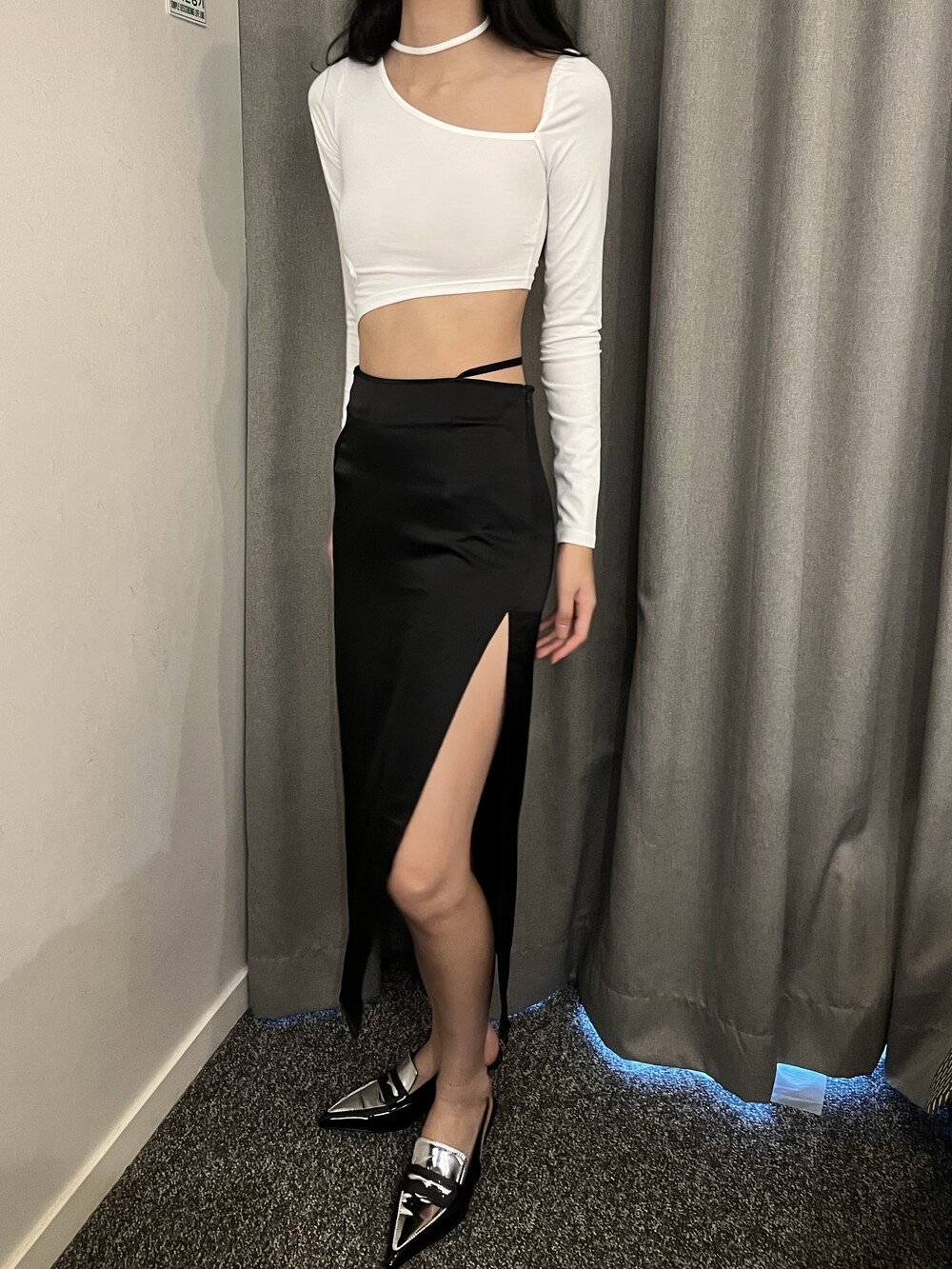 S 허리 34 | 힙 44.5 | 밑단 47 | 총기장 91 | 트임 60