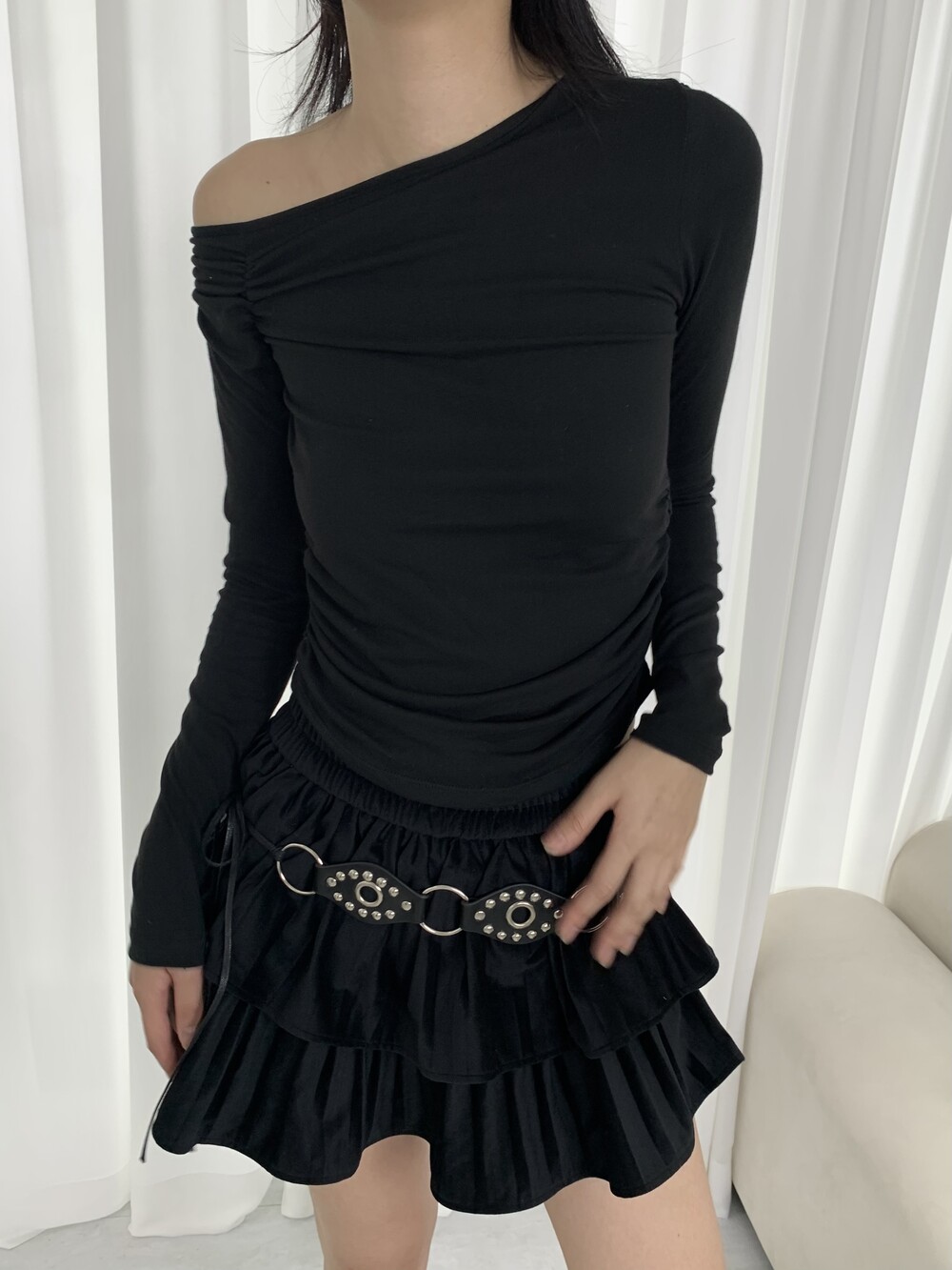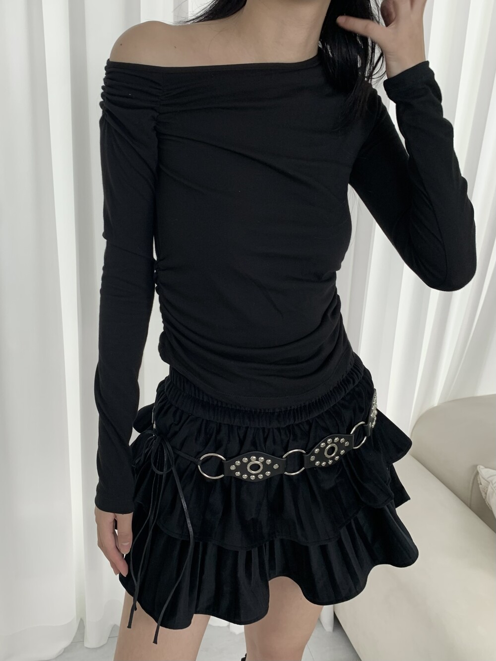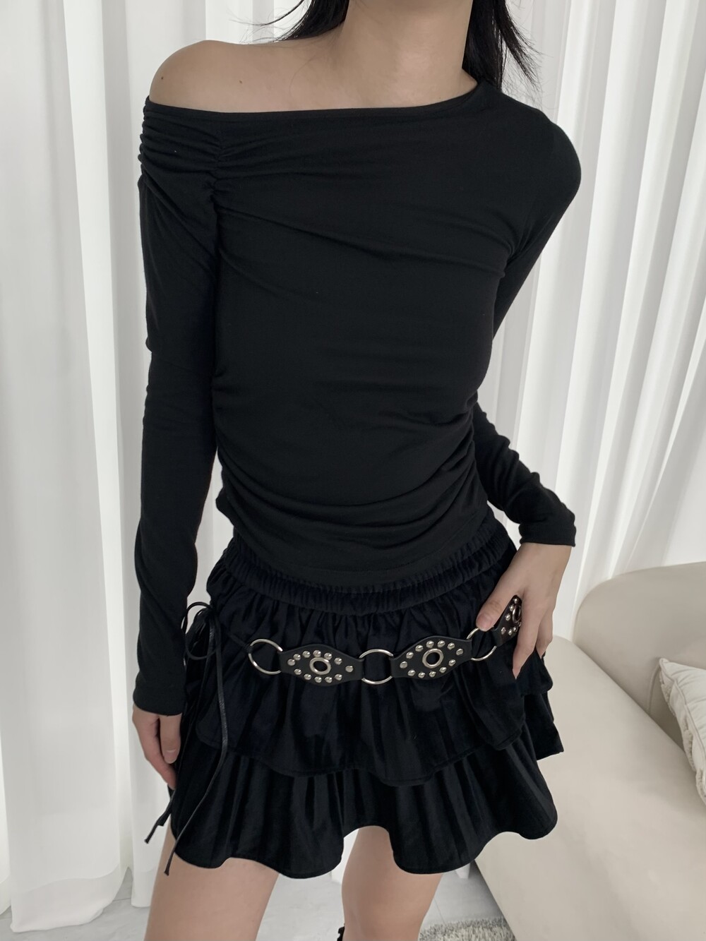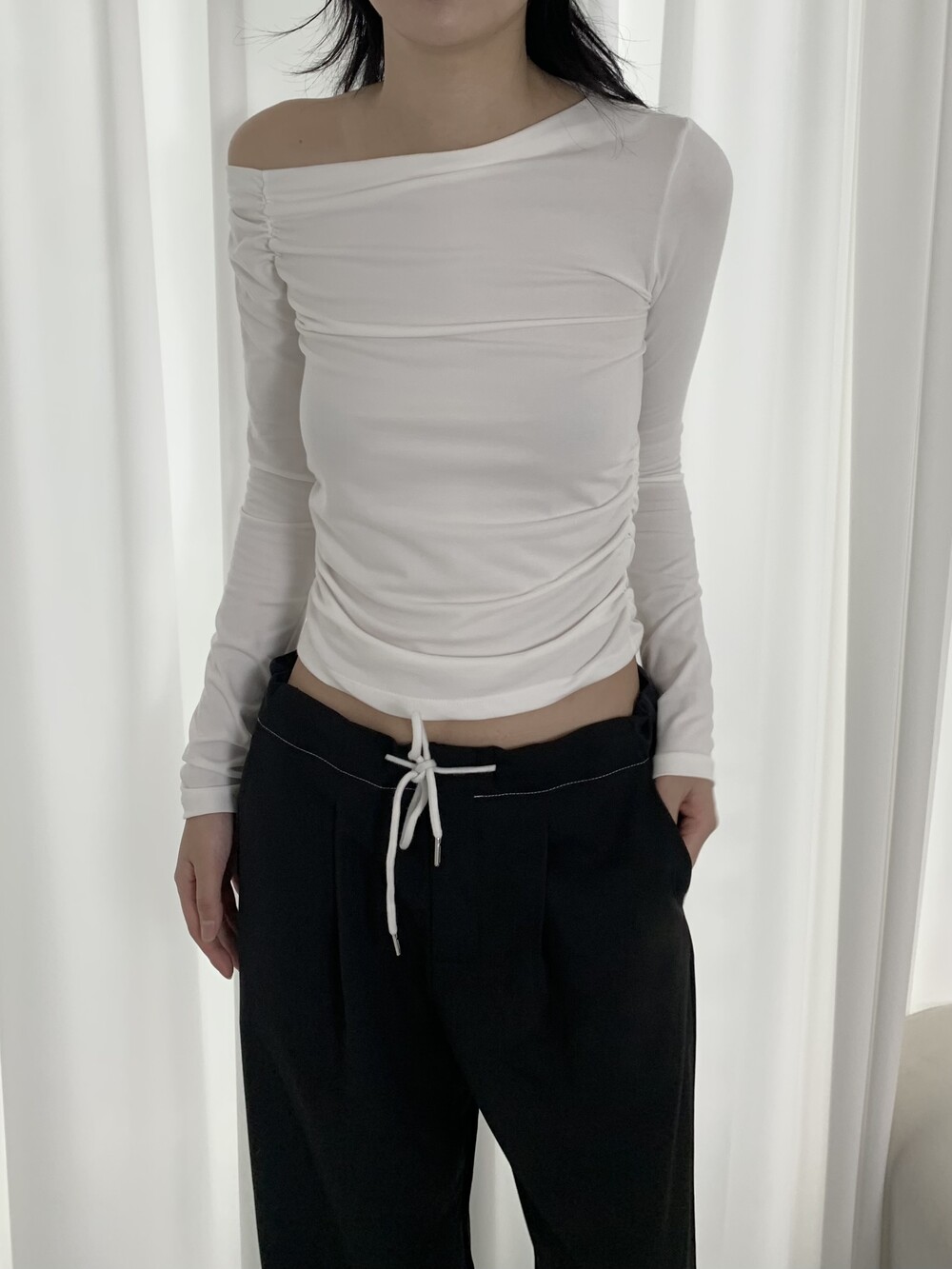 UNBAL SHIRRING T(2 COLOR) 언발 셔링티