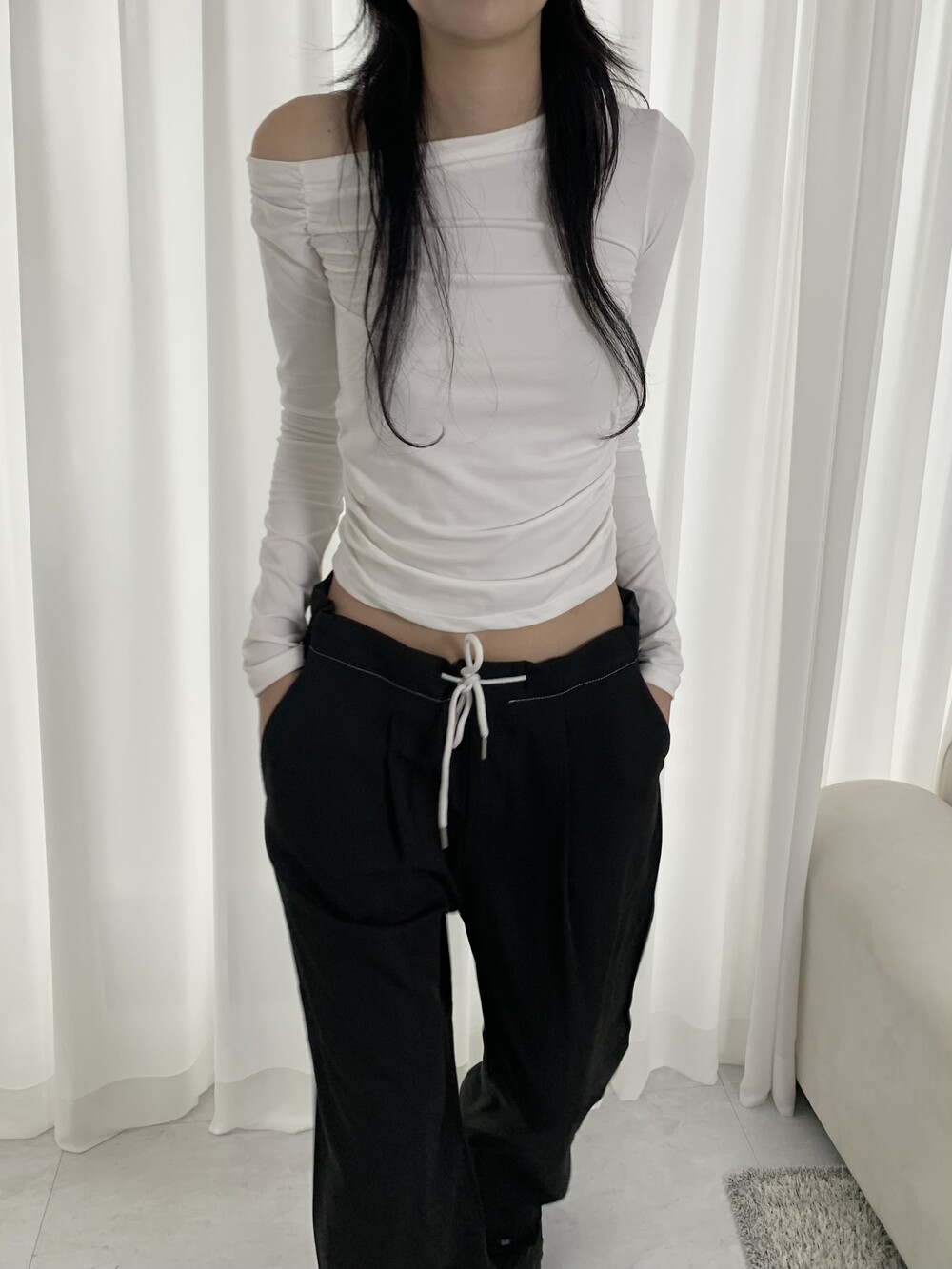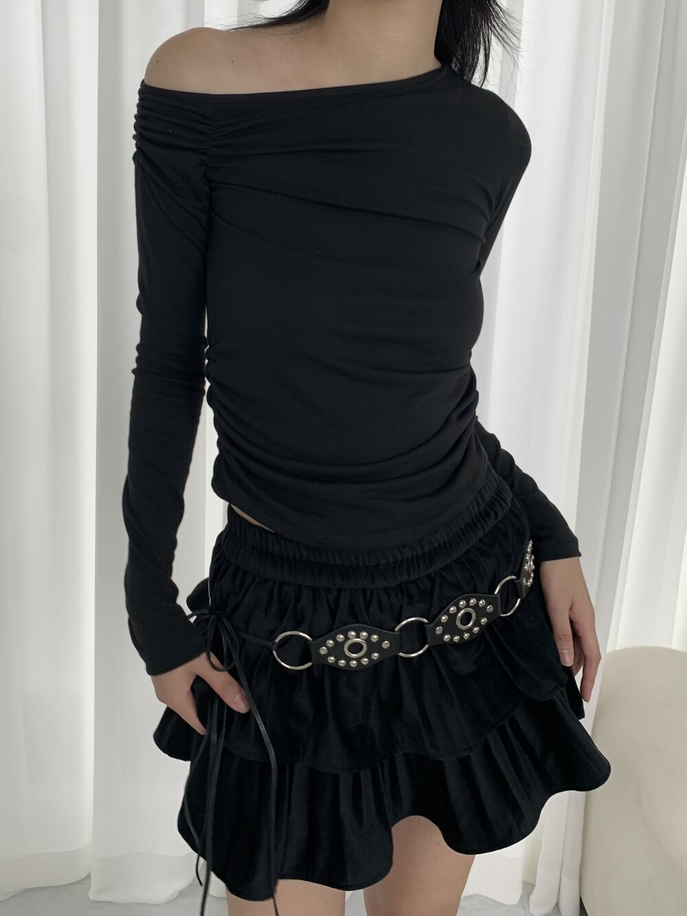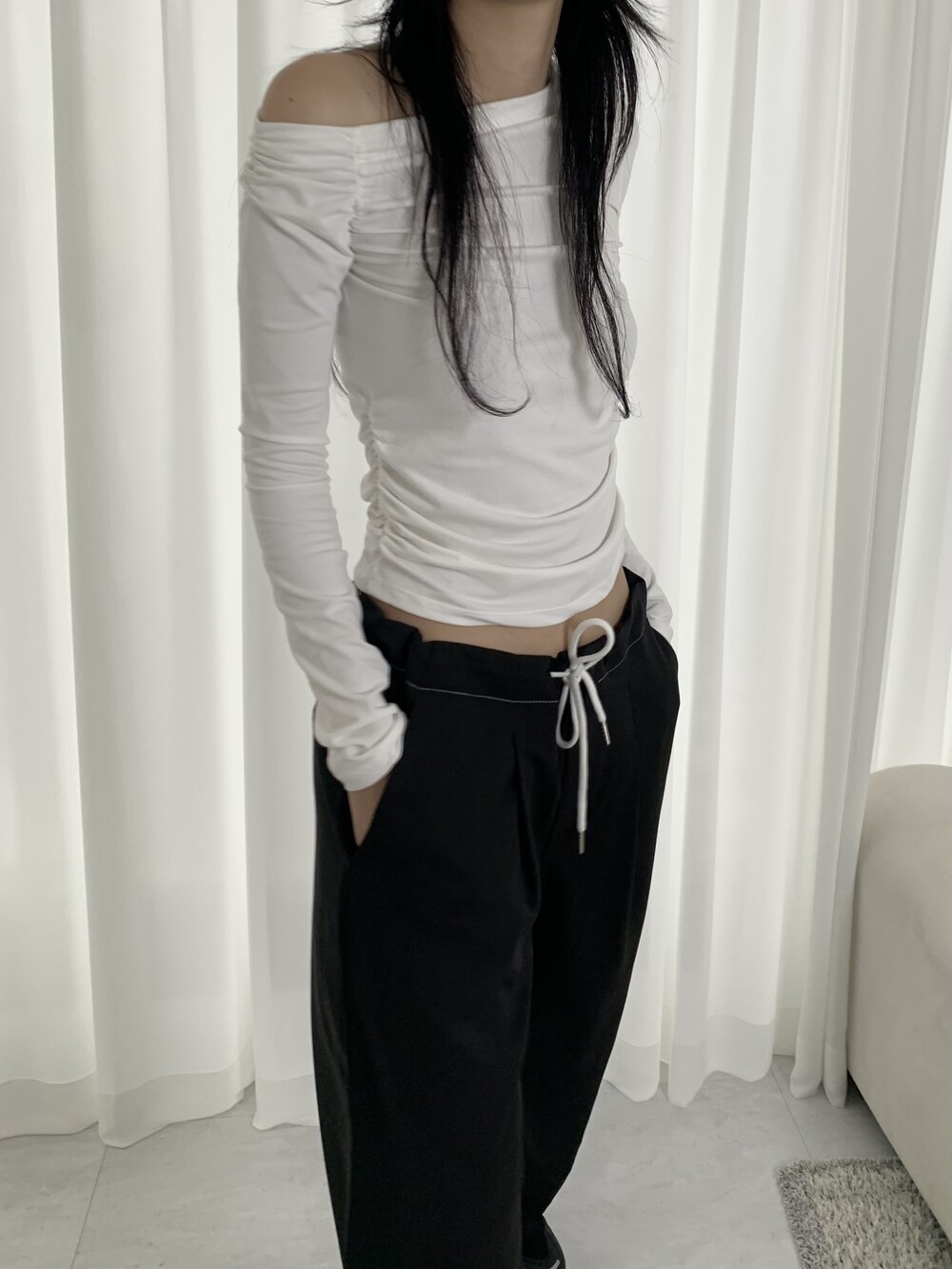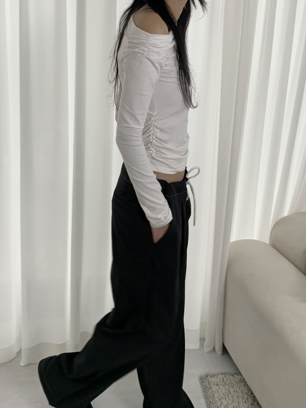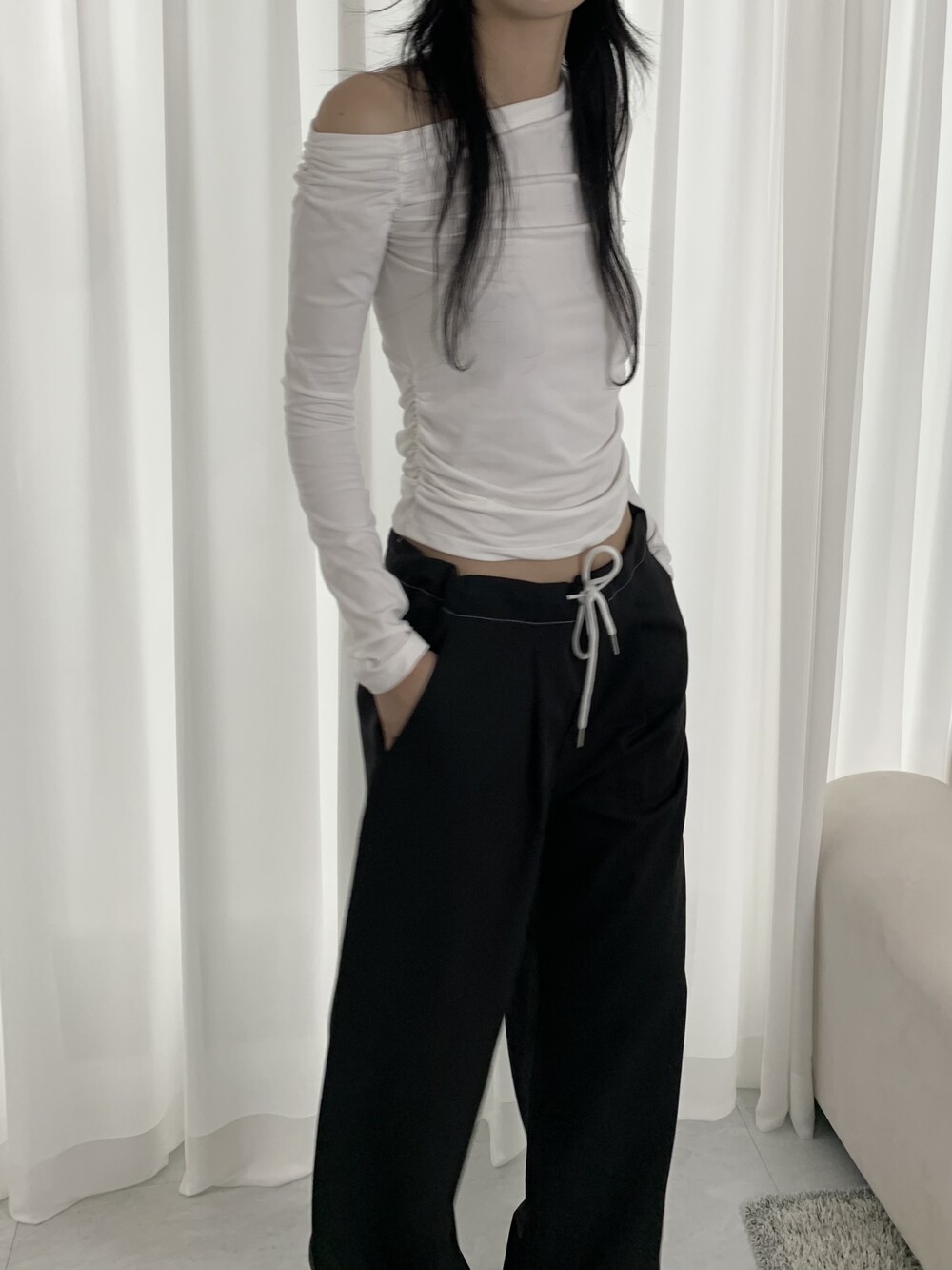 UNBAL SHIRRING T(2 COLOR) 언발 셔링티