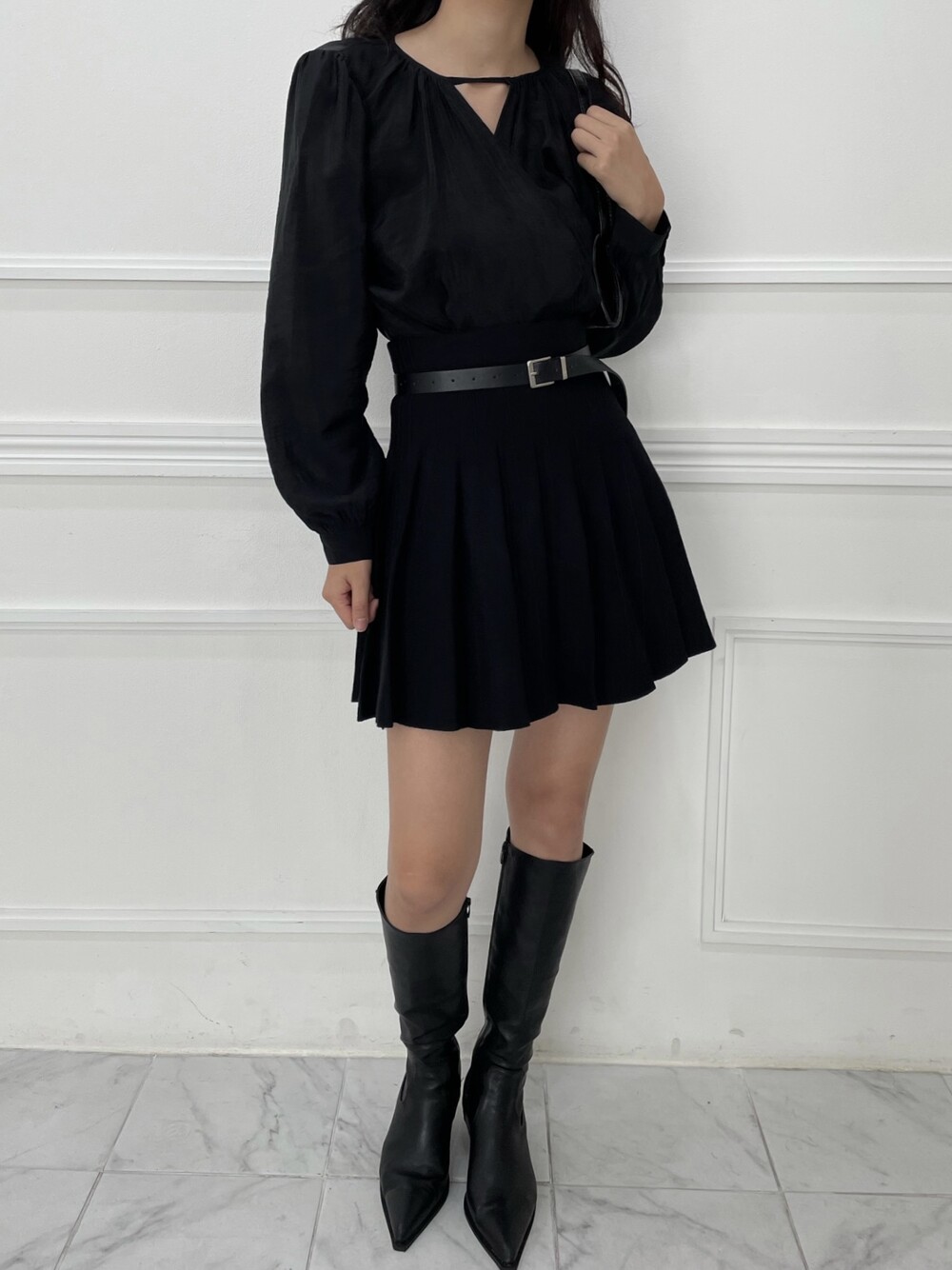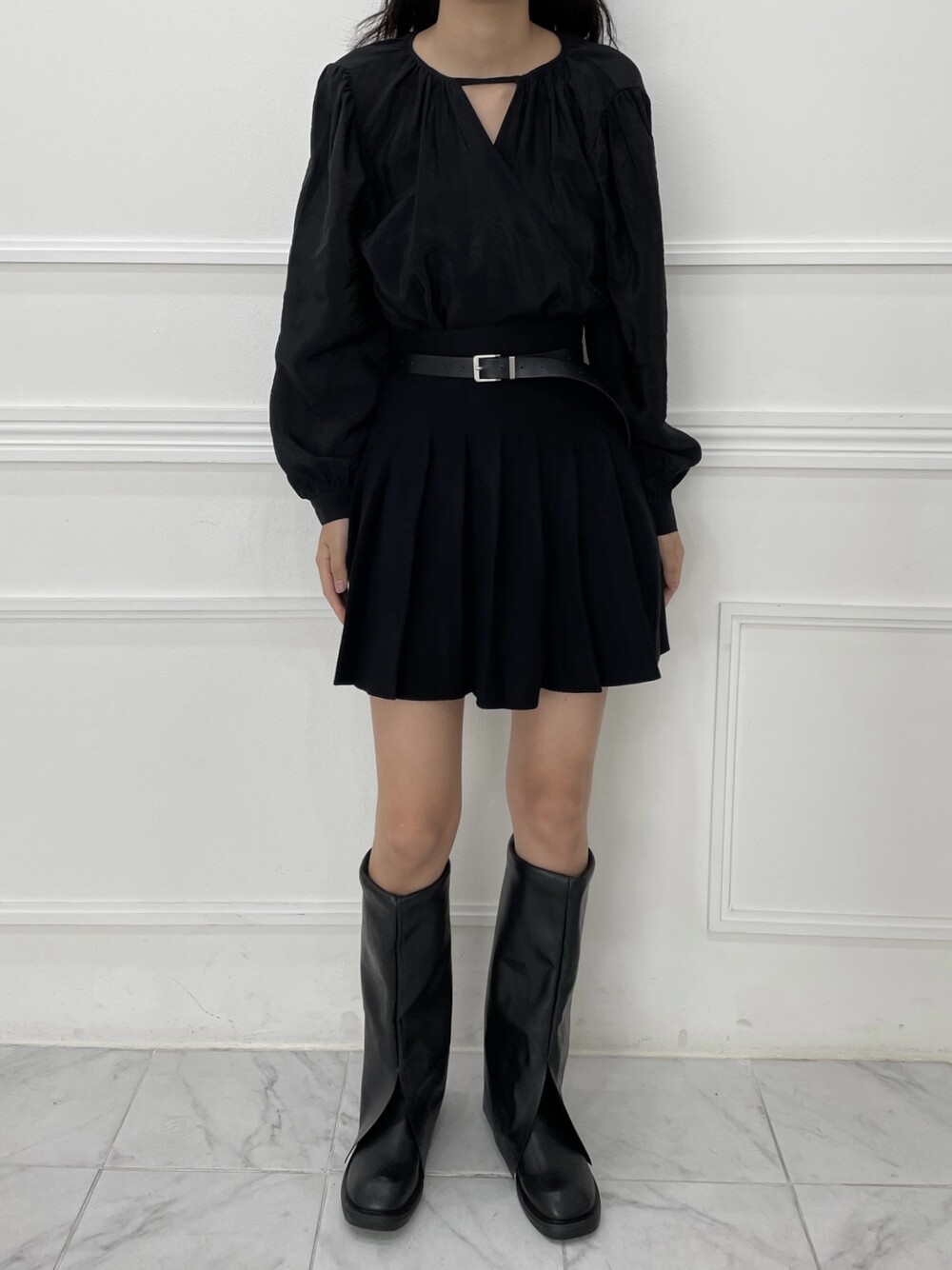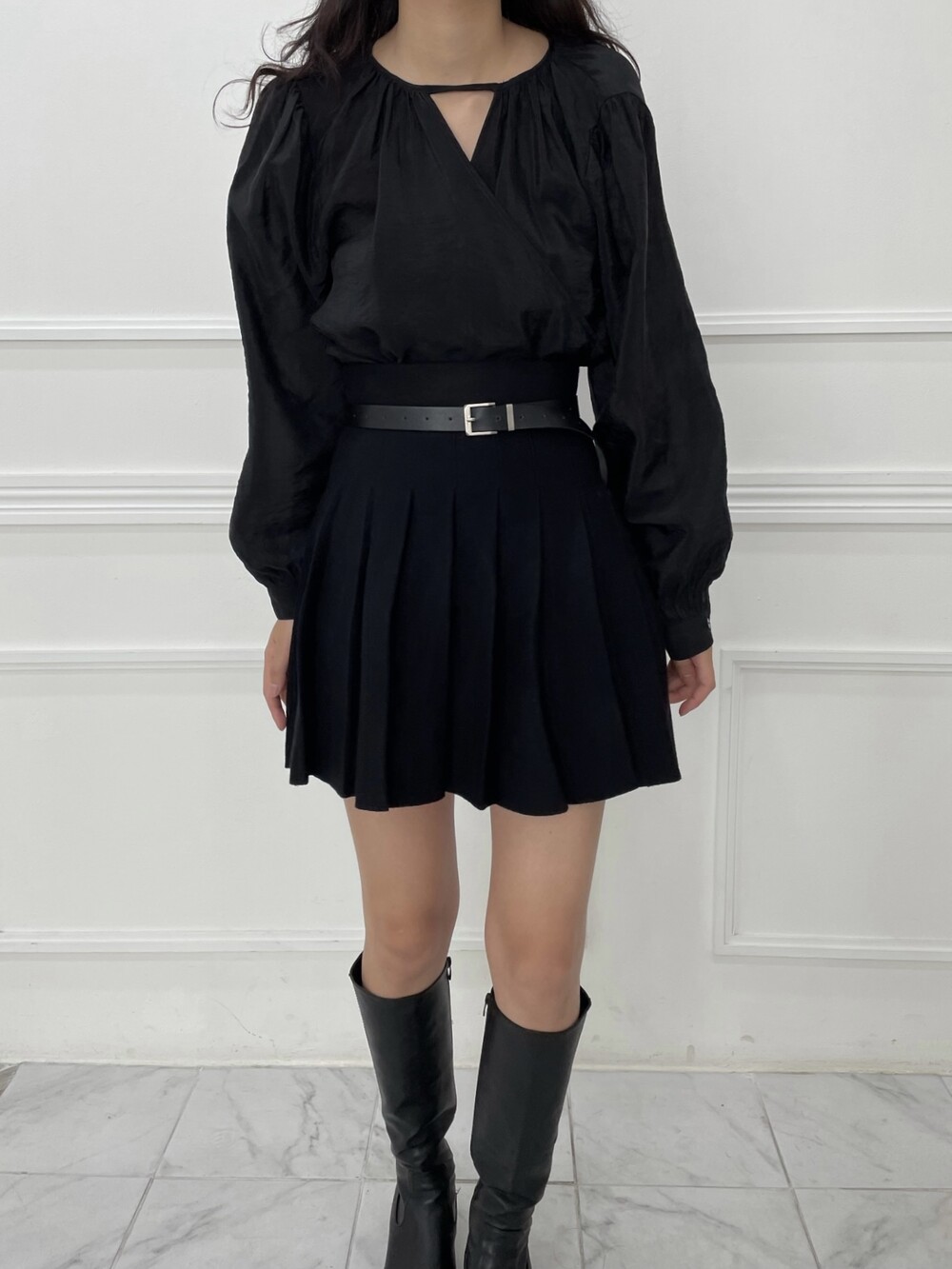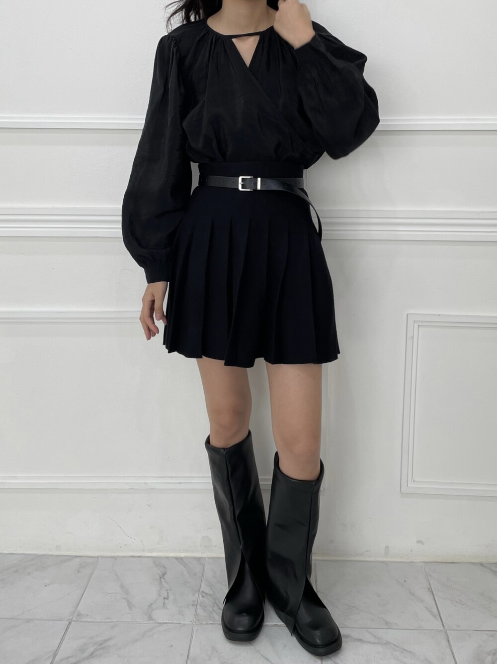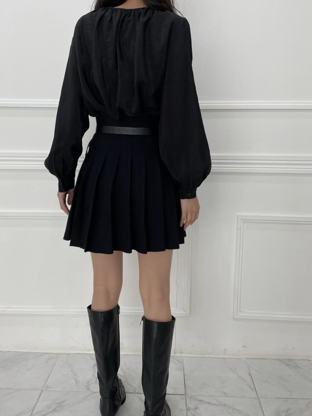 은은한 광택이 도는 새틴 원단에 네크라인 셔링 부터 소매 퍼프까지 , 소재며 디테일이며 퀄리티가 매우 좋은 아이템입니다. 선선한 바람이 부는 요즘 가을 날에 데이트룩으로 입으셔도 딱 좋은 블라우스입니다.