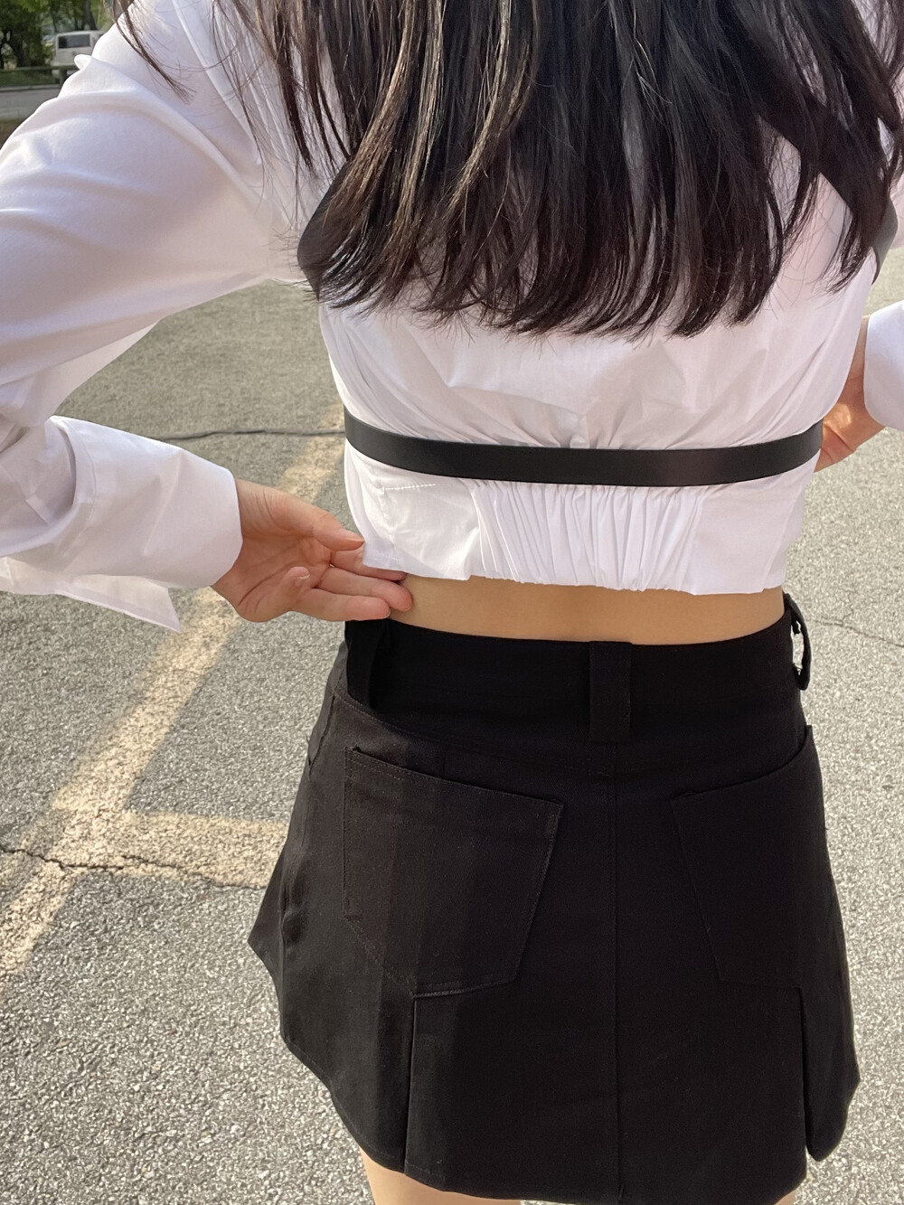크롭 기장으로 허리가 더욱 얇아보이고 날씬해 보이는 크롭 셔츠입니다.